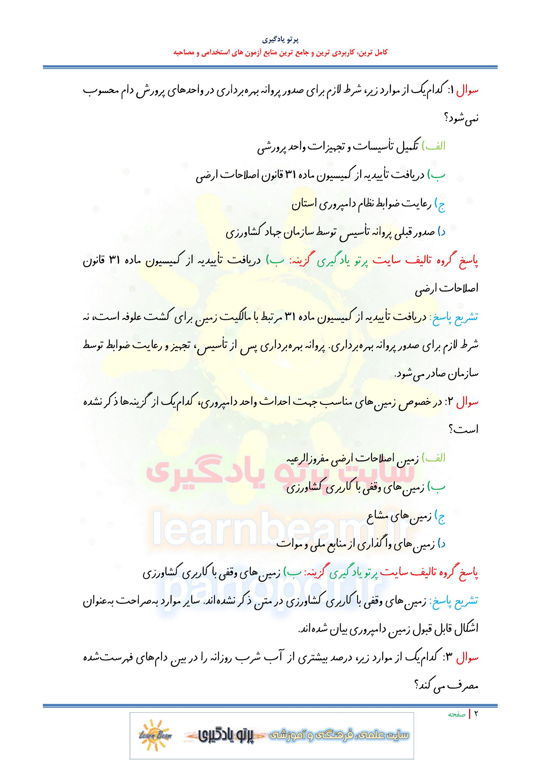 مجموعه سوالات و تست کتاب دانش فنی تخصصی امور دامی با پاسخ تشریحی