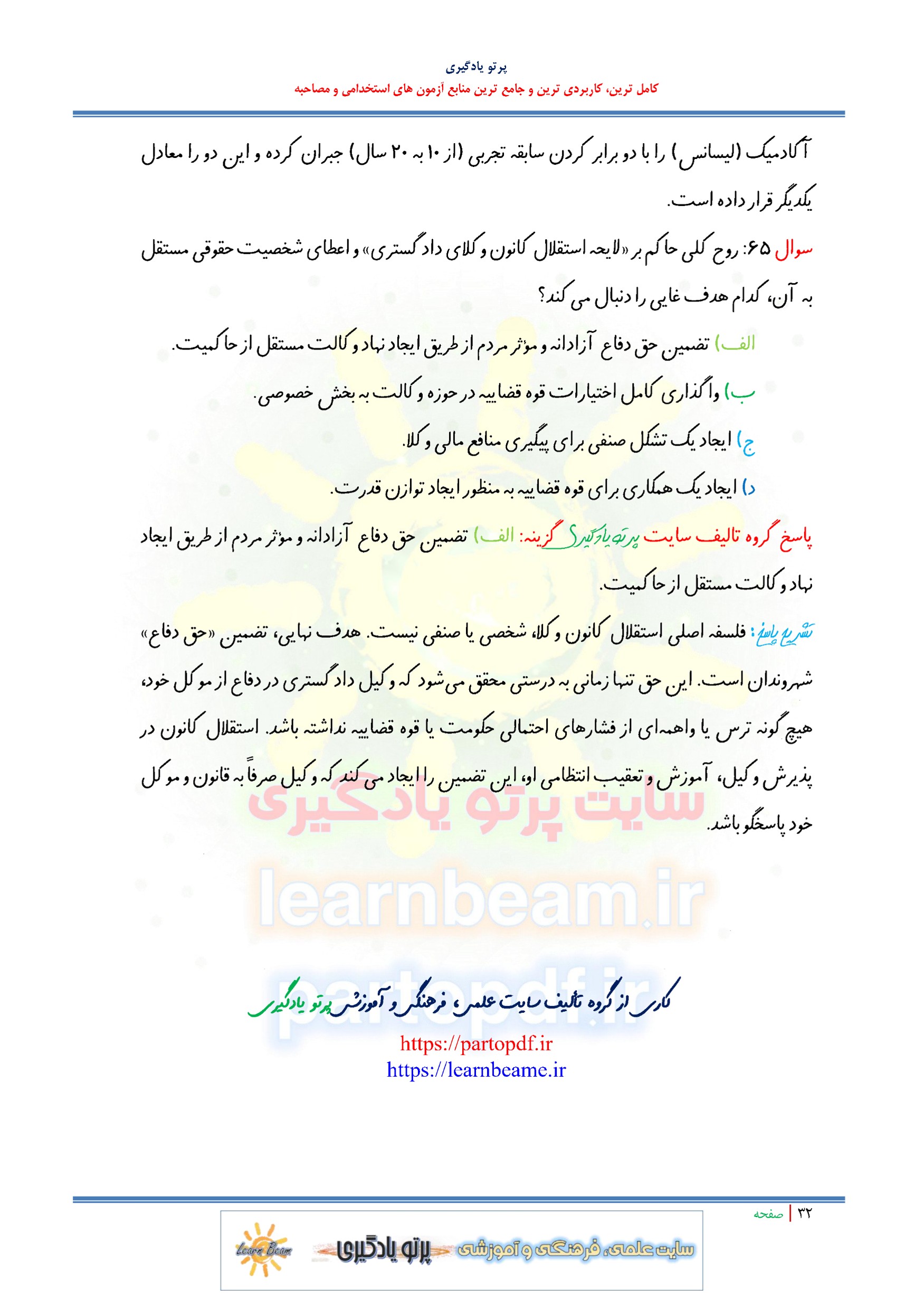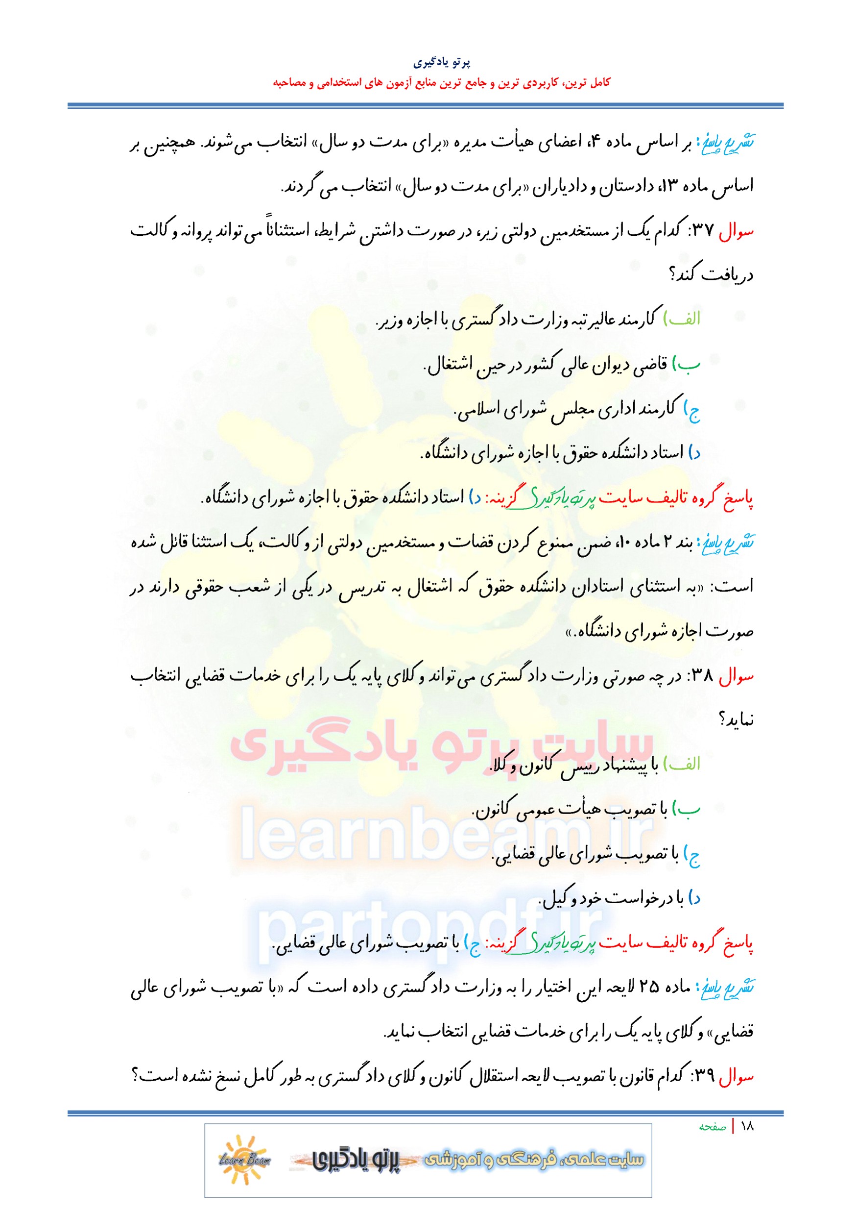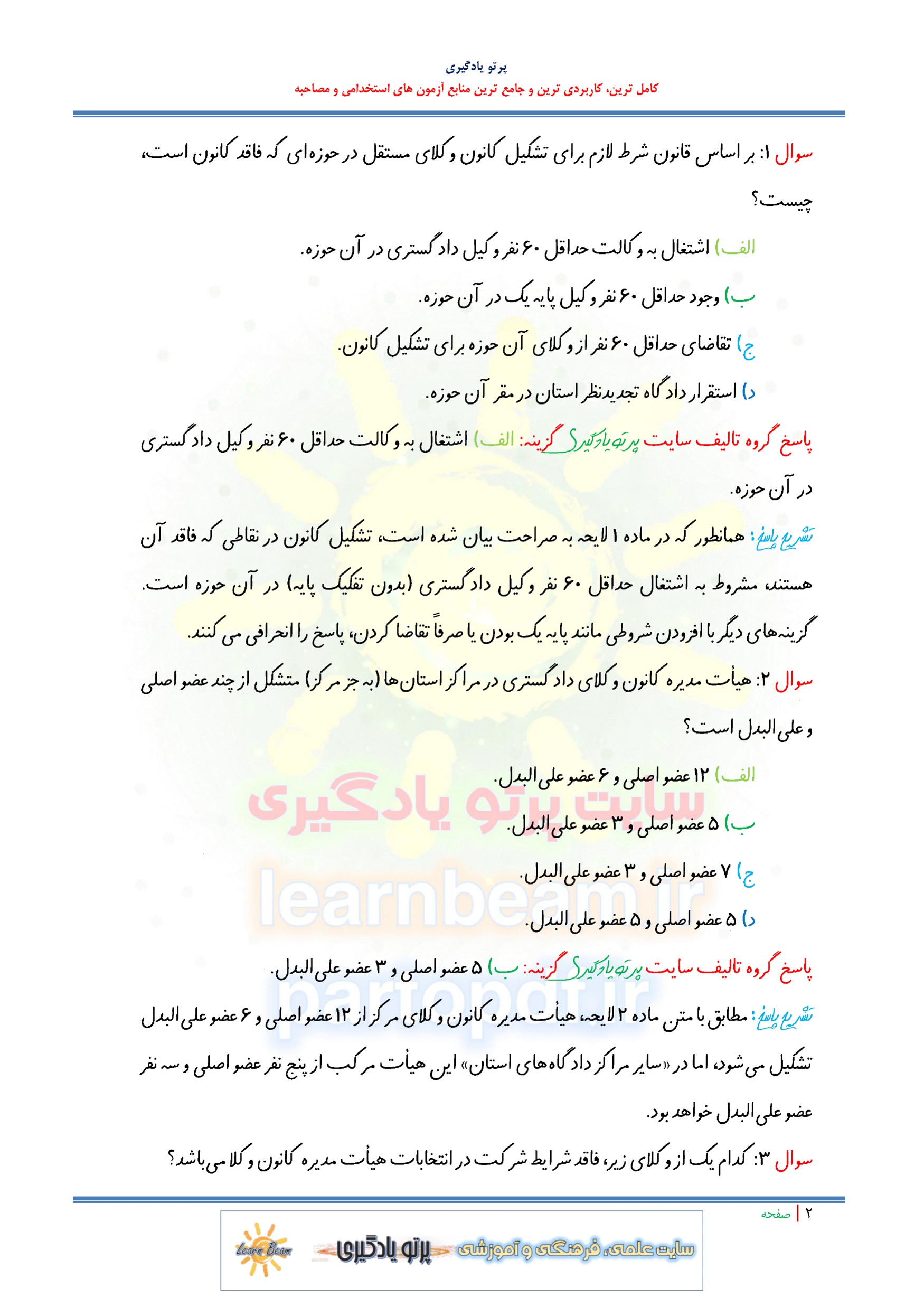 سوالات و تست لایحه قانونی استقلال کانون وکلای دادگستری