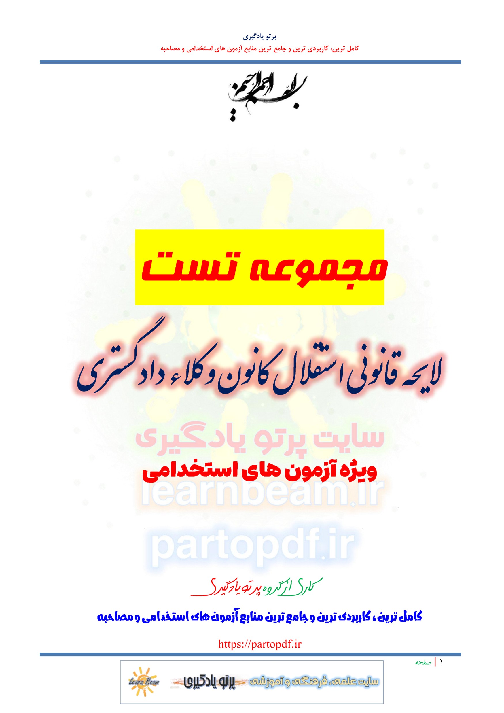 سوالات و تست لایحه قانونی استقلال کانون وکلای دادگستری سوالات لایحه قانونی استقلال کانون وکلای دادگستری شامل 65 سوال تستی در 32 صفحه با پاسخ تشریحی در قالب فایل pdf. بهترین منبع برای آزمون های استخدامی می باشد. مجموعه سوالات تستی لایحه قانونی استقلال کانون وکلای دادگستری مطالب خوانده شده داوطلبین آزمون استخدامی را نظم بخشیده و منسجم می سازد. این مجموعه مرور سریع داوطلب را سبب می شود و آگاهی های وی را نظم بخشیده و یک آمادگی و شبیه سازی را برای جلسه آزمون به همراه دارد. مطالعه این منبع برای همه داوطلبین شرکت کننده در آزمون های استخدامی پیشنهاد می شود.