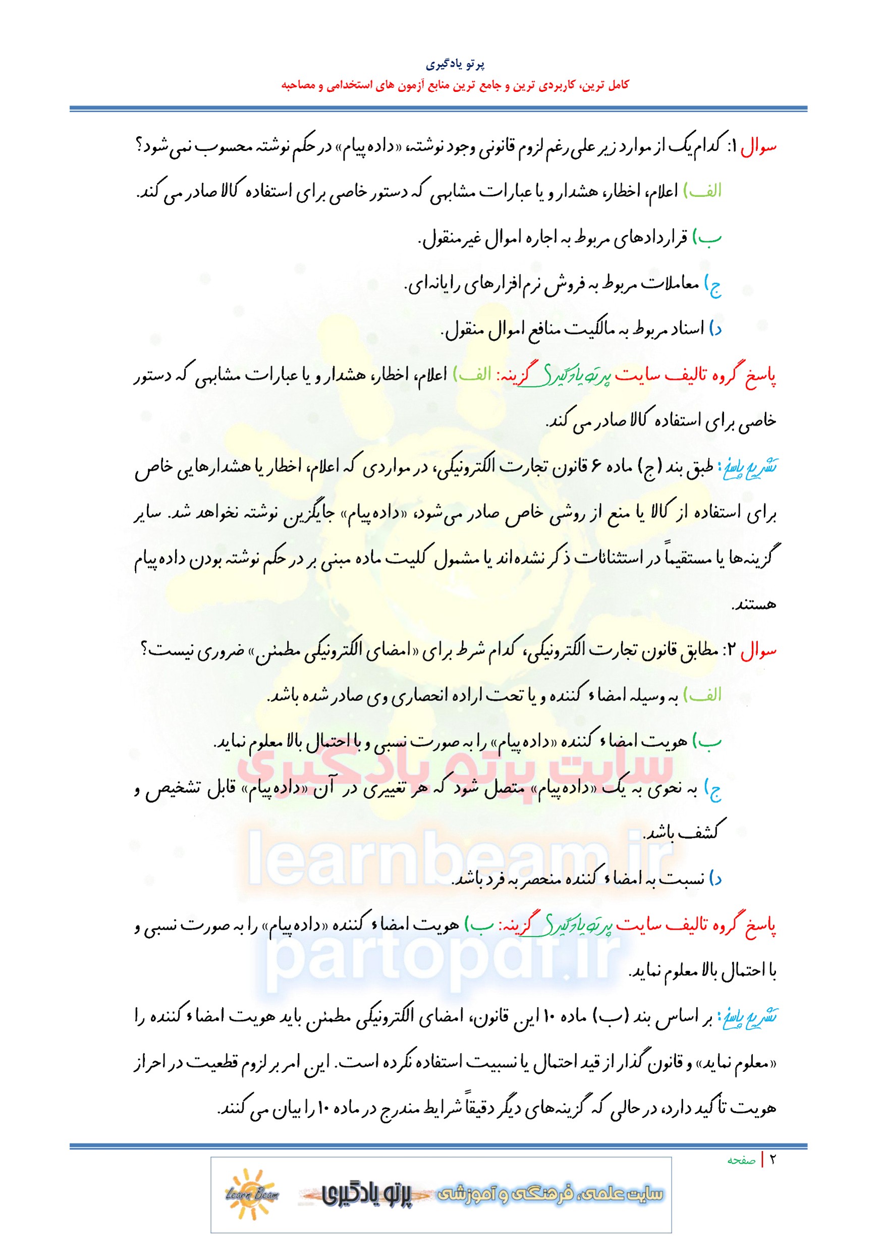 مجموعه سوالات و تست قانون تجارت الکترونیک با پاسخ تشریحی
