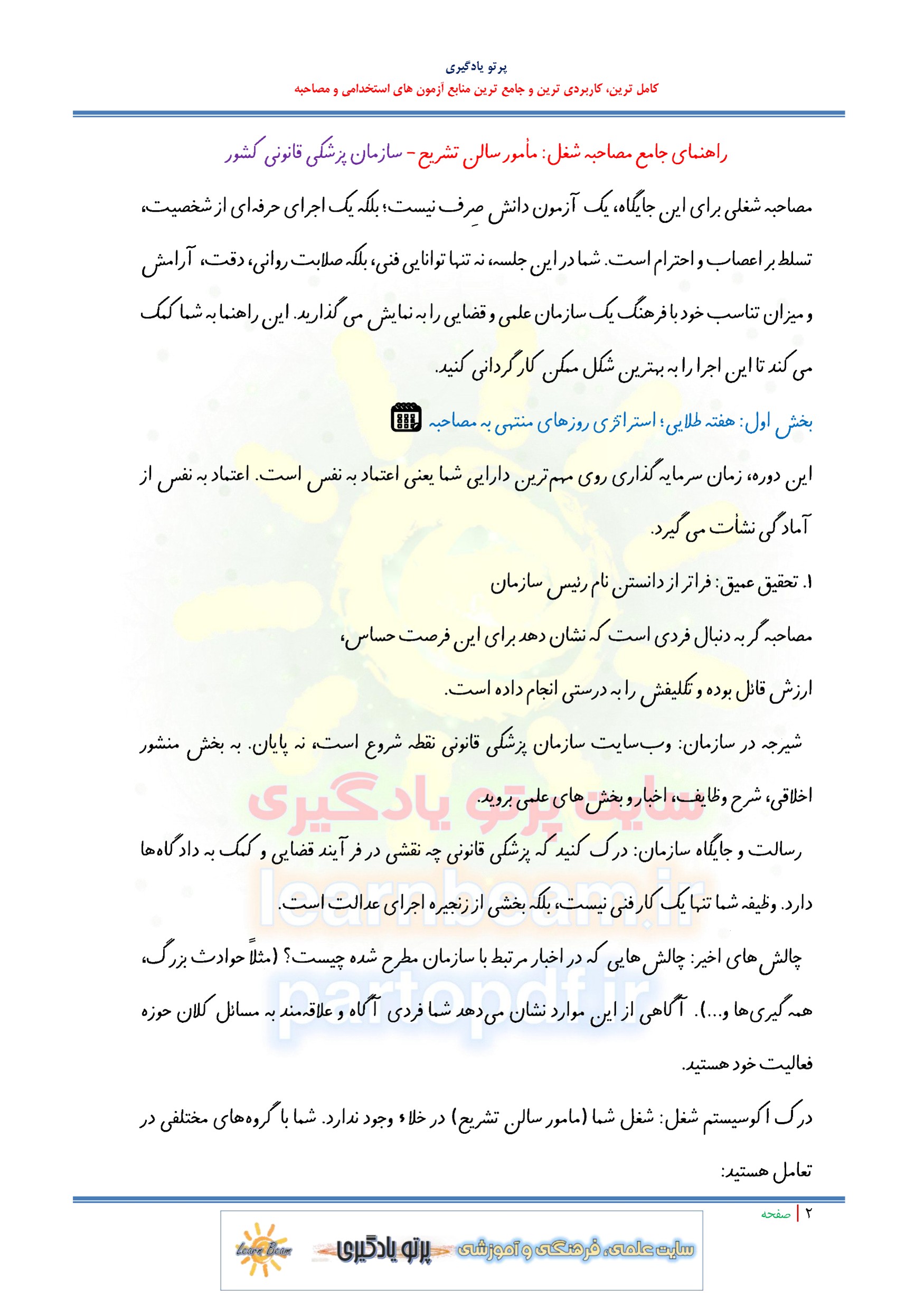 جزوه سوالات مصاحبه استخدامی شغل مامور سالن تشریح استخدامی سازمان پزشکی قانونی کشور