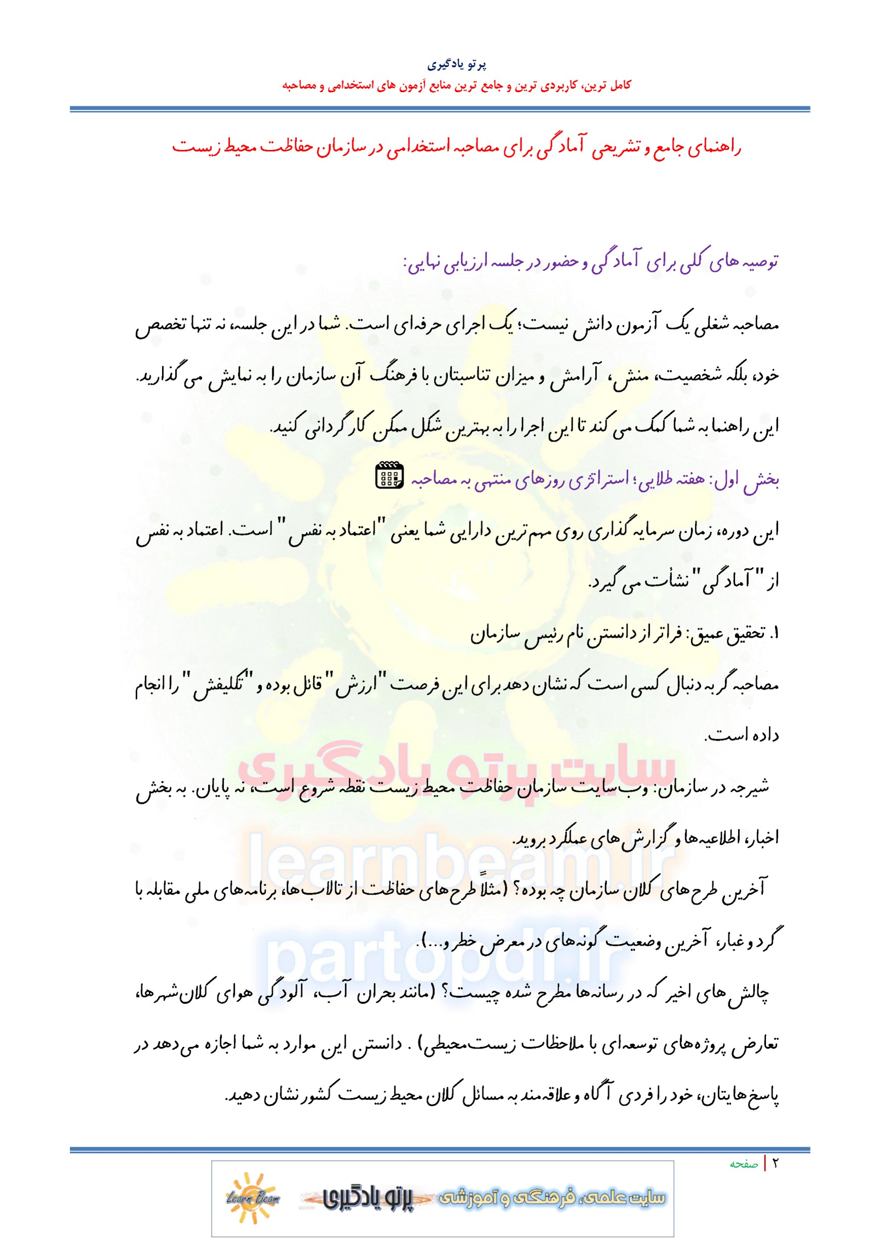جزوه سوالات مصاحبه استخدامی مشاغل سازمان حفاظت محیط زیست کشور