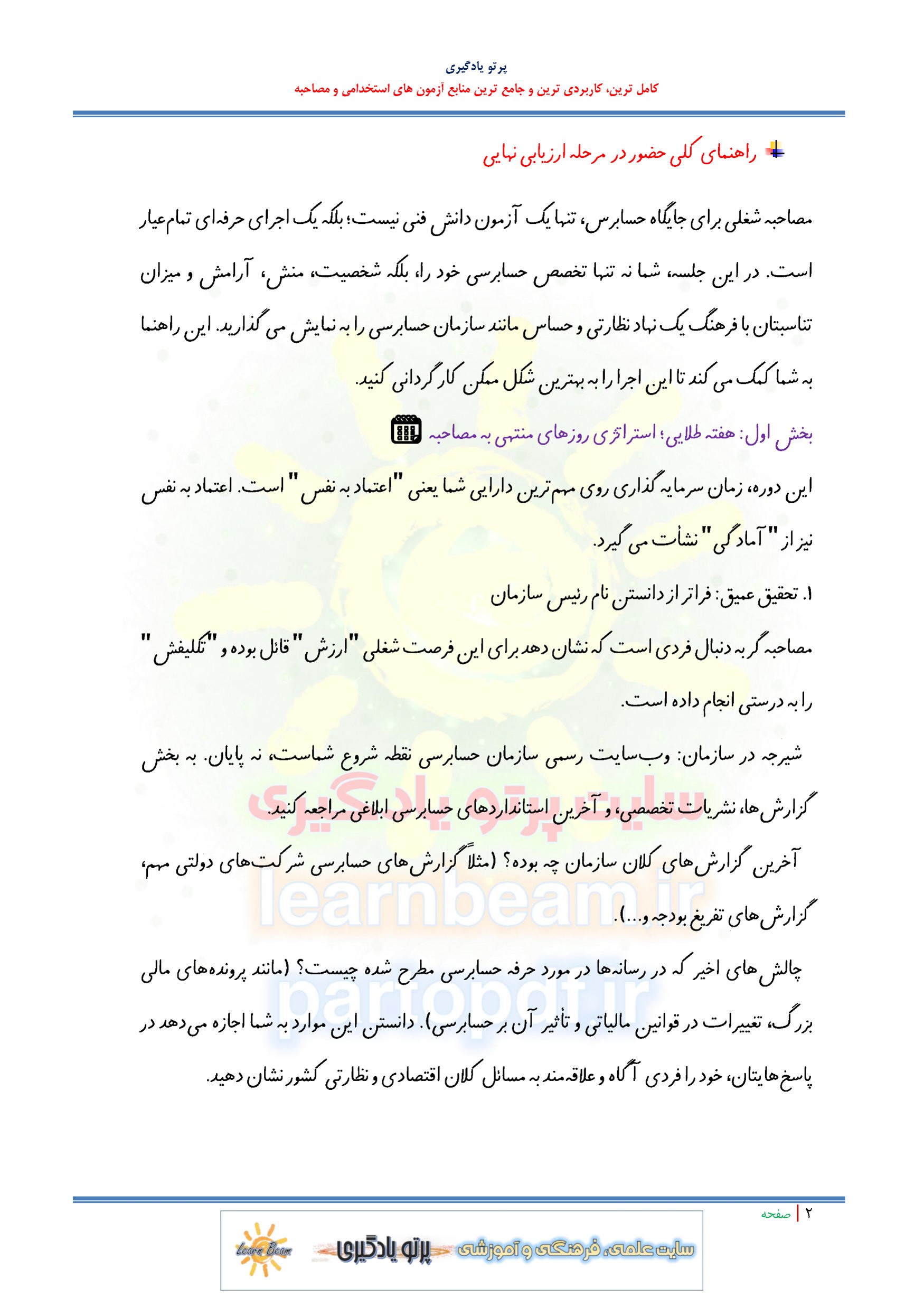جزوه سوالات مصاحبه استخدامی شغل حسابرس استخدامی سازمان حسابرسی جمهوری اسلامی ایران