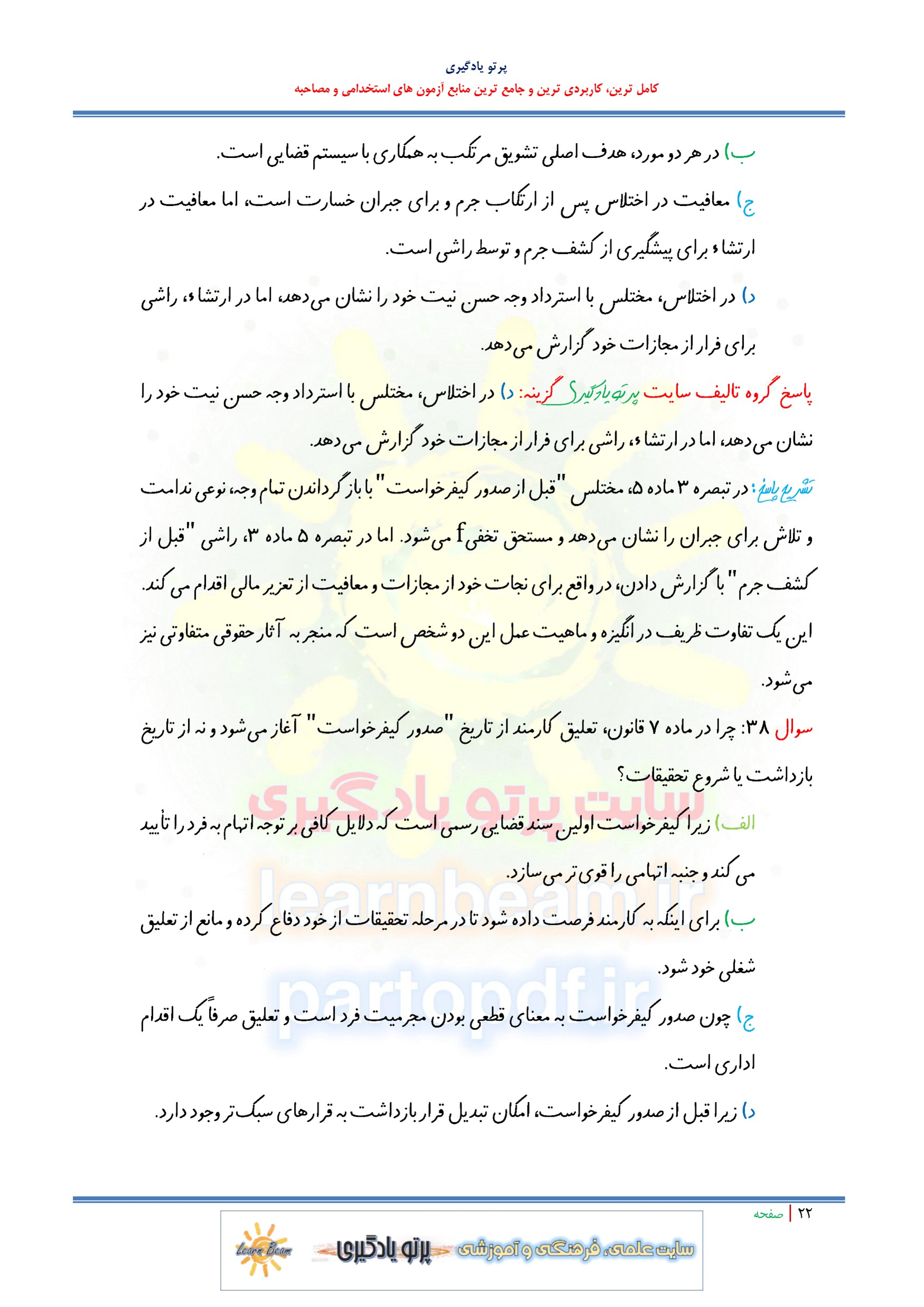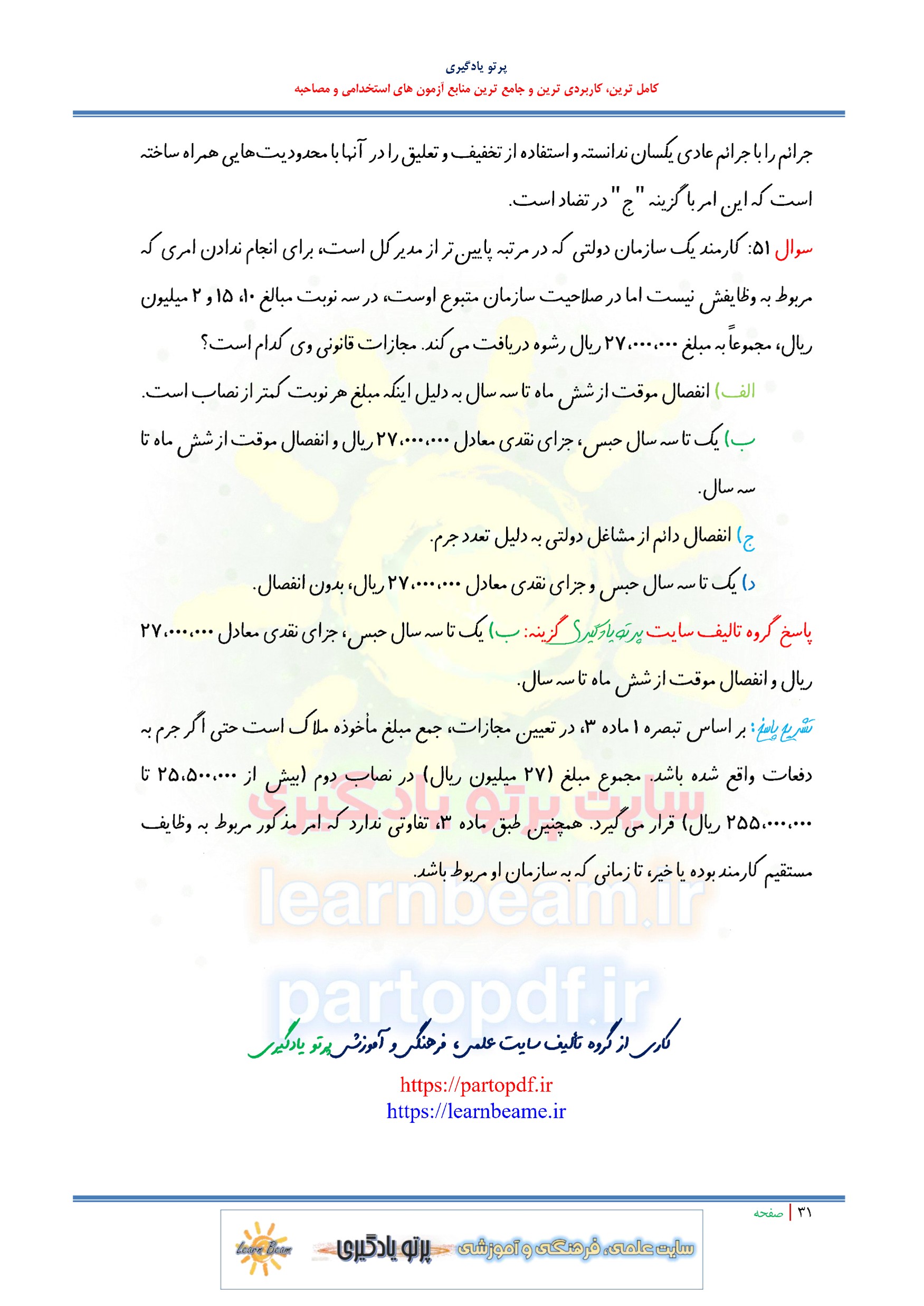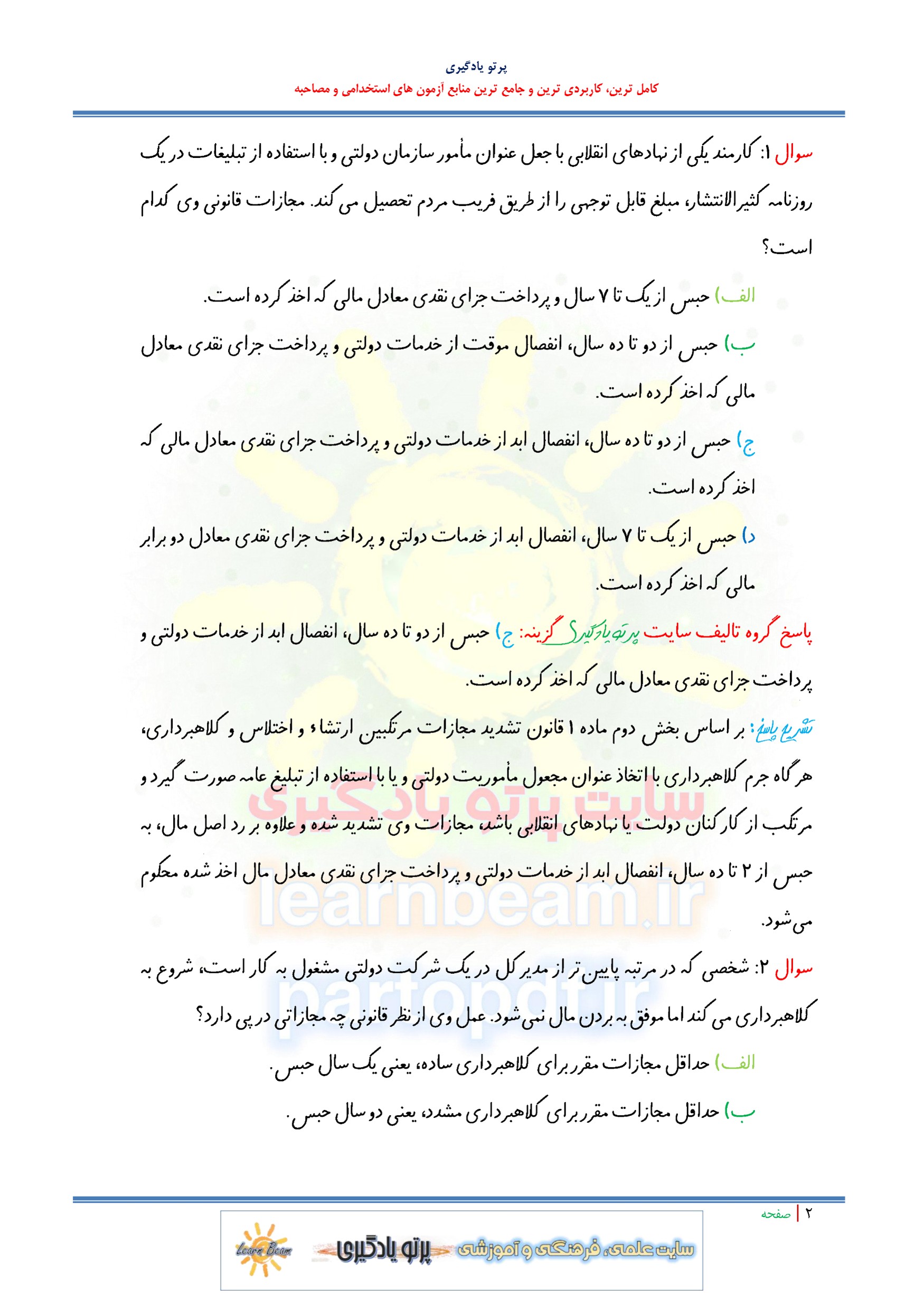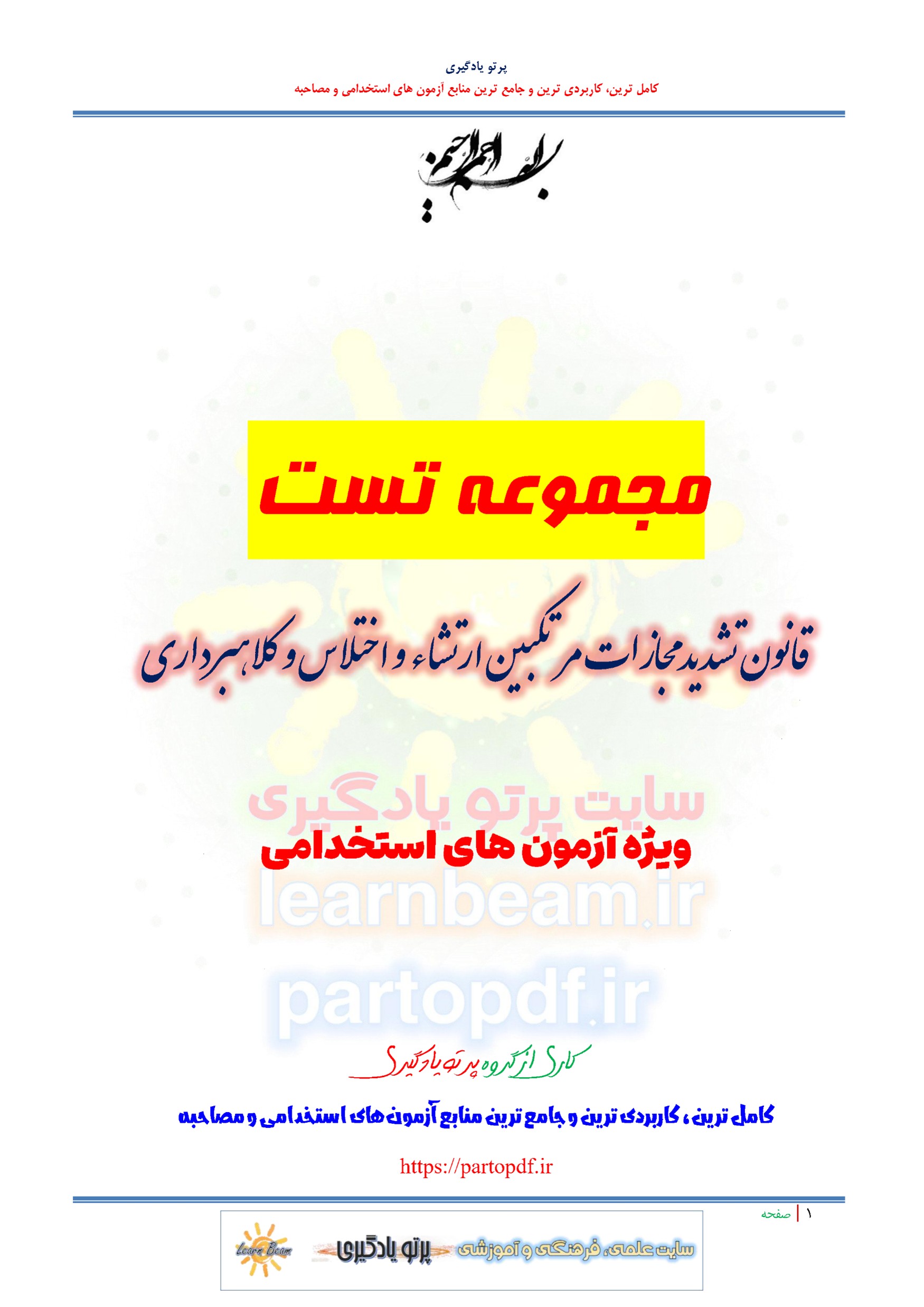 مجموعه سوالات و تست قانون تشديد مجازات مرتكبين ارتشاء و اختلاس و كلاهبرداری با پاسخ تشریحی