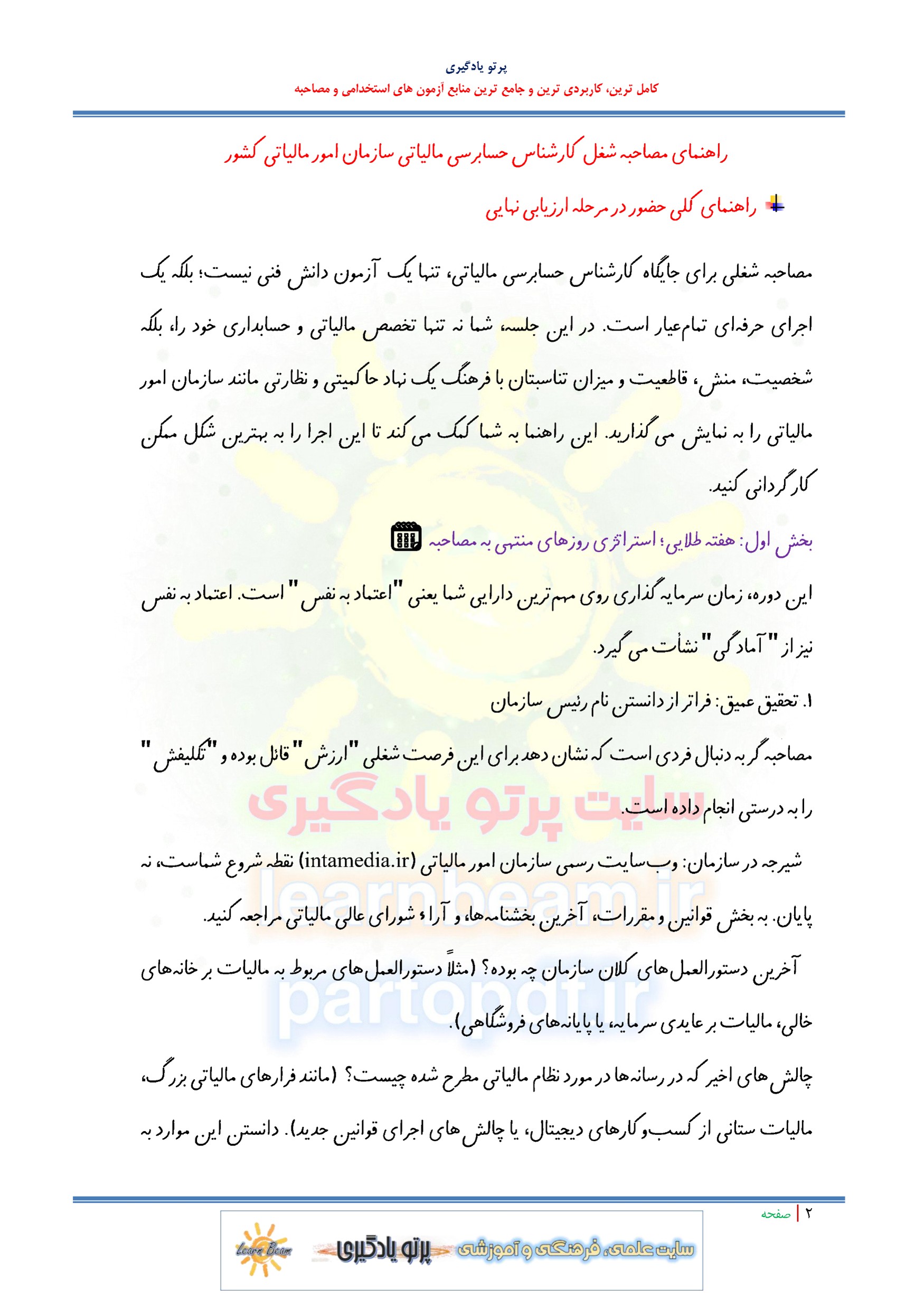 جزوه سوالات مصاحبه استخدامی کارشناس حسابرسی مالیاتی استخدامی سازمان امور مالیاتی کشور