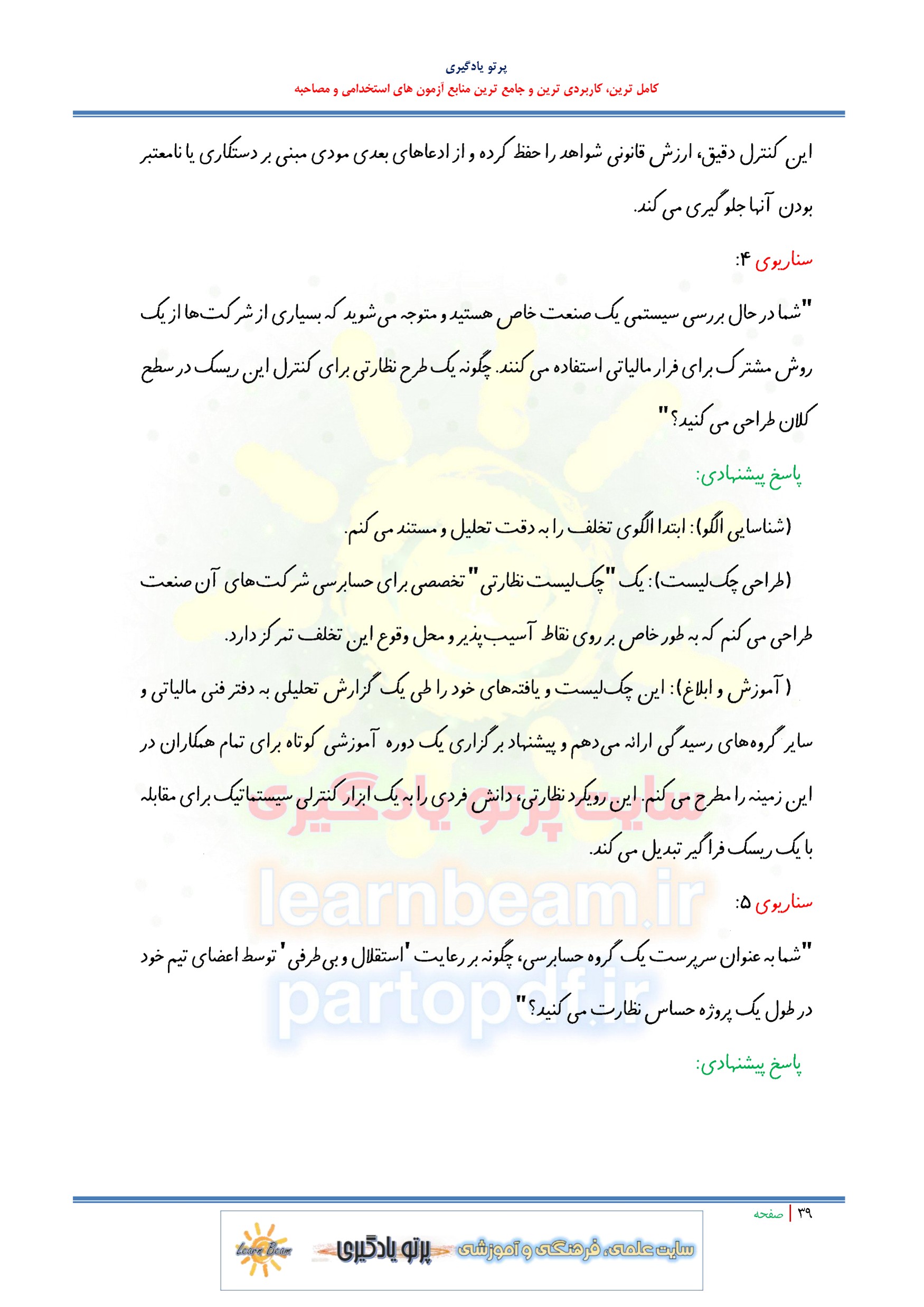 سوالات در قالب سناریو و مصاحبه شایسته محور و مباحث عمومی و تخصصی