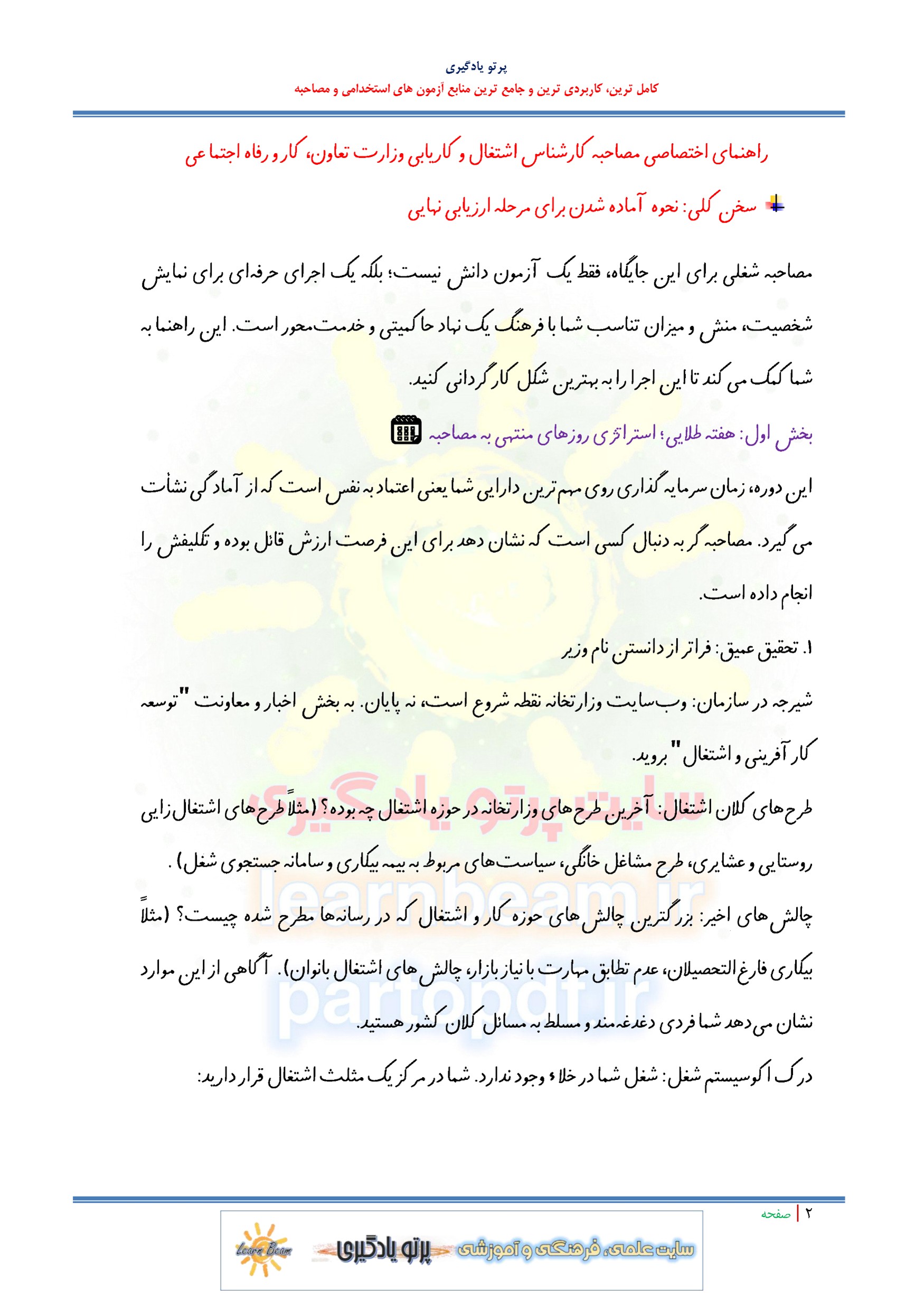 جزوه سوالات مصاحبه استخدامی کارشناس اشتغال و کاریابی استخدامی وزارت تعاون کار و رفاه اجتماعی