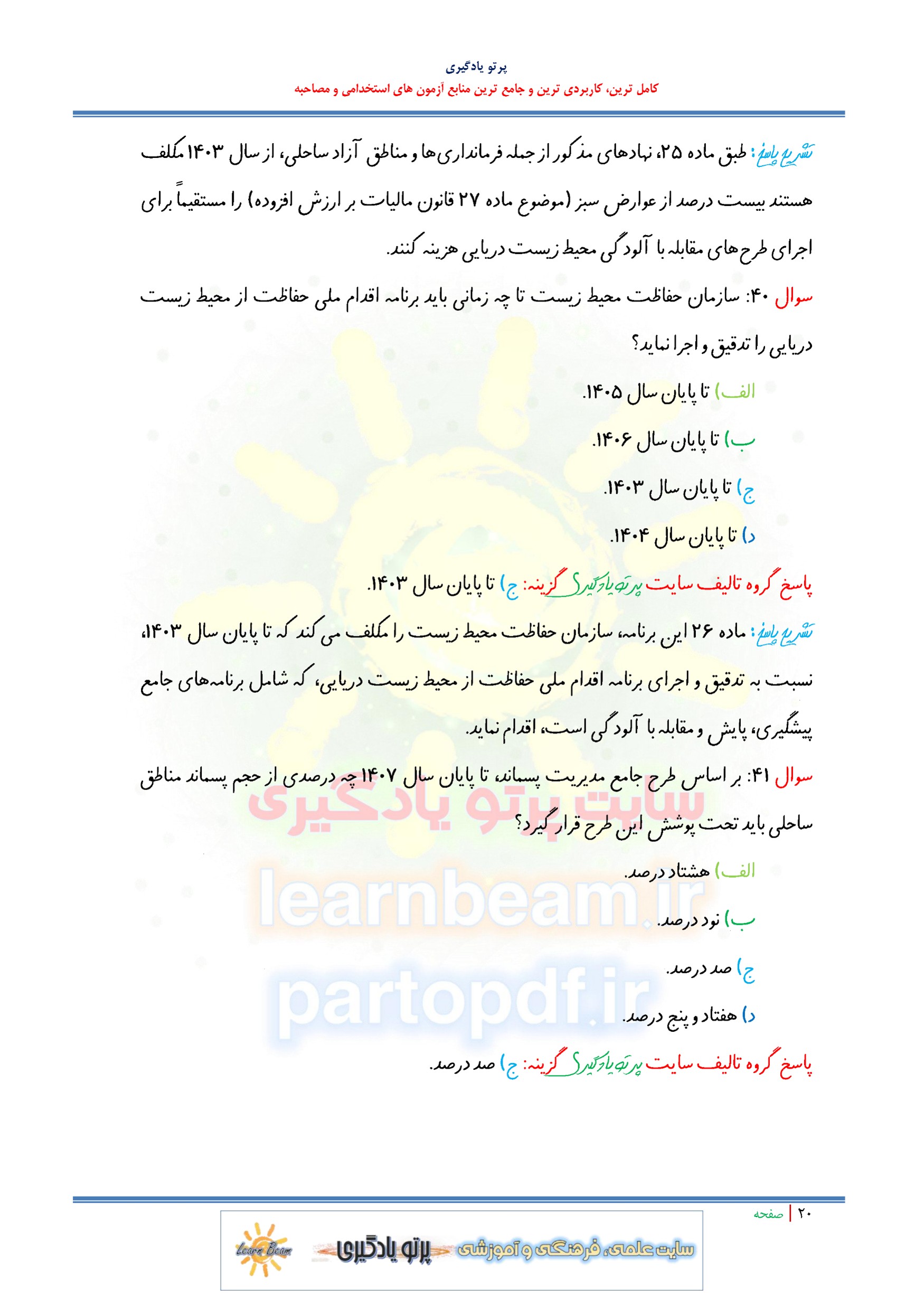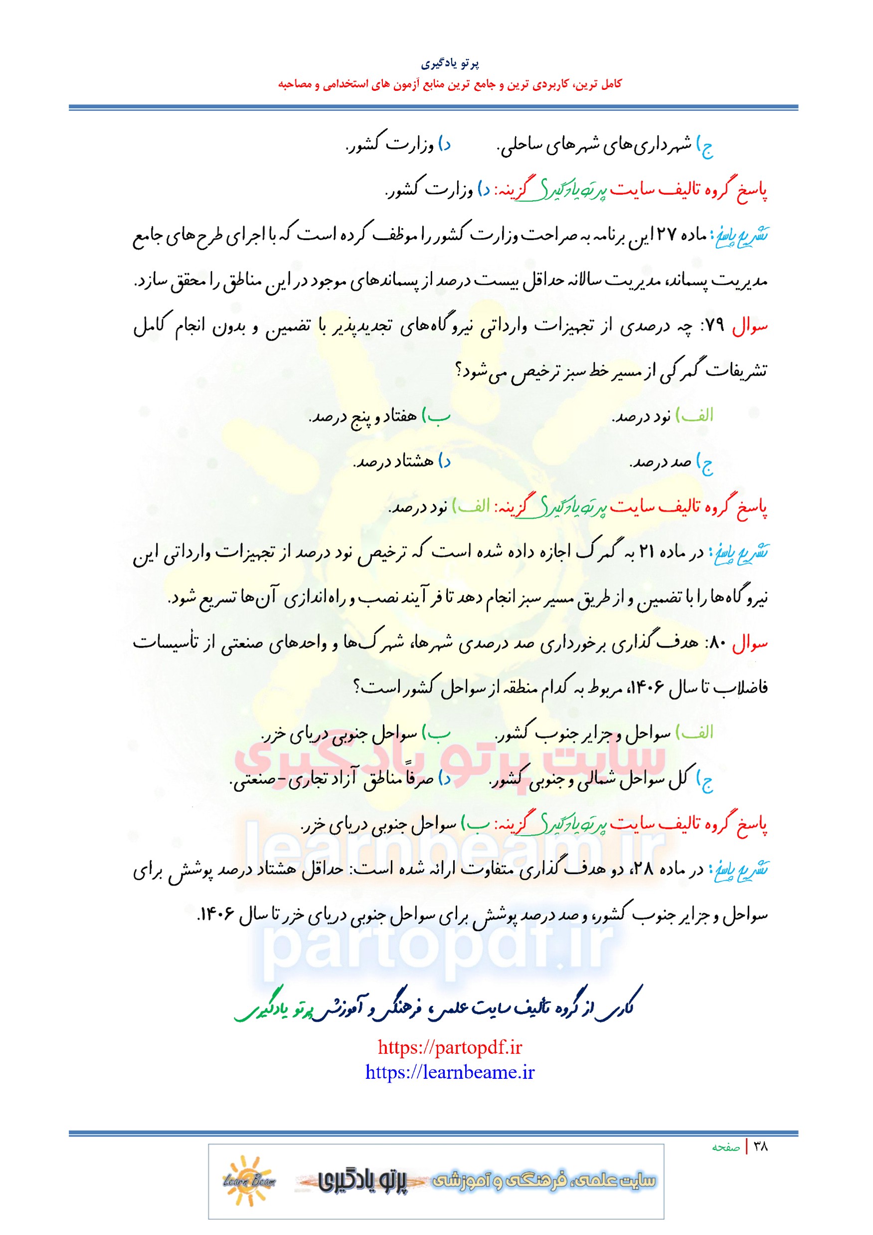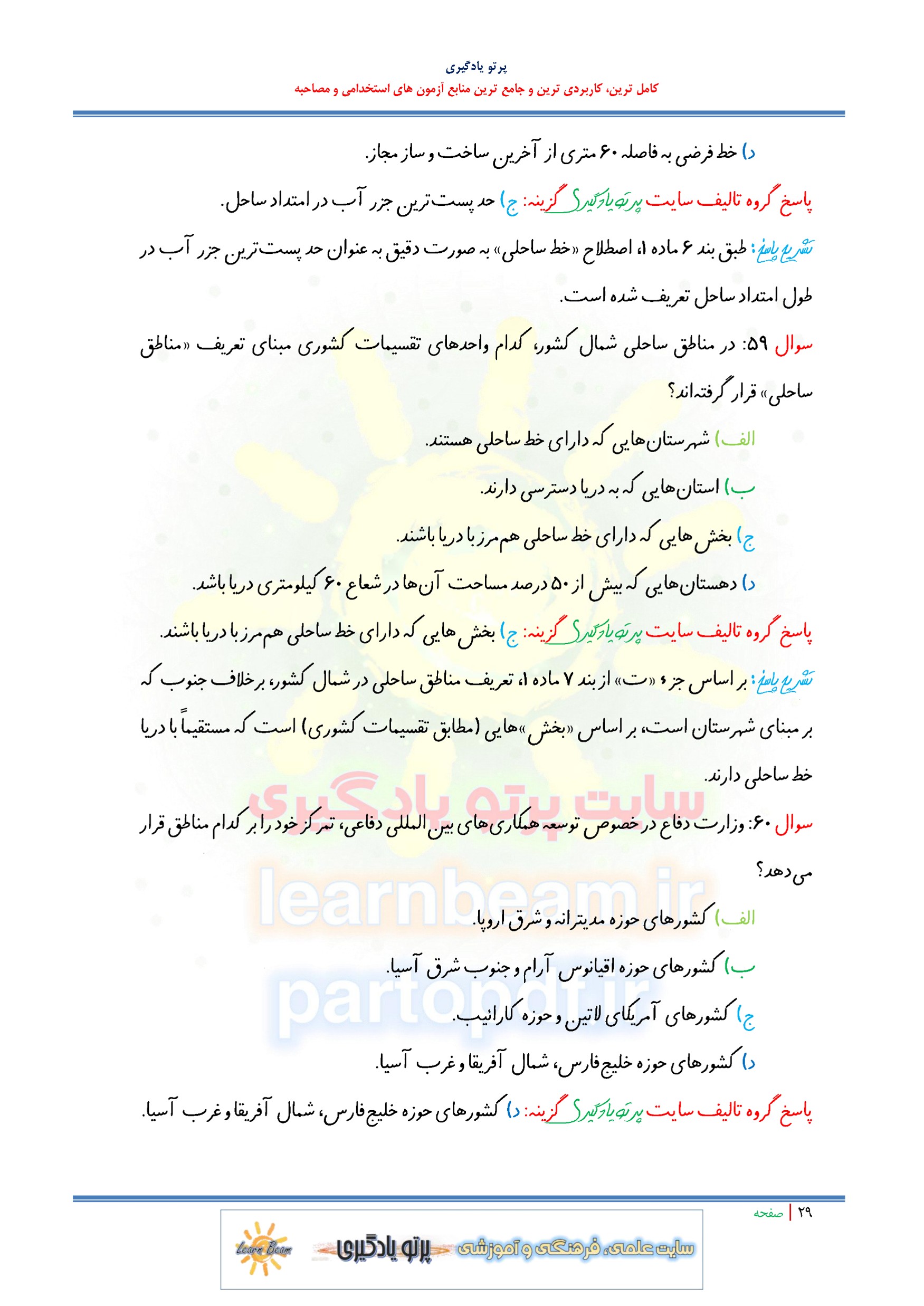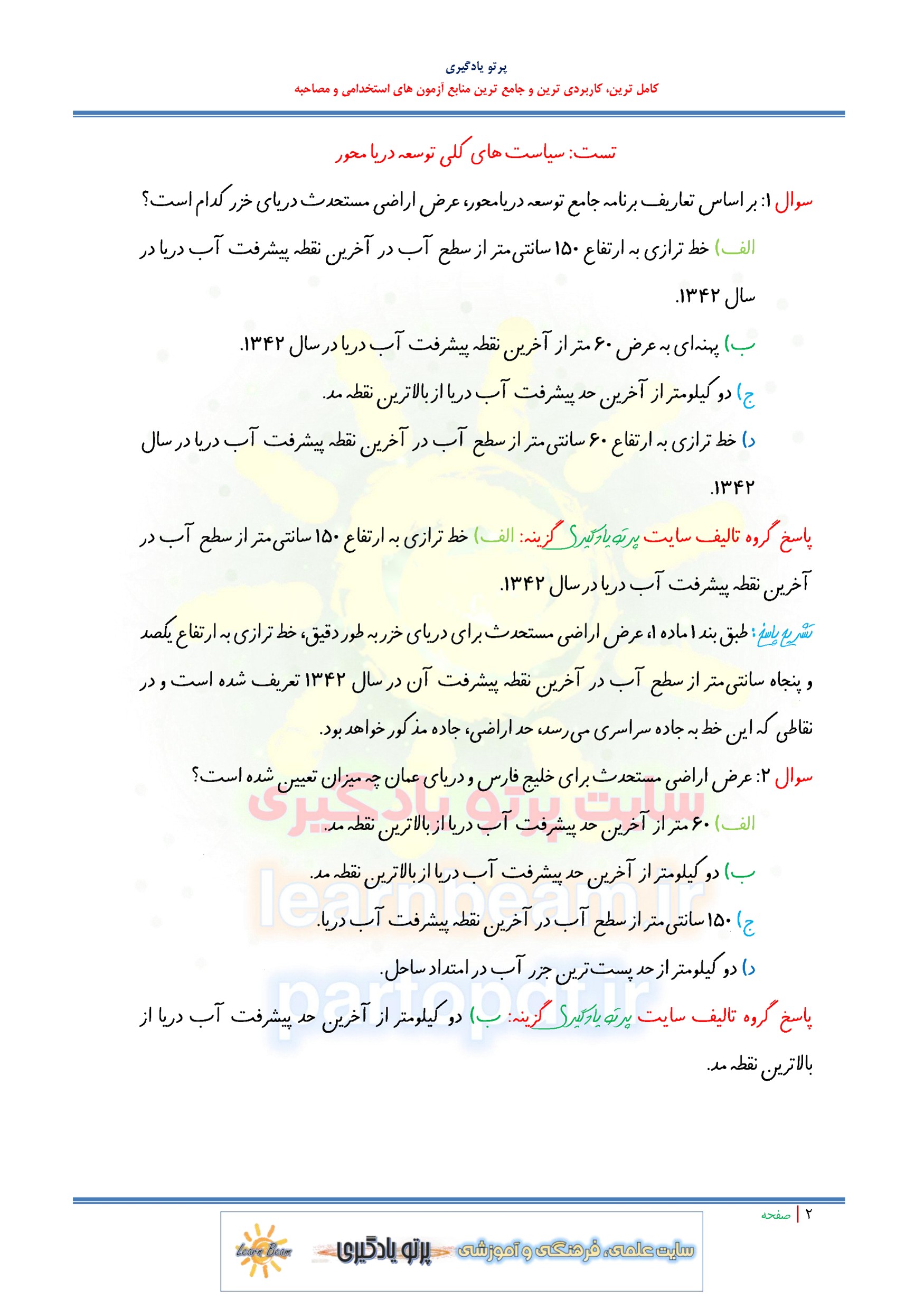 مجموعه سوالات و تست سیاست های کلی توسعه دریا محور با پاسخ تشریحی