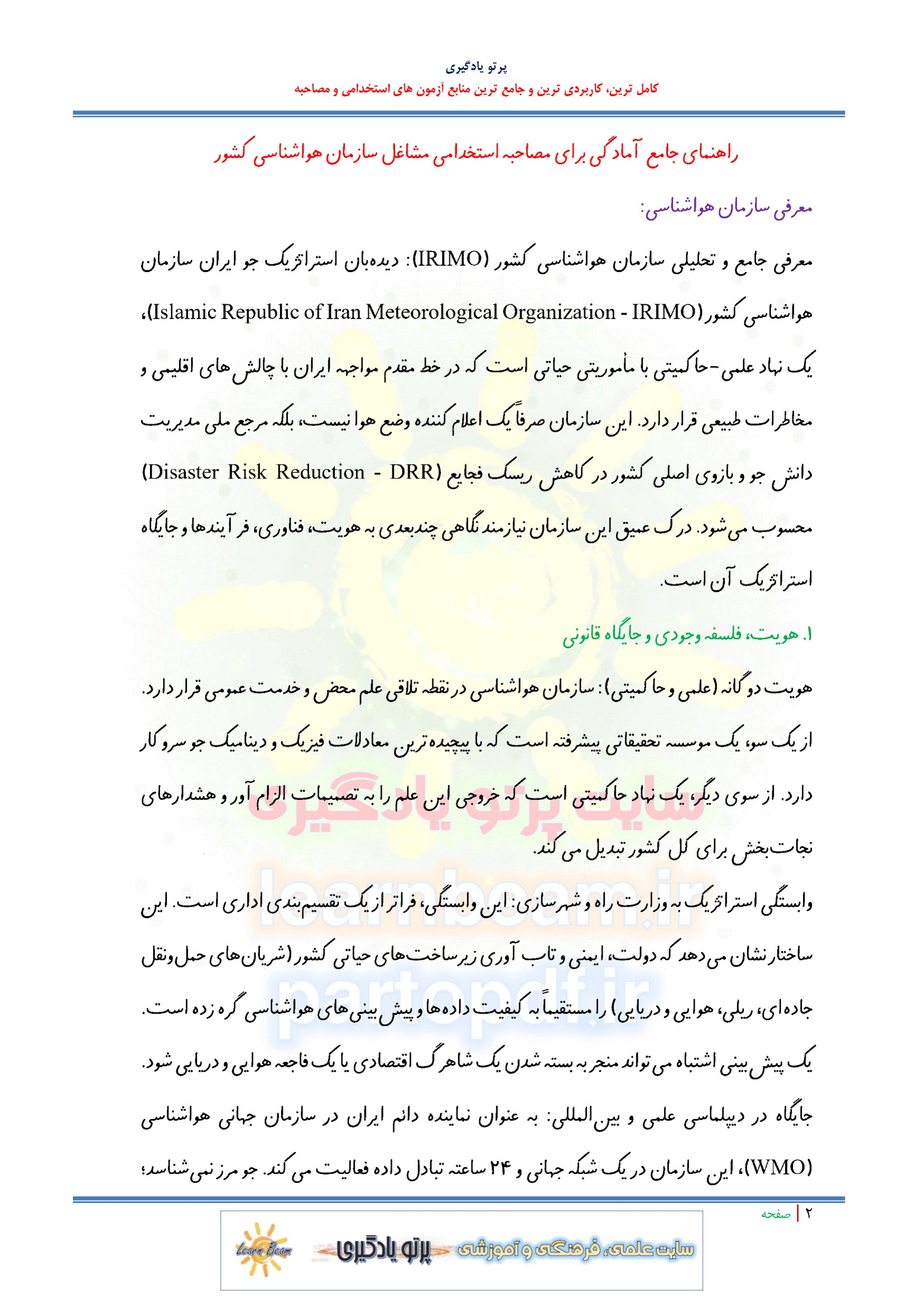 جزوه سوالات مصاحبه استخدامی مشاغل استخدامی شرکت هواشناسی کشور