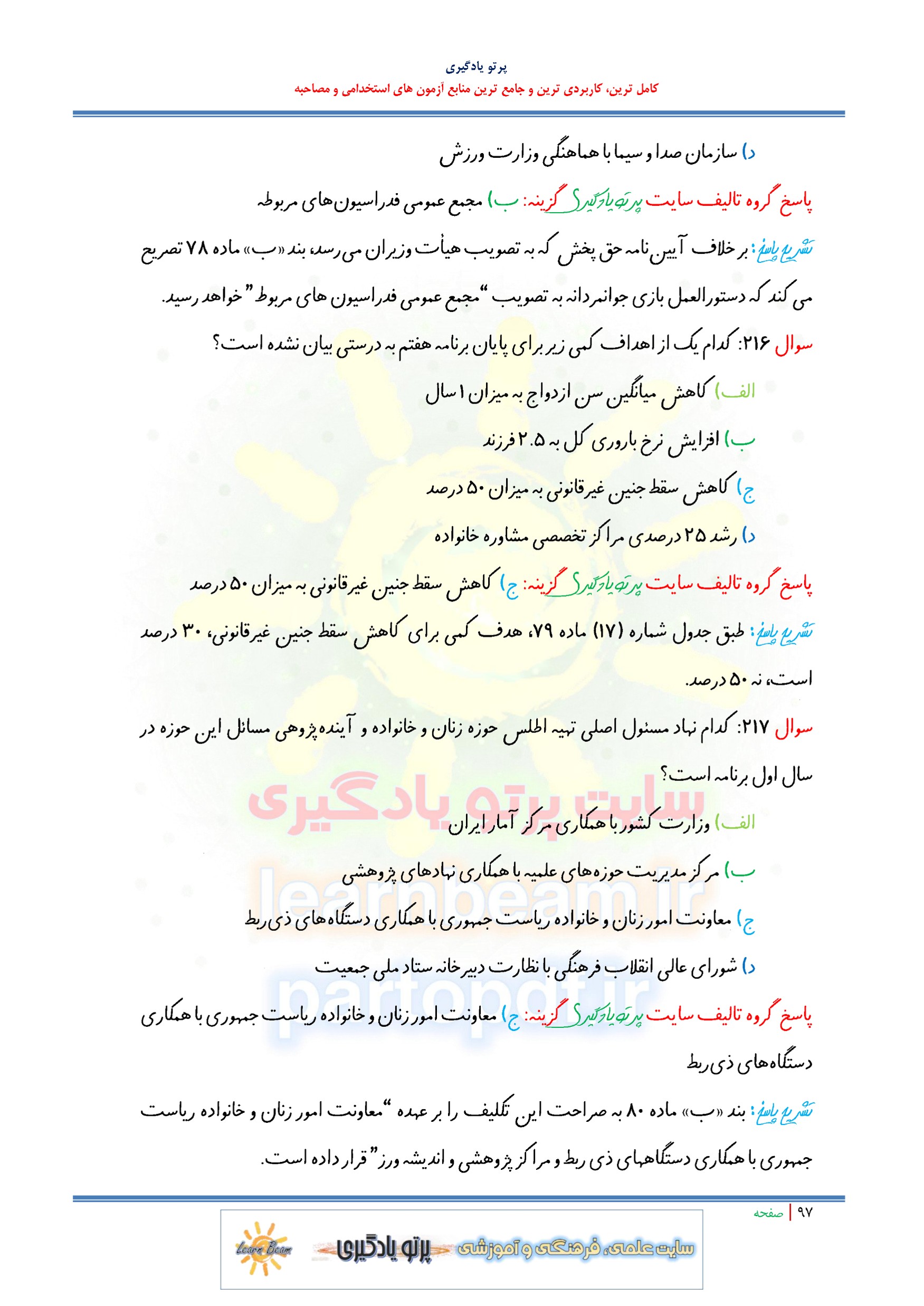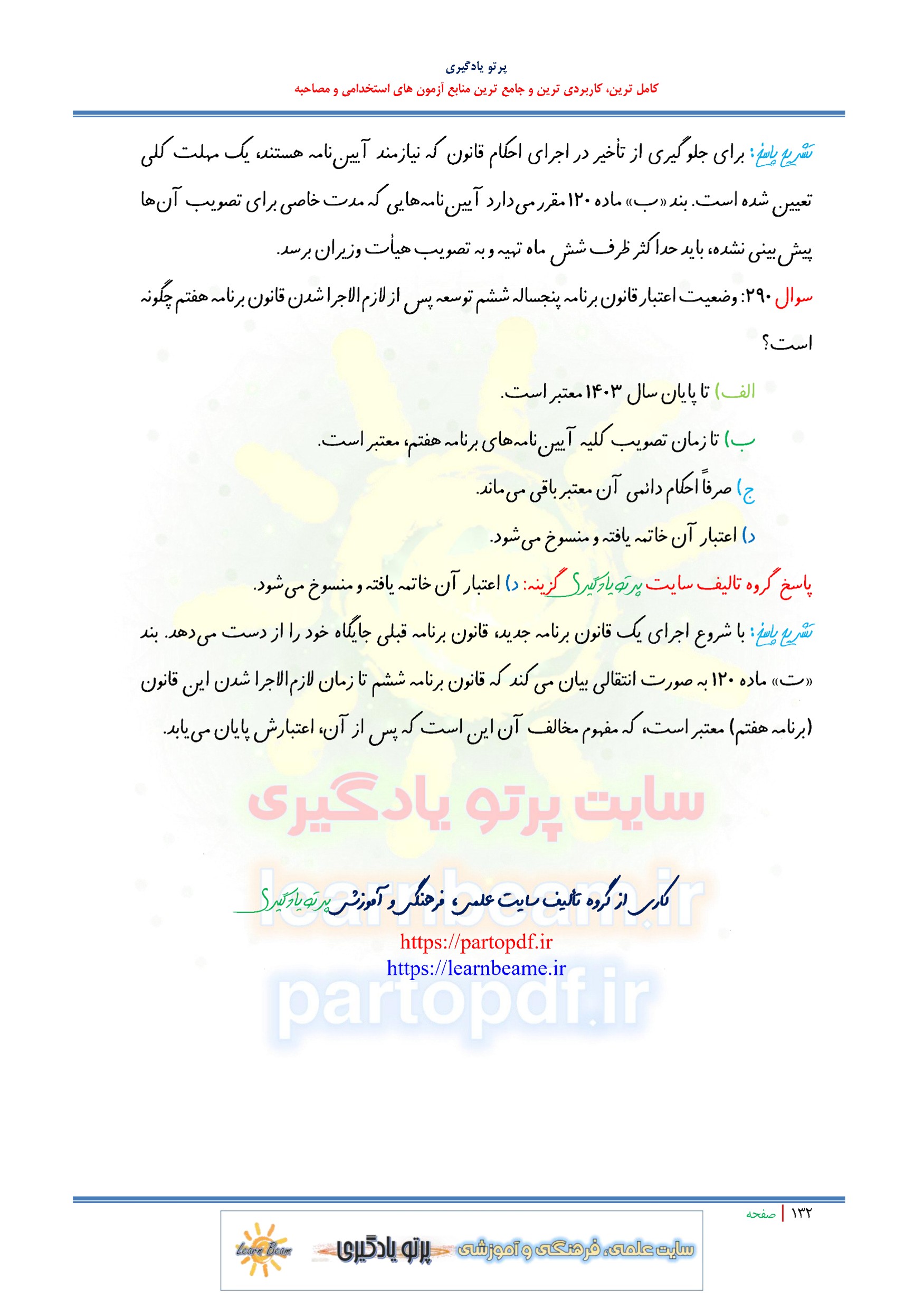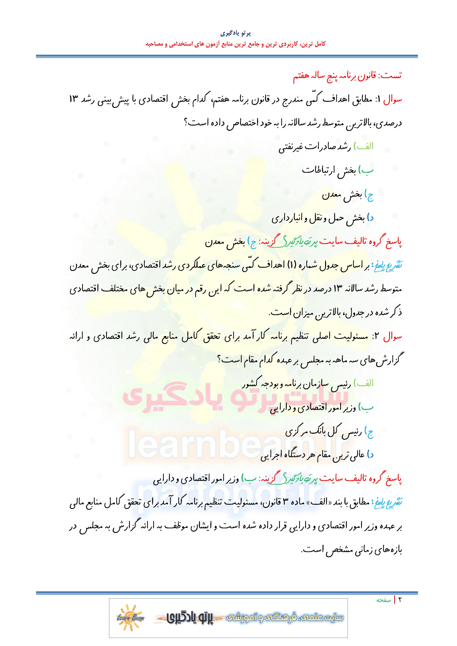 سوالات و تست تمامی فصول قانون برنامه پنج ساله هفتم
