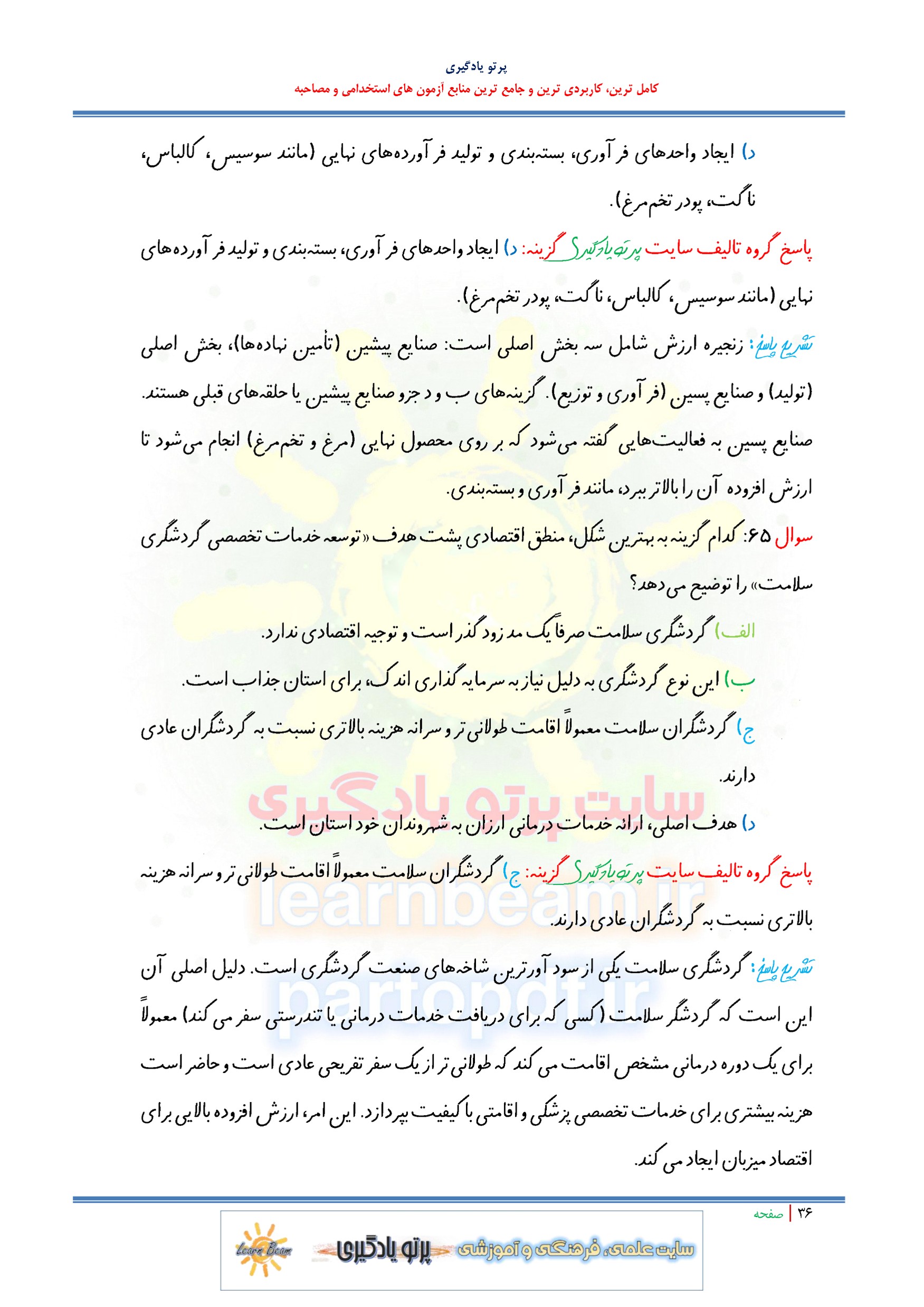 سوالات و تست سند آمایش استان گلستان تمامی فصول سوالات تستی سند آمایش استان گلستان شامل 80 سوال تستی در 46 صفحه با پاسخ تشریحی در قالب فایل pdf. مطابق با سرفصل های دفترچه آزمون های استخدامی مجموعه سوالات تستی سند آمایش استان گلستان بهترین منبع برای آمادگی آزمون های استخدامی می باشد. مجموعه سوالات و تست سند آمایش استان گلستان مطالب خوانده شده داوطلبین آزمون استخدامی را نظم بخشیده و منسجم می سازد. مجموعه سوالات تستی سند آمایش استان گلستان ویژه آزمون های استخدامی مرور سریع داوطلب را سبب می شود و آگاهی های وی را نظم بخشیده و یک آمادگی و شبیه سازی را برای جلسه آزمون به همراه دارد. مطالعه پک مجموعه سوالات و تست سند آمایش استان گلستان برای داوطلبین آزمون های استخدامی پیشنهاد می شود.