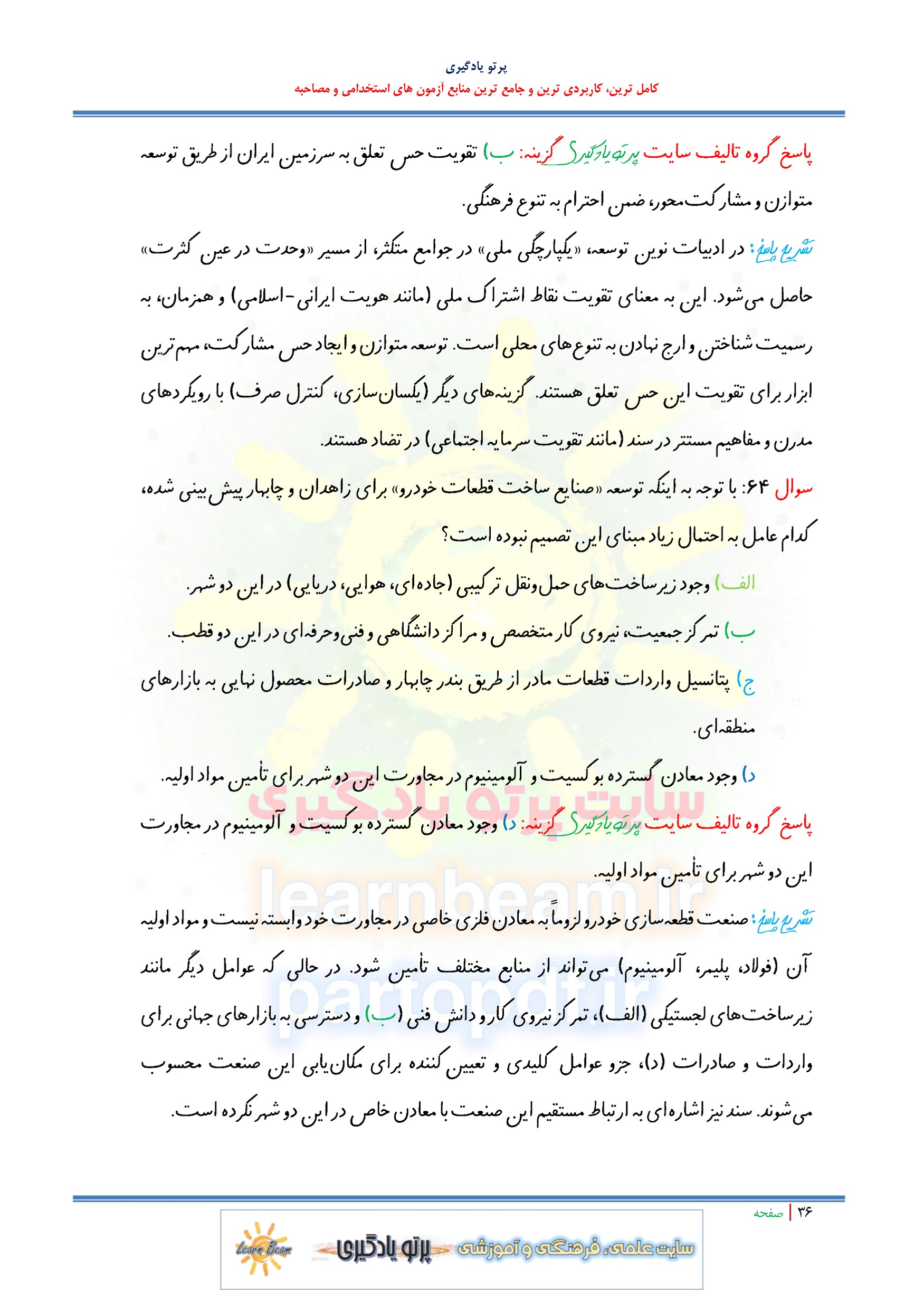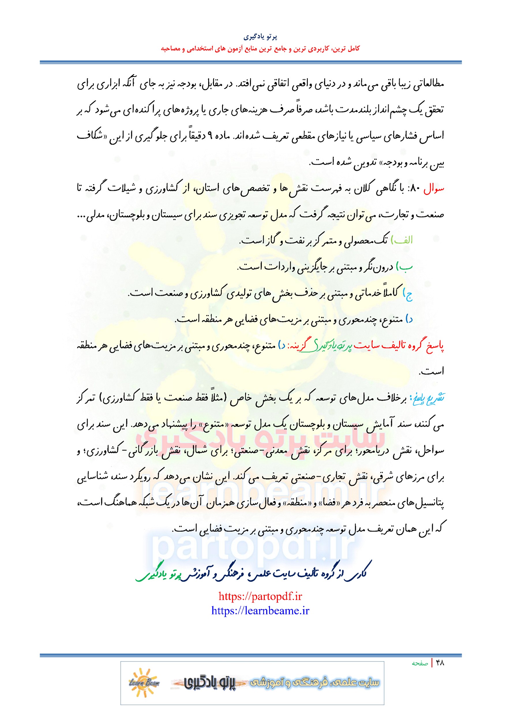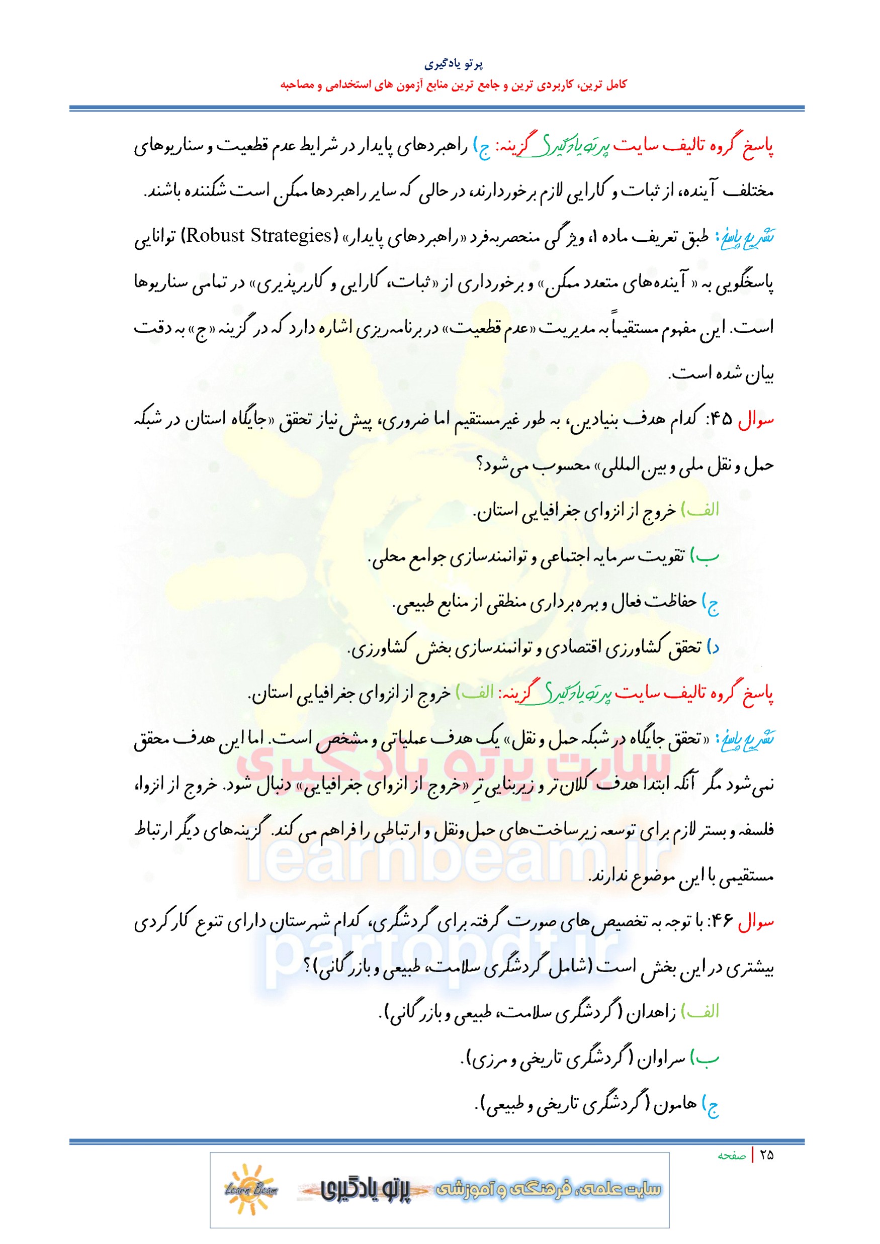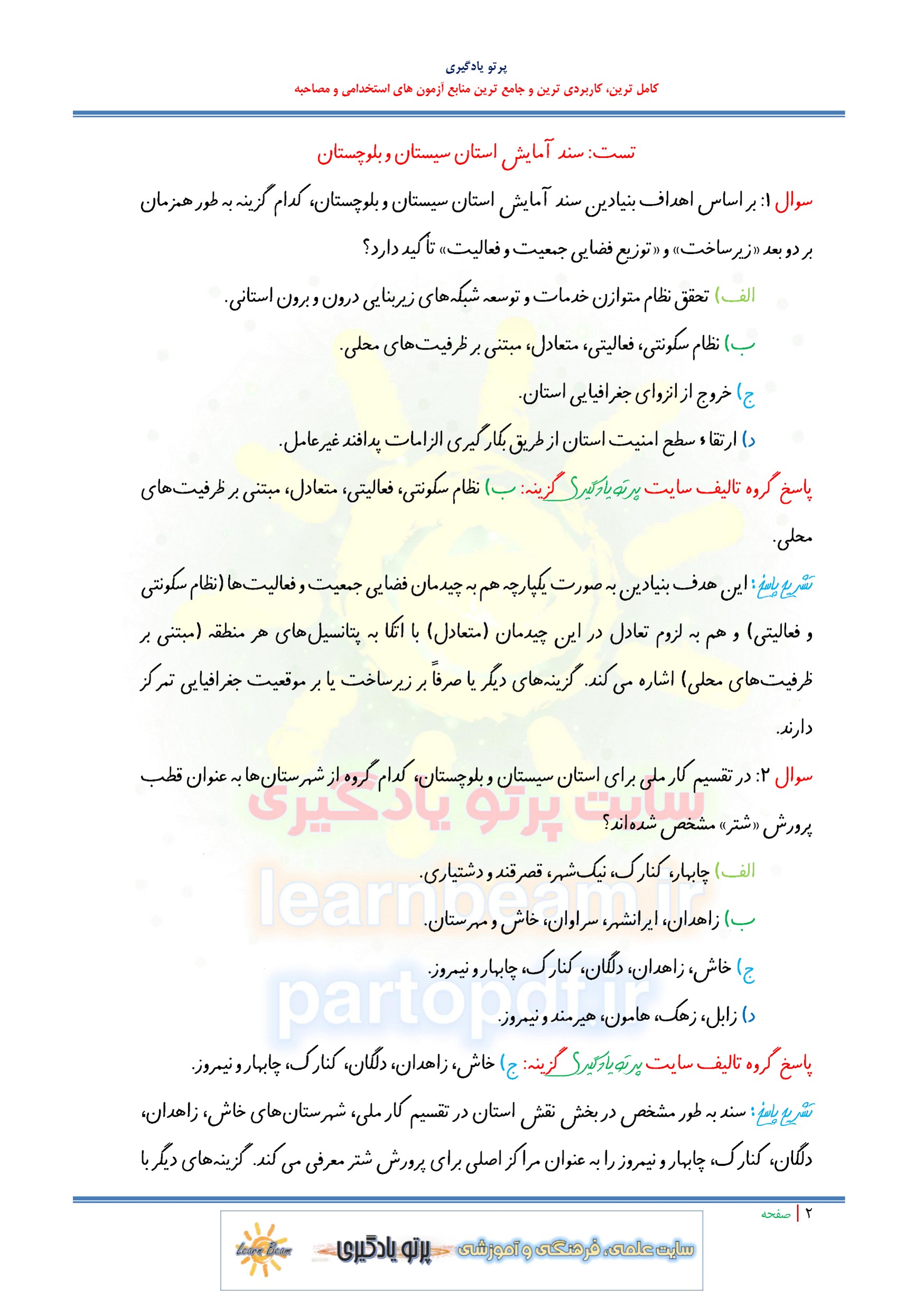 مجموعه سوالات و تست سند آمایش استان سیستان و بلوچستان با پاسخ تشریحی