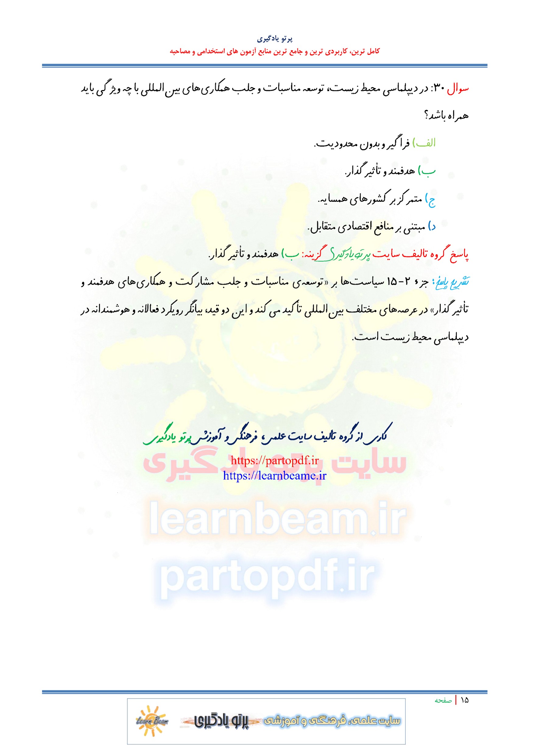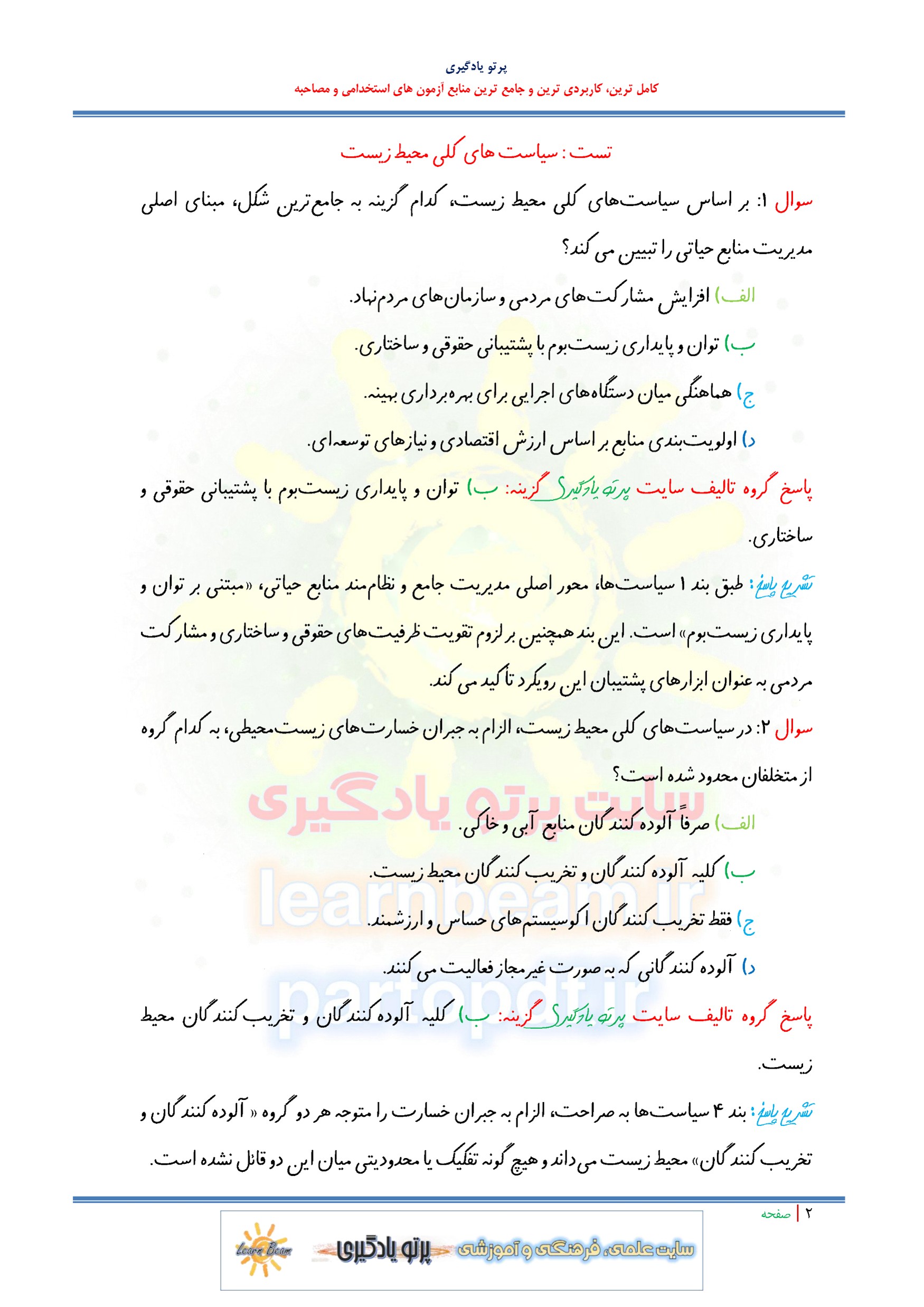 مجموعه سوالات و تست سیاست های کلی محیط زیست با پاسخ تشریحی