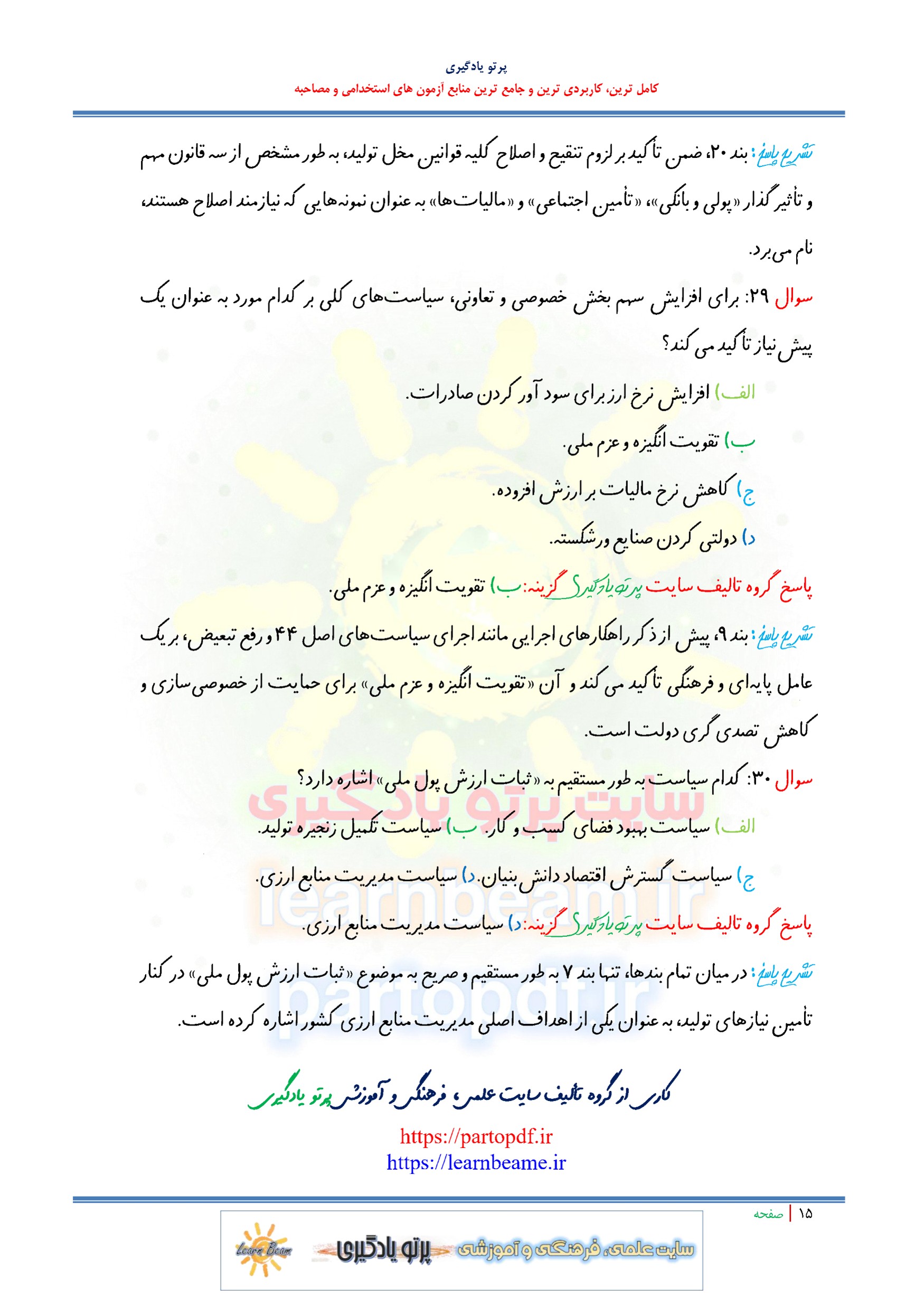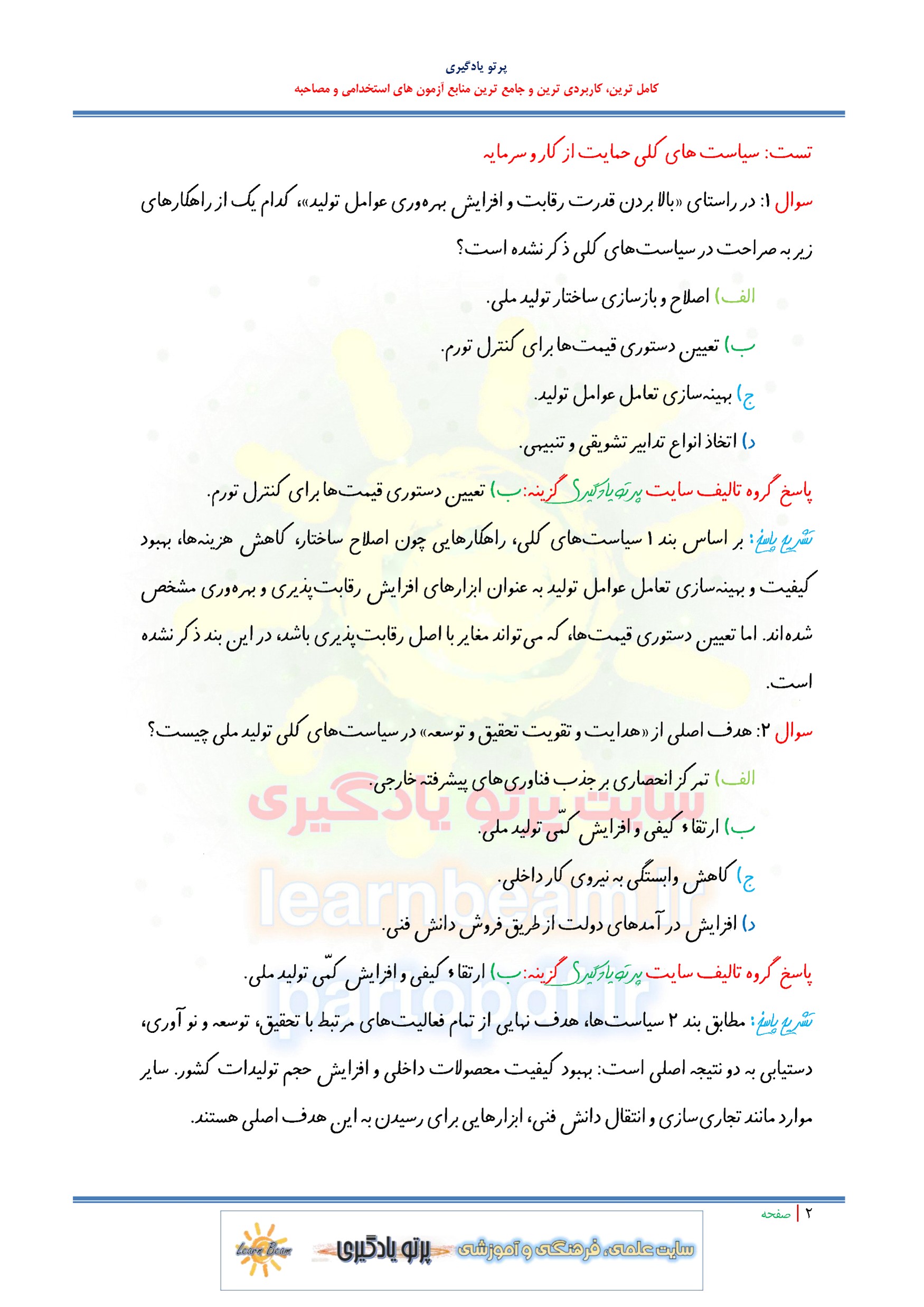 مجموعه سوالات و تست سیاست های کلی حمایت از کار و سرمایه با پاسخ تشریحی