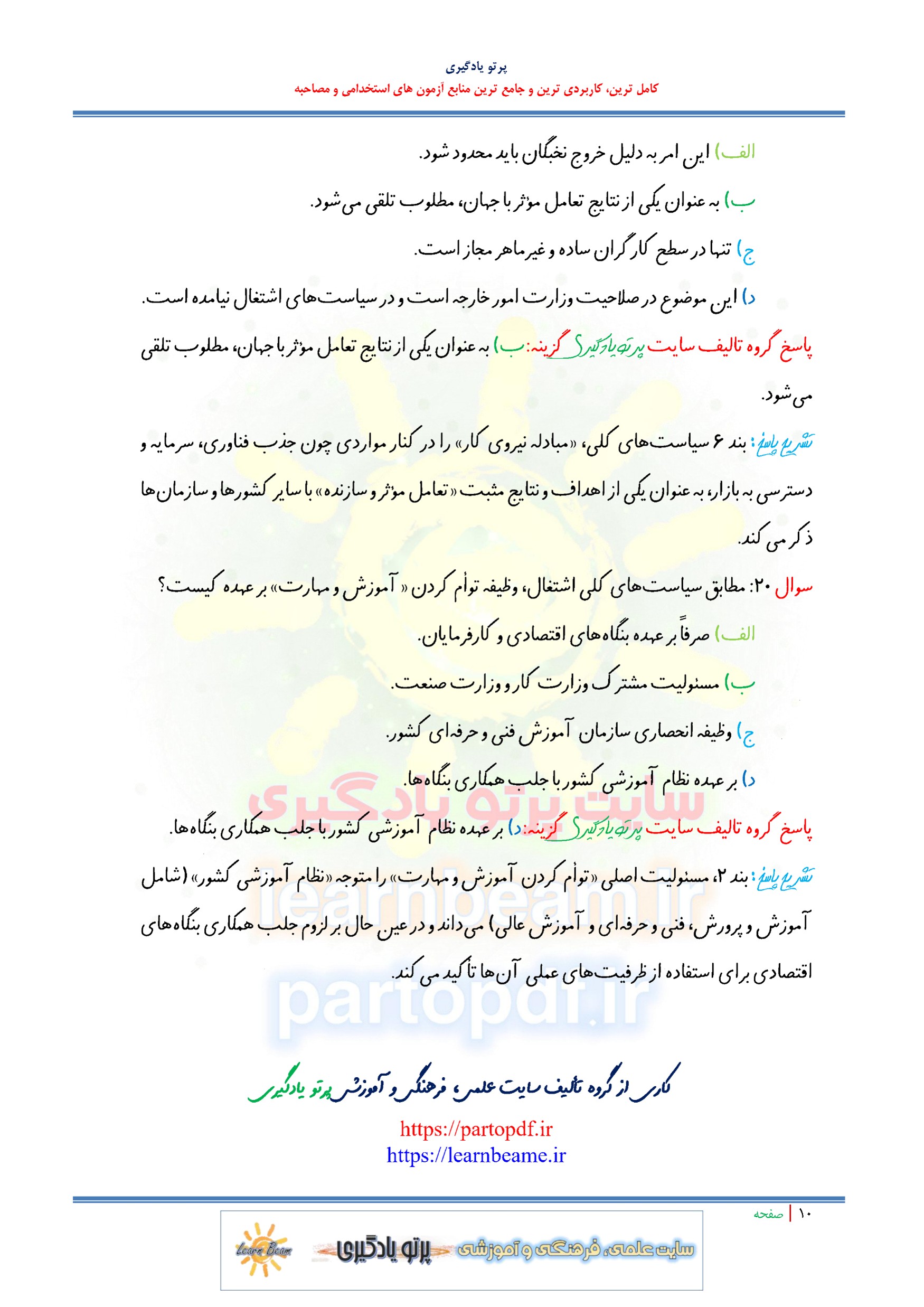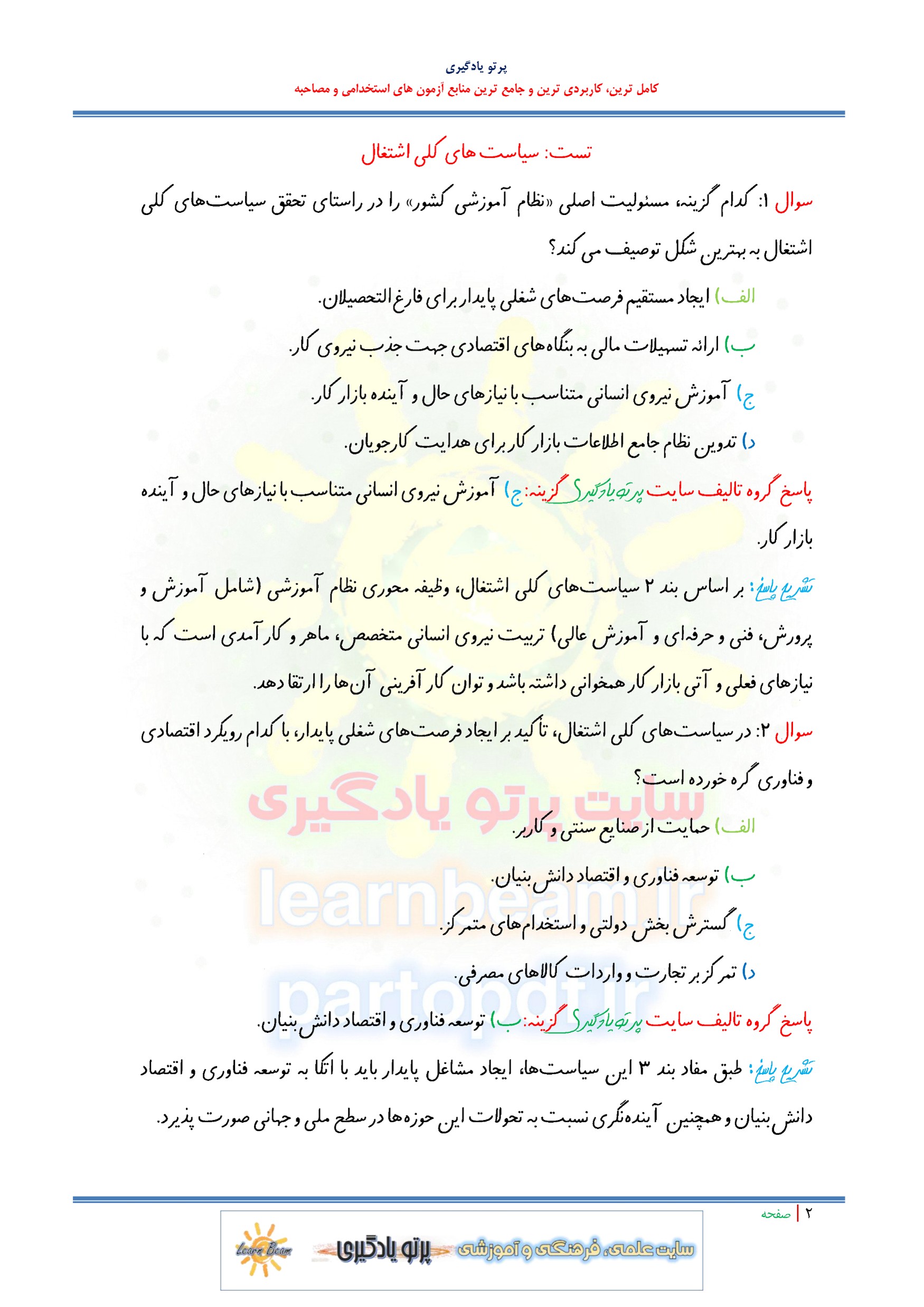 مجموعه سوالات و تست سیاست های کلی اشتغال با پاسخ تشریحی