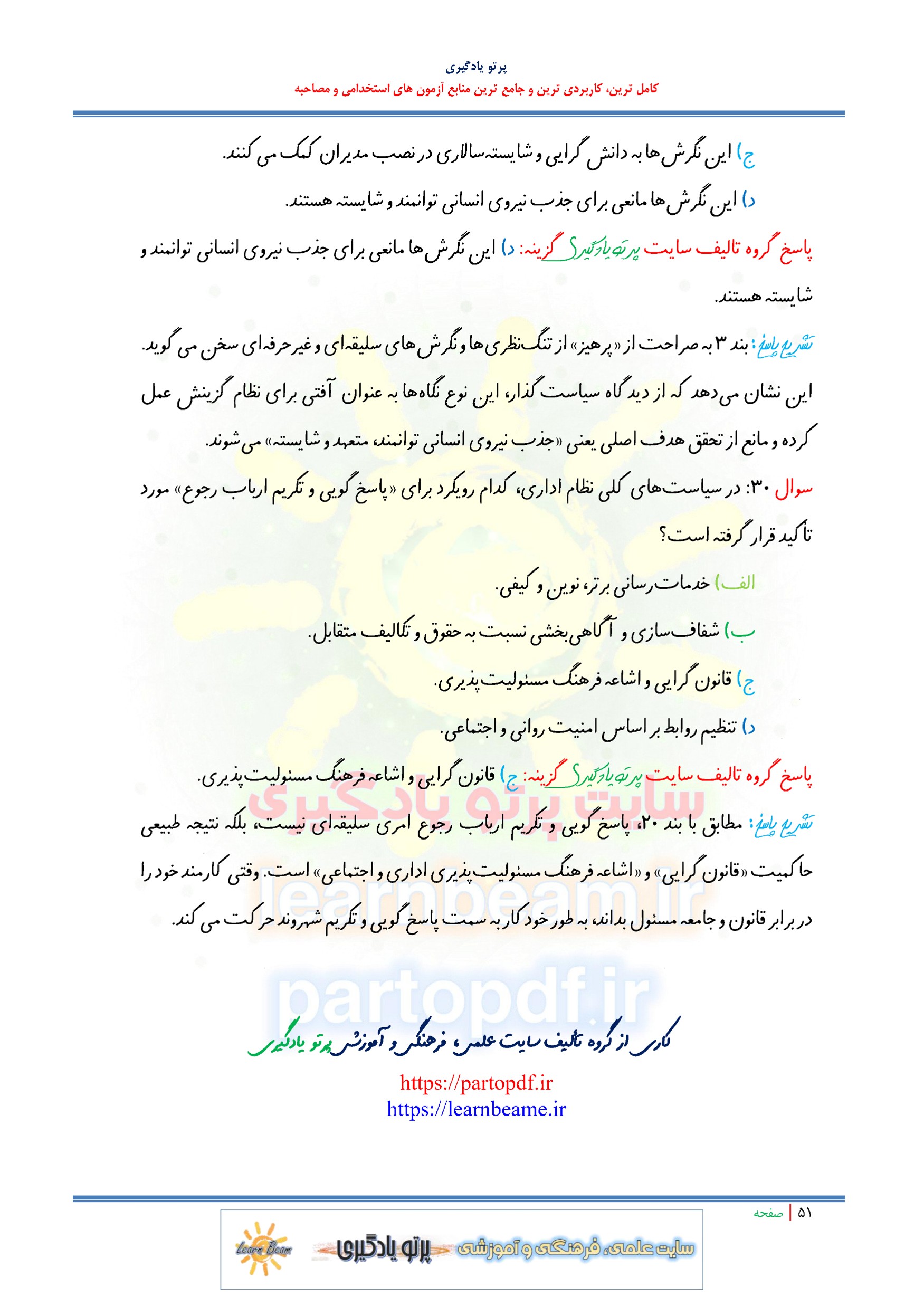 شامل 5 مجمعه تست - 1. سیاست های کلی نظام اداری (30 تست)