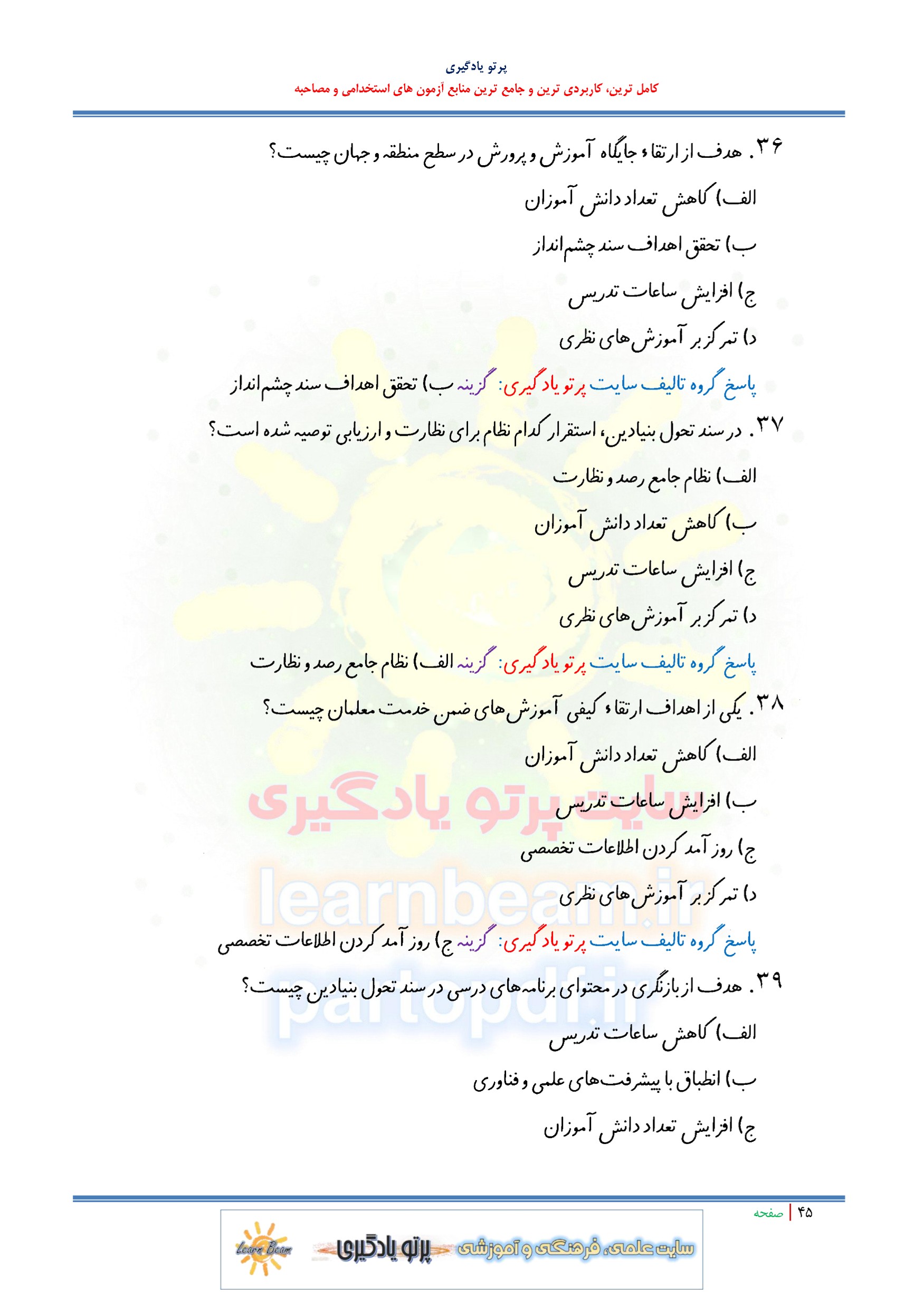 - 4. سیاست های کلی ایجاد تحول در نظام آموزش و پرورش (90 تست)