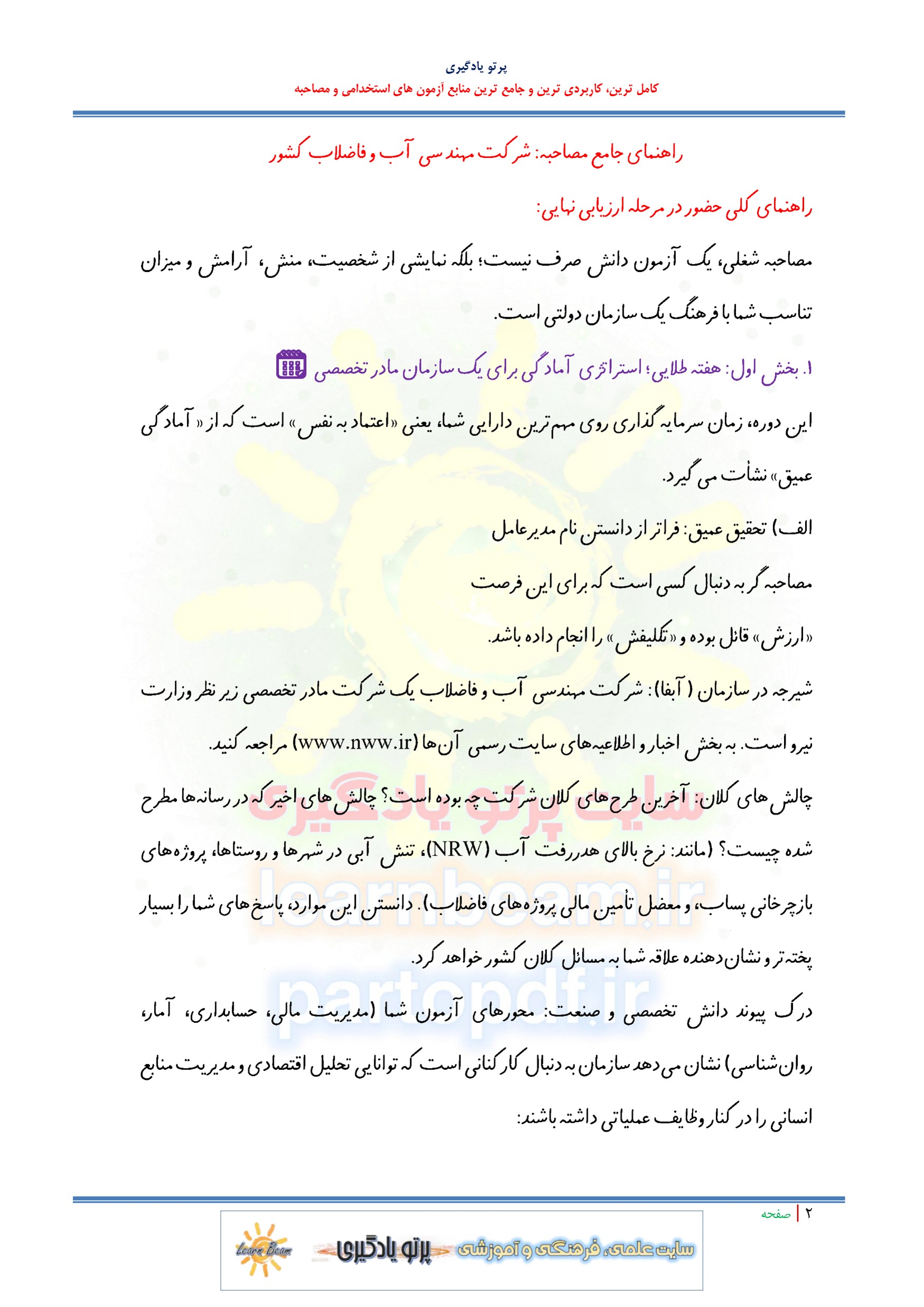 مجموعه سوالات آمادگی برای مصاحبه مشاغل شرکت آب و فاضلاب کشور