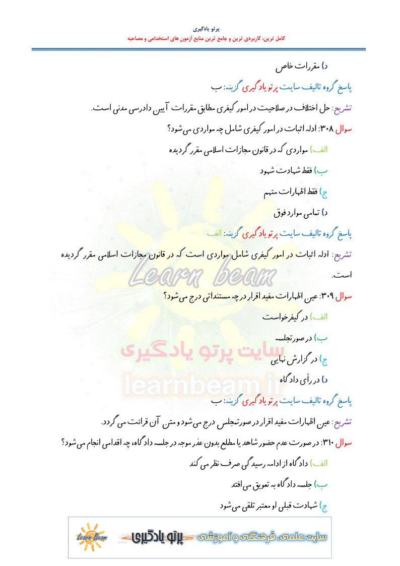 - تست آیین دادرسی کیفری و مدنی: کیفری: (610 تست در 241 صفحه) مدنی (150 تست در 32 صفحه)