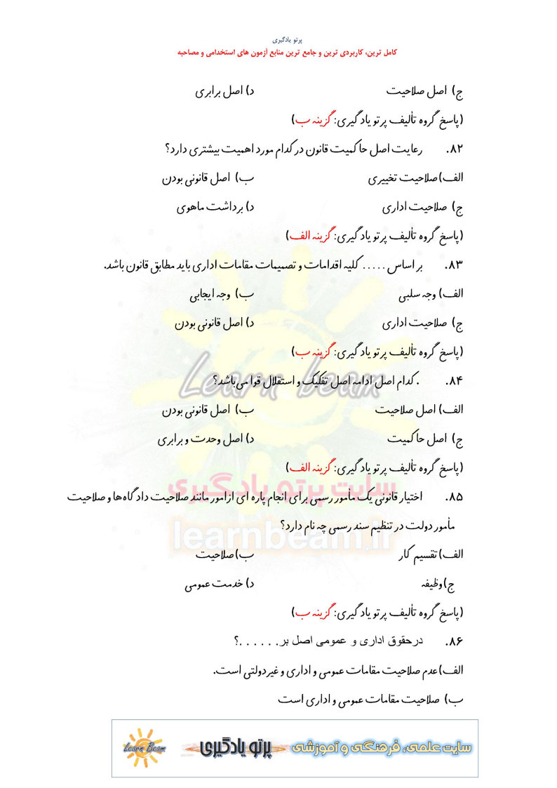 - تست حقوق عمومی (حقوق اساسی و حقوق اداری): اساسی: (150 تست در 27 صفحه) اداری: (220 تست در 51 صفحه)