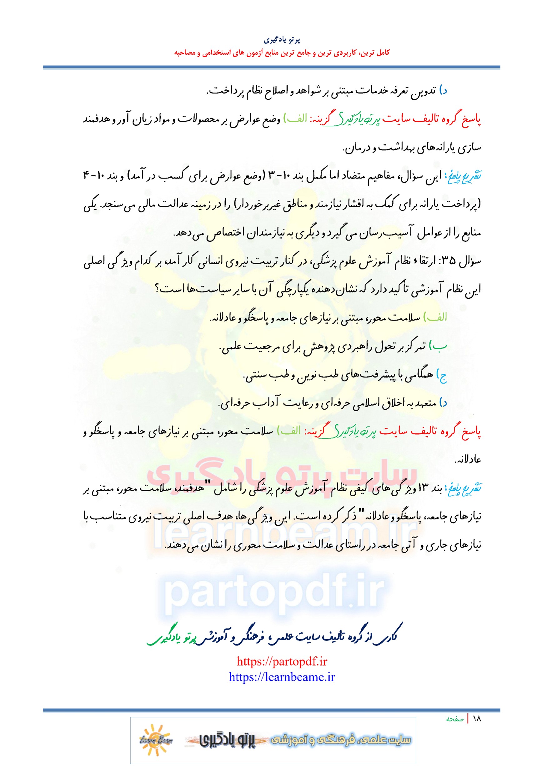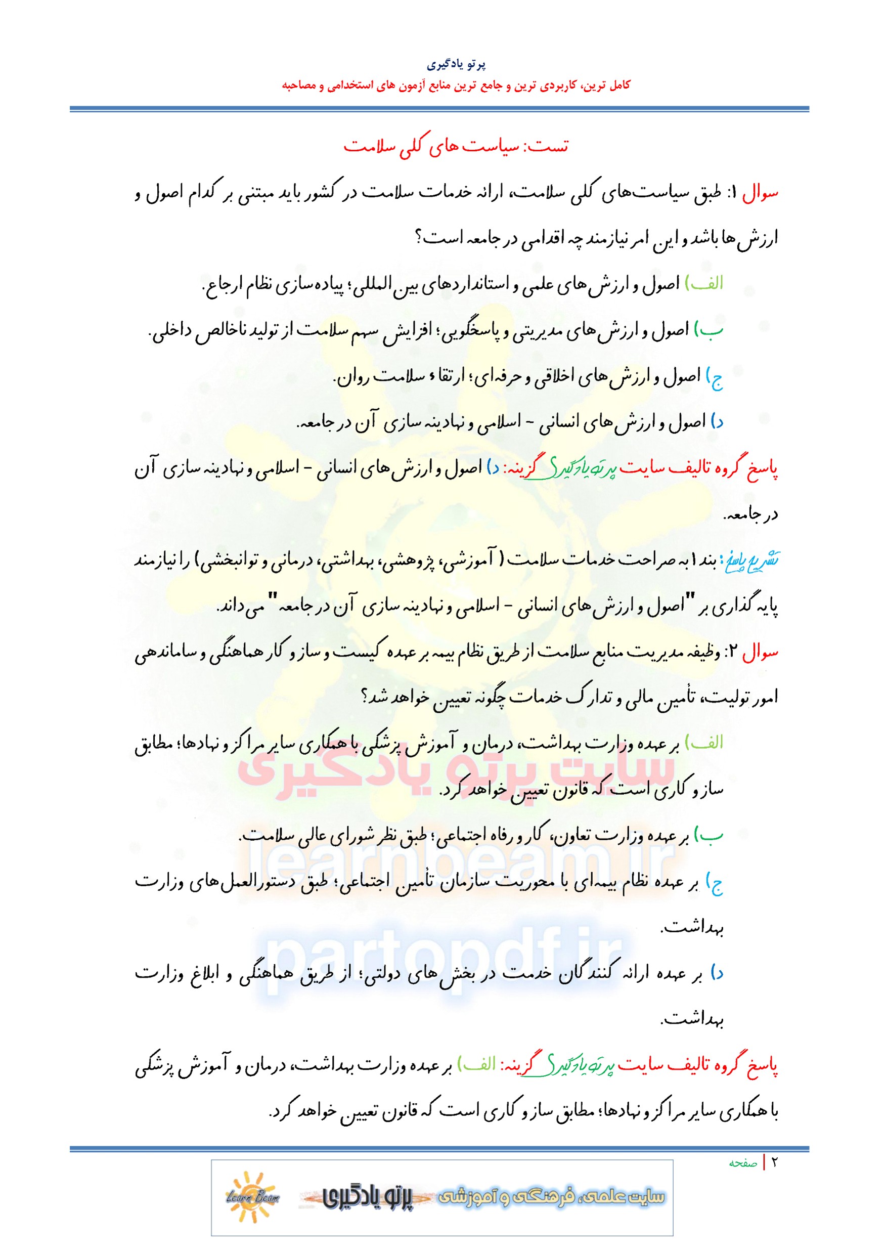 مجموعه سوالات و تست سیاست های کلی سلامت با پاسخ تشریحی