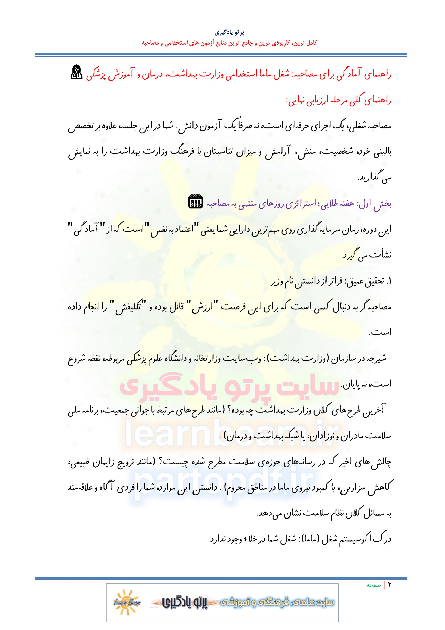 جزوه سوالات مصاحبه استخدامی ماما استخدامی وزارت بهداشت درمان و آموزش پزشکی