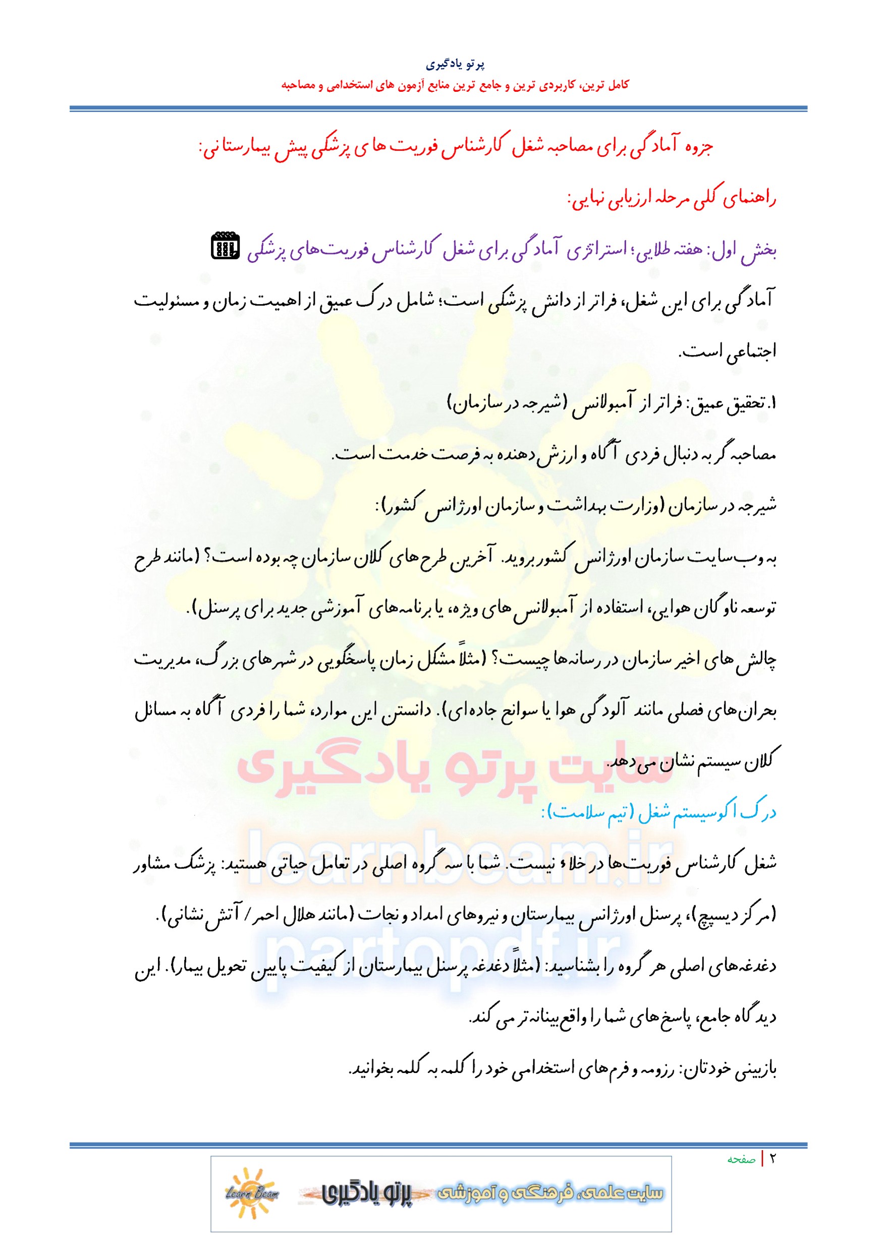 جزوه سوالات مصاحبه استخدامی استخدام کارشناس فوریت های پزشکی پیش بیمارستانی وزارت بهداشت درمان و آموزش پزشکی