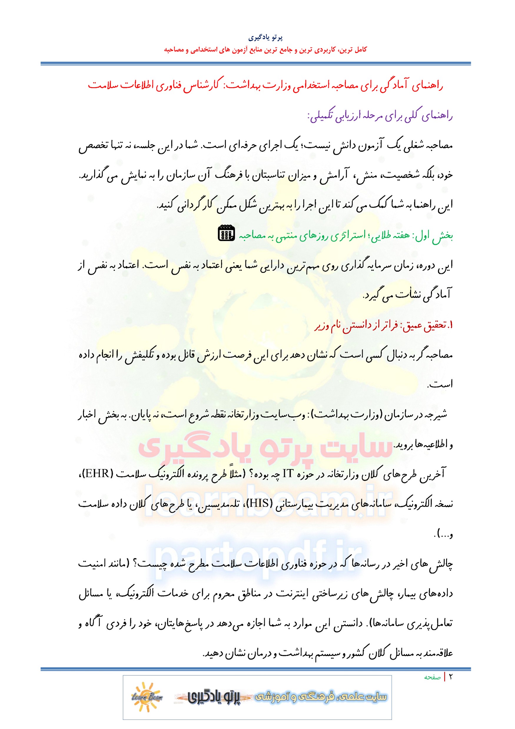 جزوه سوالات مصاحبه استخدامی استخدام کارشناس فناوری اطلاعات سلامت استخدامی وزارت بهداشت درمان و آموزش پزشکی