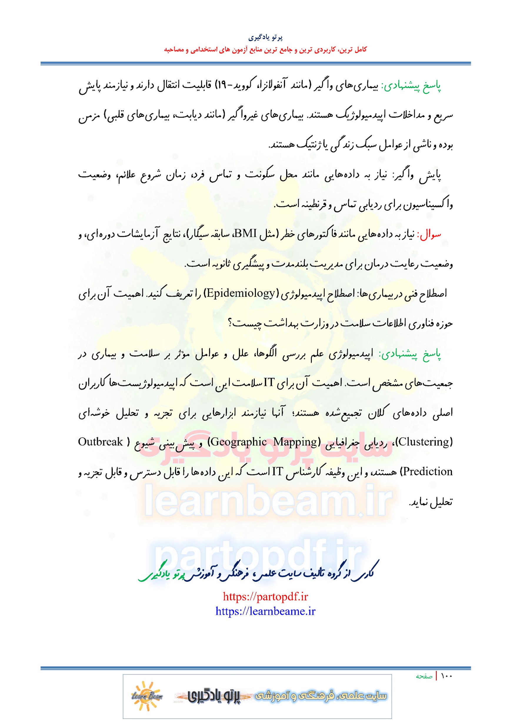 شامل سوال و جواب کاملا کاربردی با پاسخ پیشنهادی در 100 صفحه