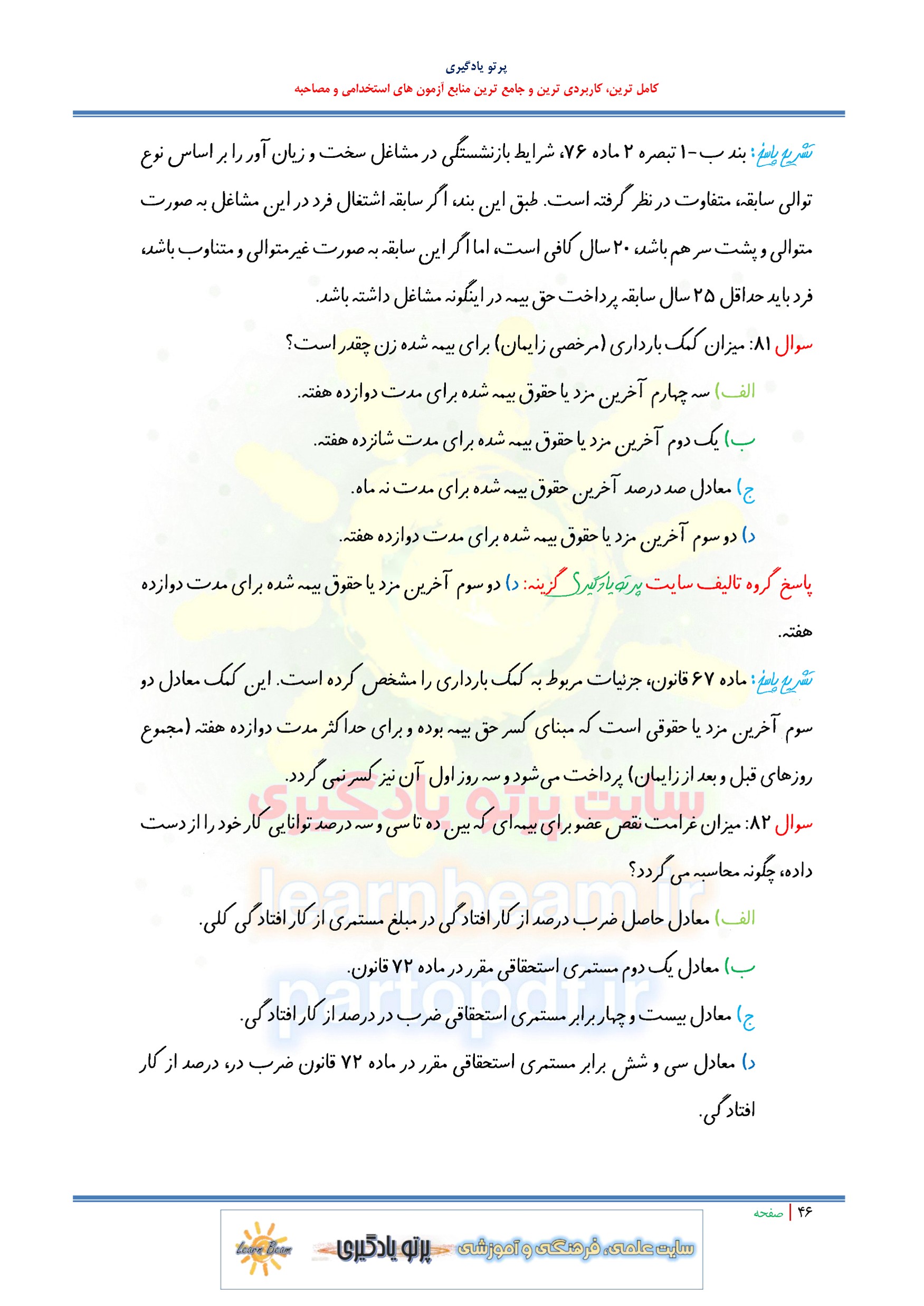 سوالات و تست قانون تامین اجتماعی با اصلاحات و الحاقات بعدی
