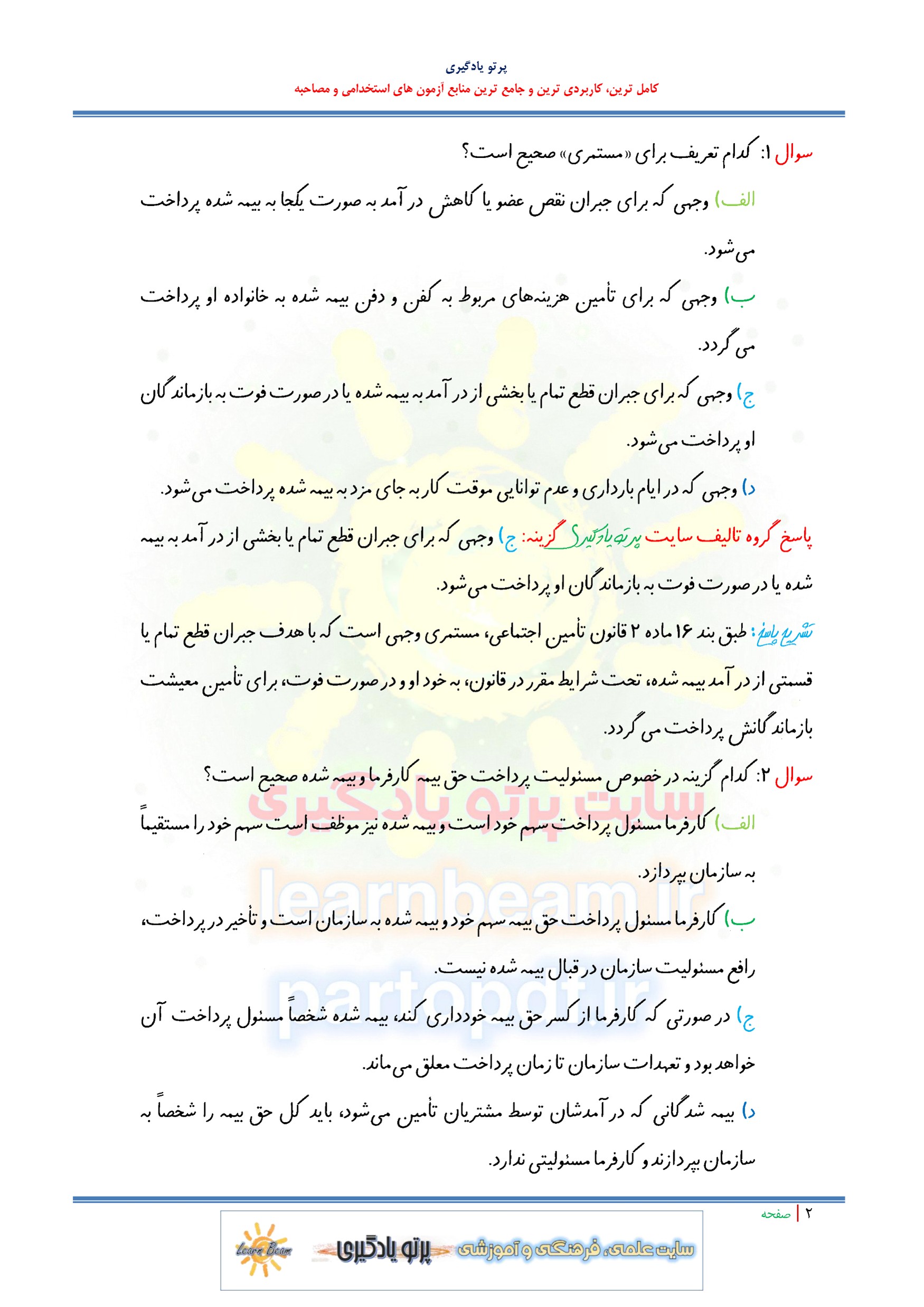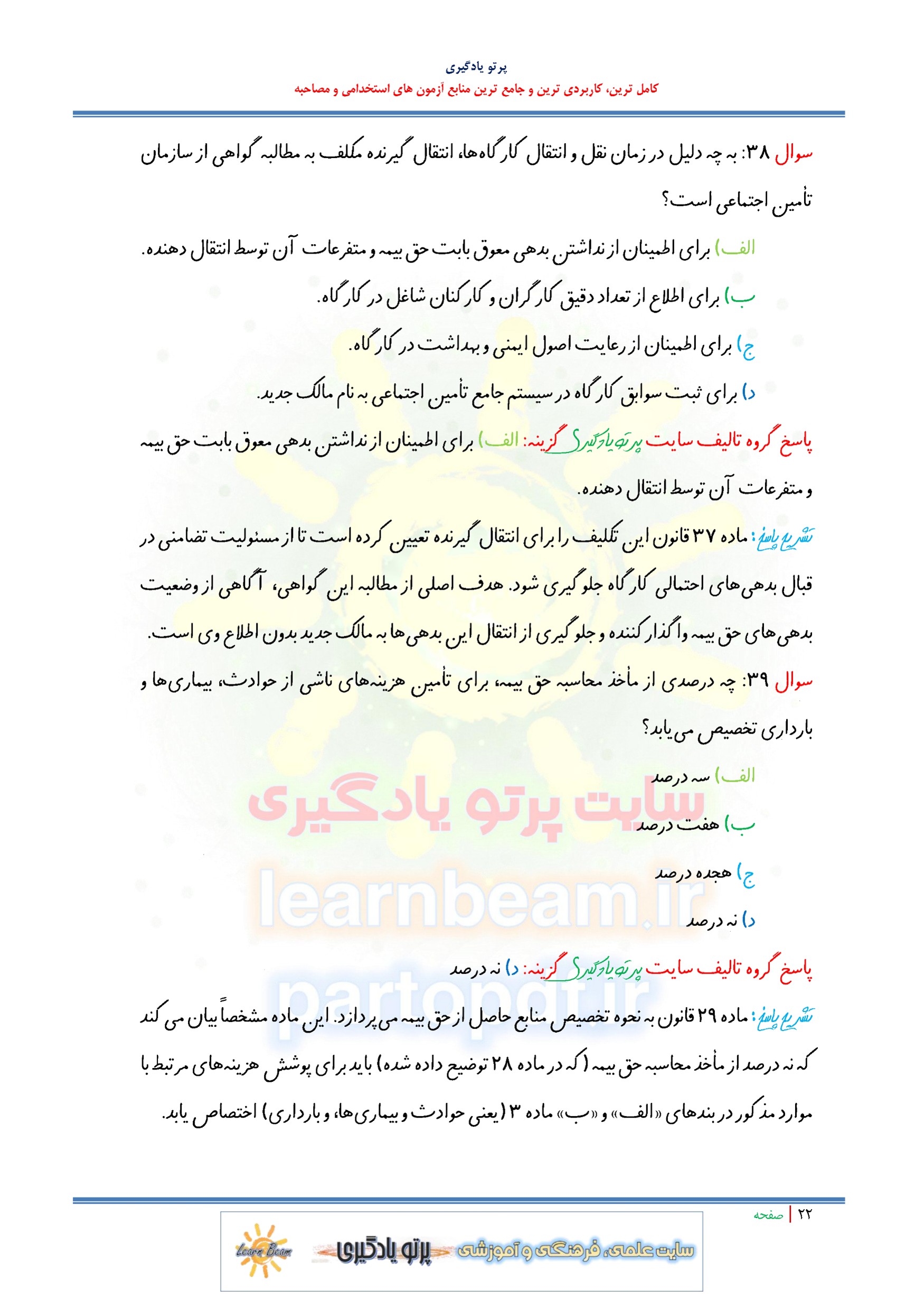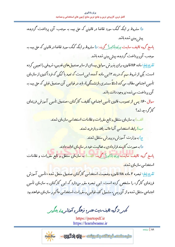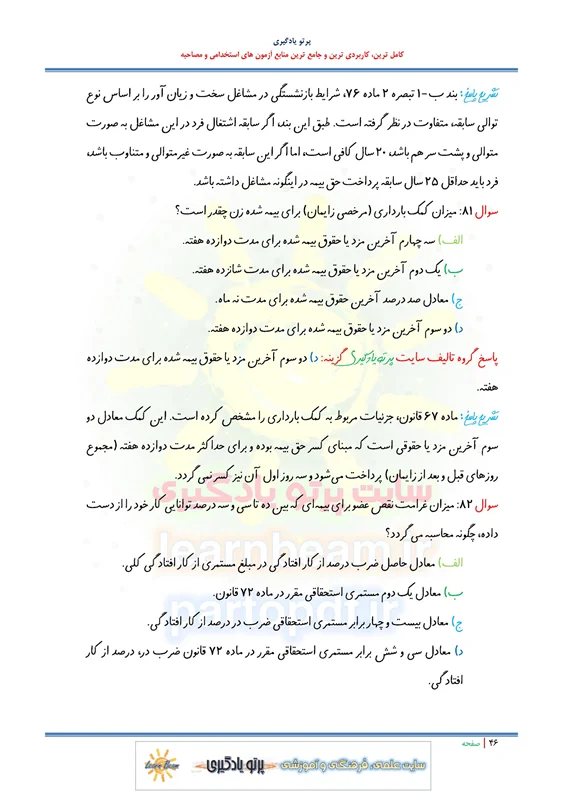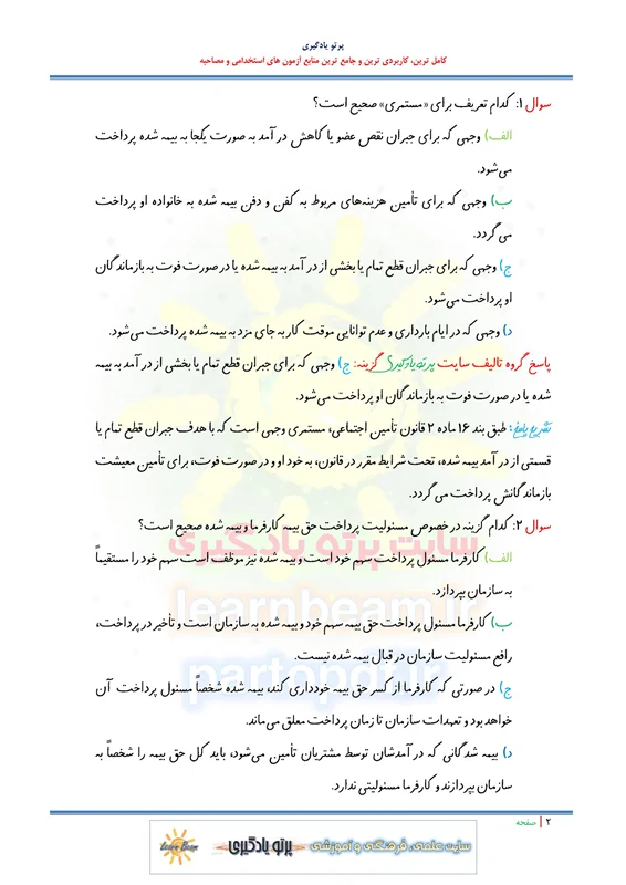 مجموعه سوالات و تست قانون تامین اجتماعی با اصلاحات و الحاقات بعدی با پاسخ تشریحی