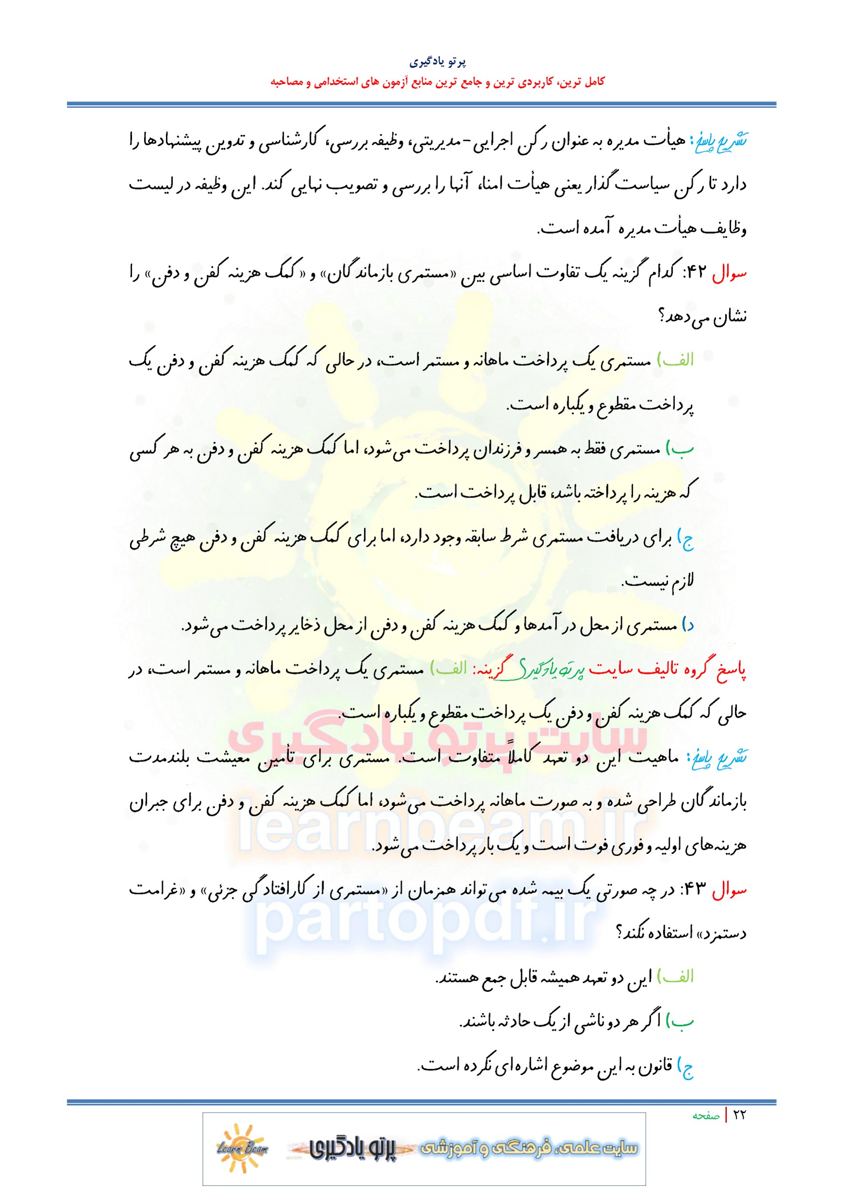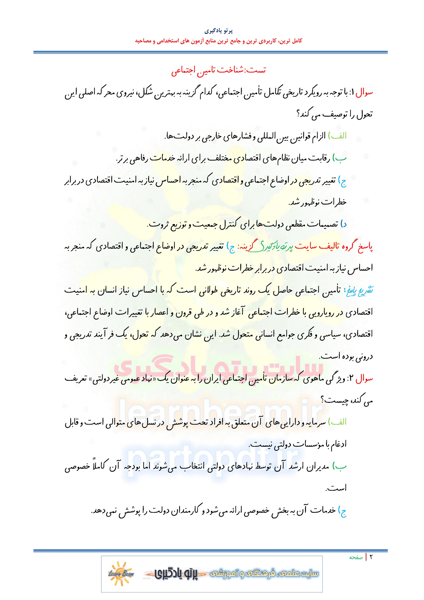 مجموعه سوالات تستی شناخت تامین اجتماعی