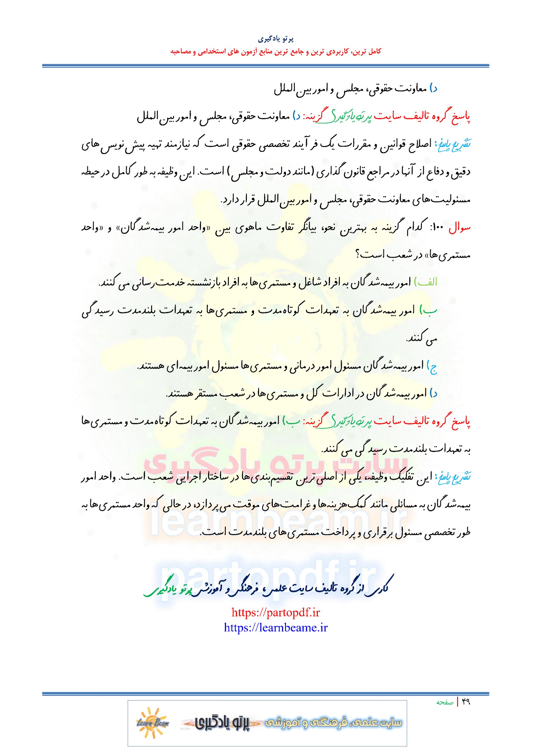 • سوالات و تست شناخت تامین اجتماعی: 100 تست در 49 صفحه در قالب فایل pdf