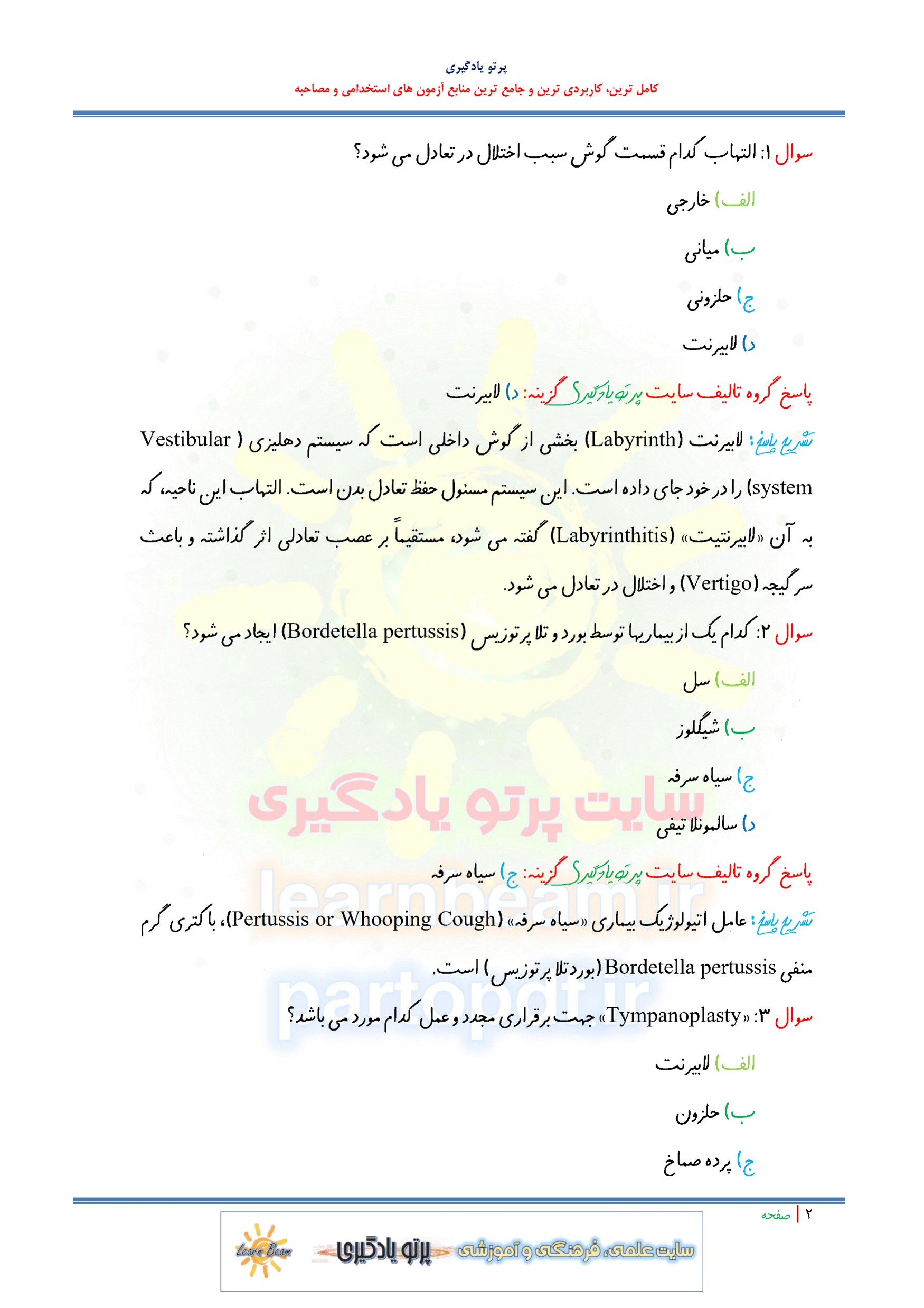 👈 سوالات و تست اصطلاحات پزشکی   👉