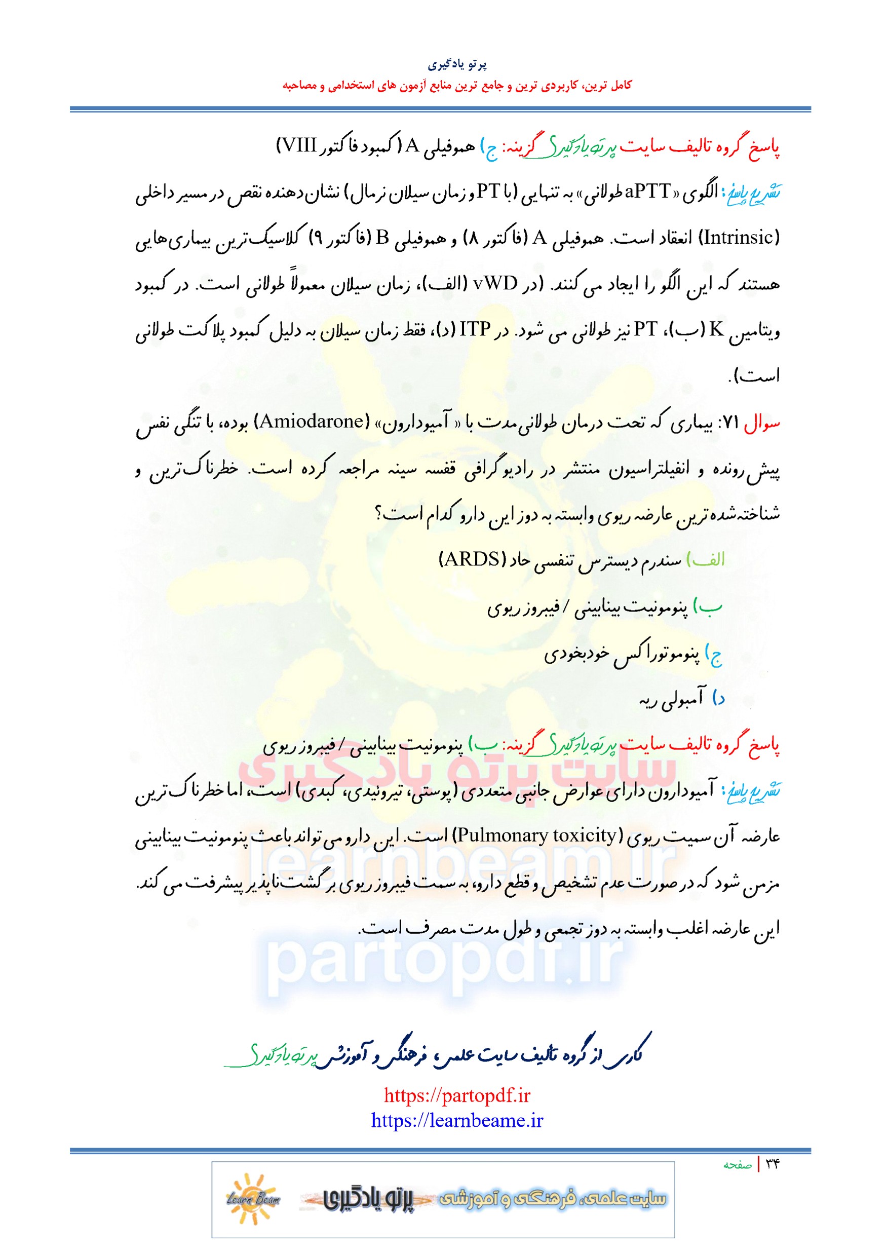 • سوالات و تست کلیات پزشکی: 71 تست در 34 صفحه در قالب فایل pdf