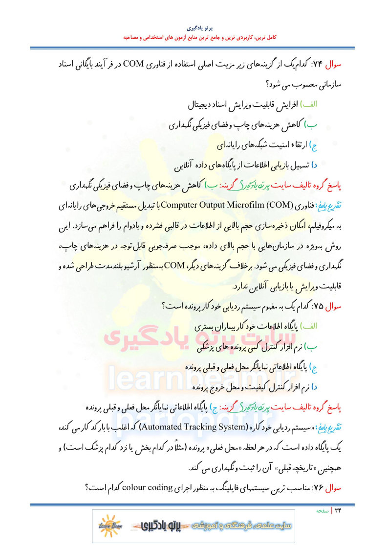 3. تست اصول بایگانی در مدیریت اطلاعات (81 تست در 37 صفحه)