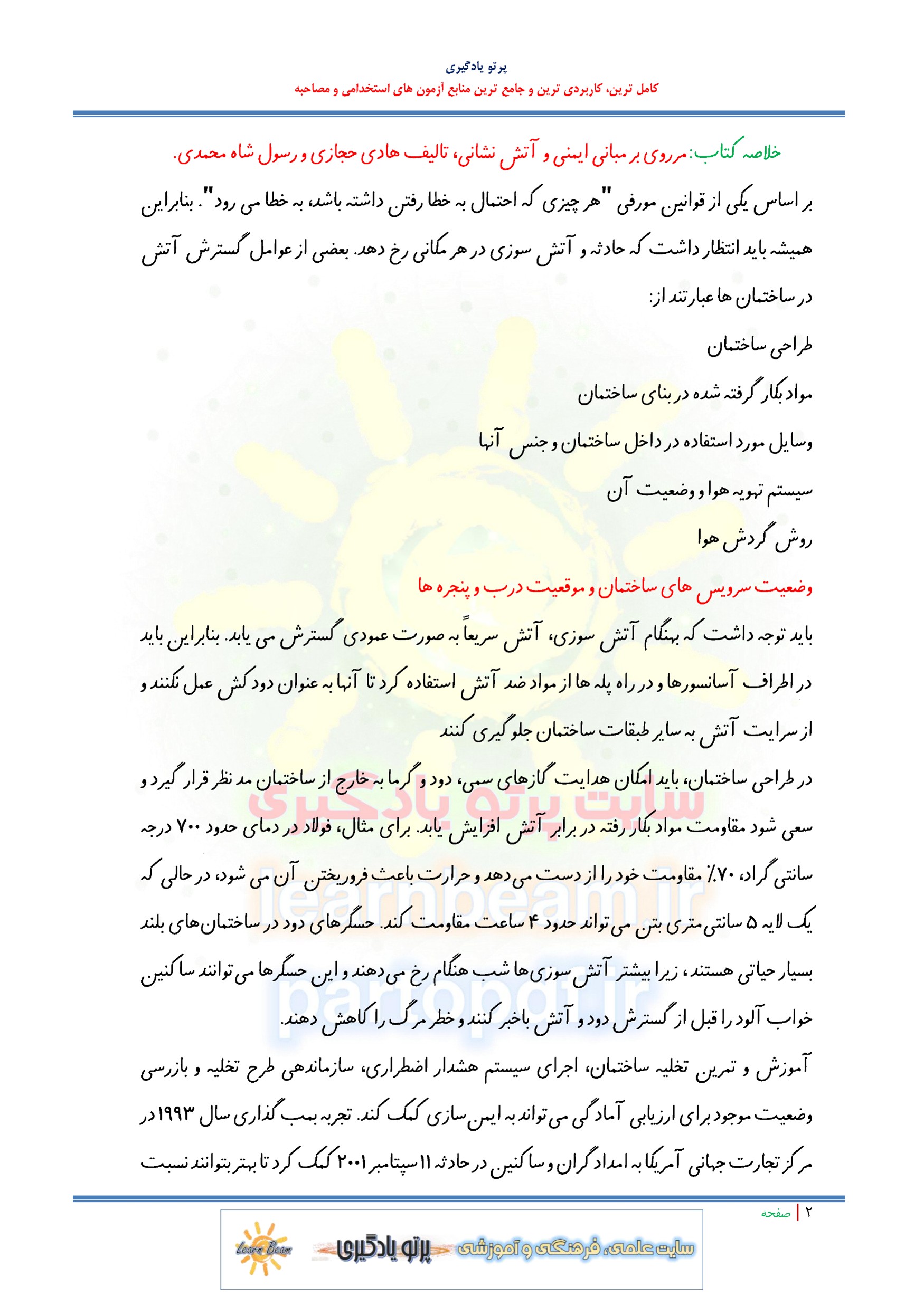 چکیده و خلاصه کتاب مروری بر مبانی ایمنی و آتش نشانی