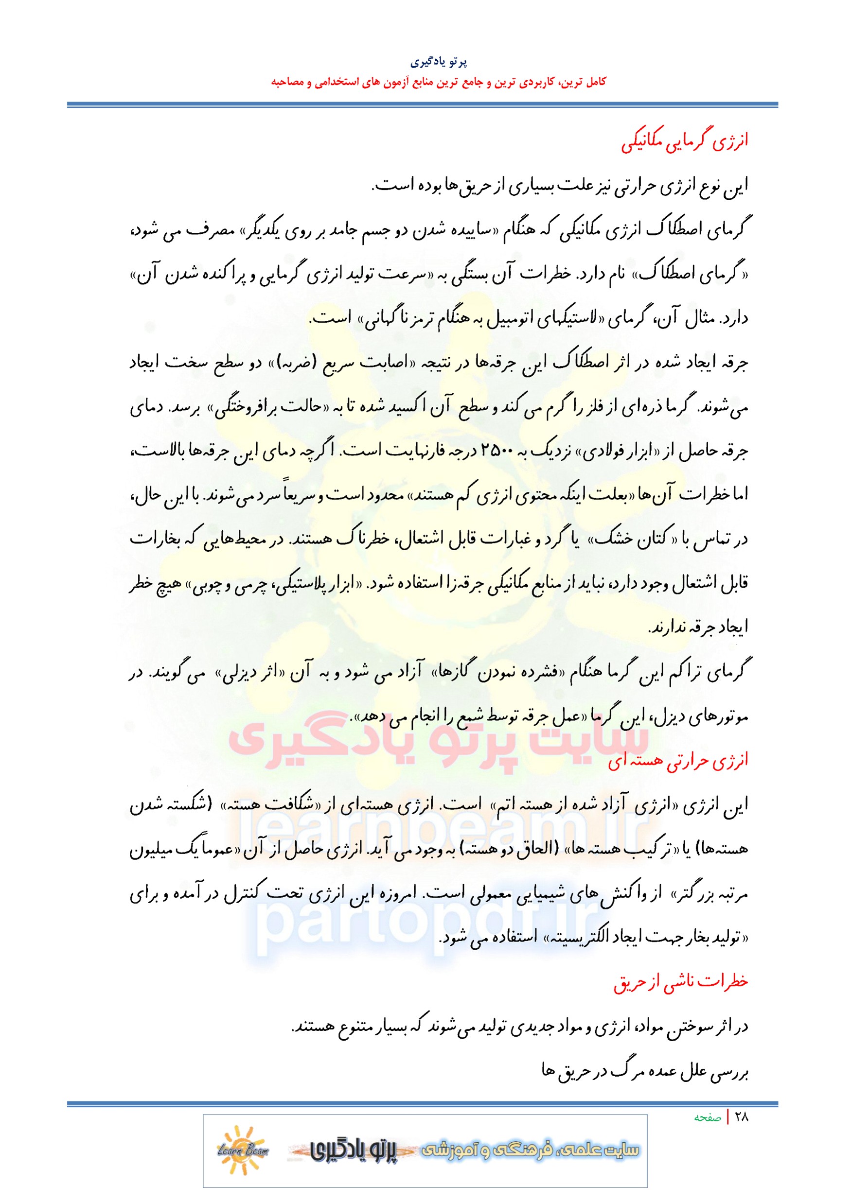 جزوه خلاصه کتاب مروری بر مبانی ایمنی و آتش نشانی تالیف هادی حجازی و رسول شاه محمدی. چکیده کتاب مروری بر مبانی ایمنی و آتش نشانی در 70 صفحه در قالب فایل pdf. مطابق با سرفصل های دفترچه آزمون های استخدامی. مجموعه خلاصه و نکات کلیدی کتاب مروری بر مبانی ایمنی و آتش نشانی بهترین منبع برای آمادگی آزمون های استخدامی می باشد. جزوه خلاصه و نکات کلیدی کتاب مروری بر مبانی ایمنی و آتش نشانی مطالب خوانده شده داوطلبین آزمون استخدامی را نظم بخشیده و منسجم می سازد. مجموعه خلاصه و نکات طلایی کتاب مروری بر مبانی ایمنی و آتش نشانی ویژه آزمون های استخدامی مرور سریع داوطلب را سبب می شود و آگاهی های وی را نظم بخشیده و یک آمادگی و شبیه سازی را برای جلسه آزمون به همراه دارد. مطالعه پک خلاصه کتاب مروری بر مبانی ایمنی و آتش نشانی برای داوطلبین آزمون های استخدامی پیشنهاد می شود.