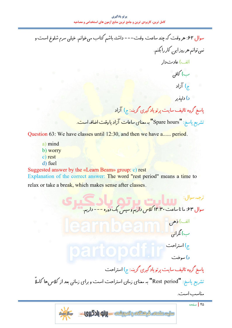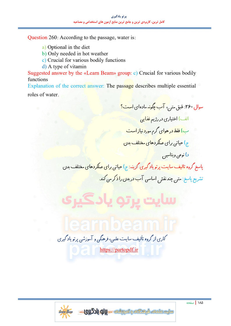 4. تست زبان انگلیسی (260 تست در 185 صفحه با ترجمه تک تک سوالات به فارسی و تشریح پاسخ)