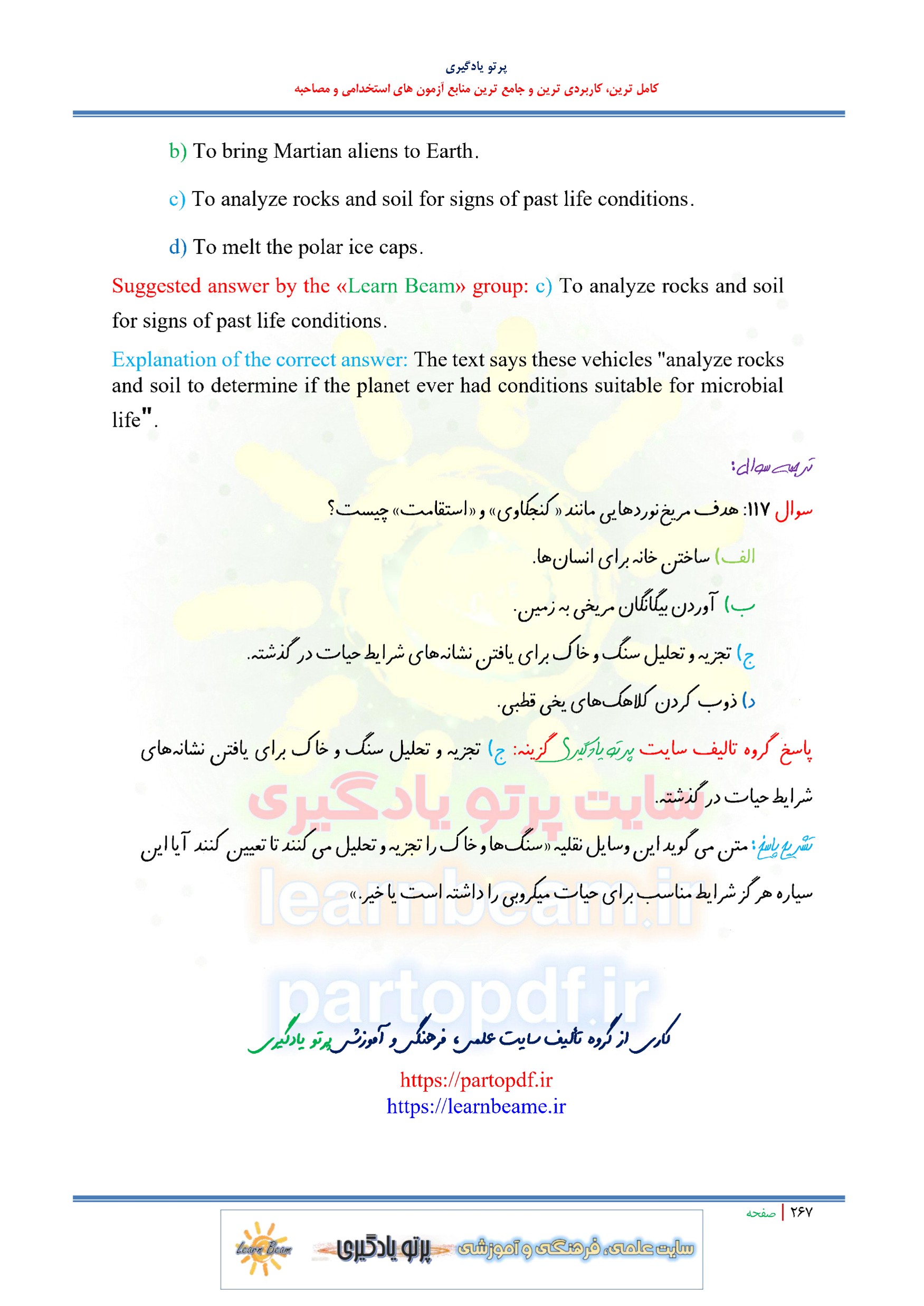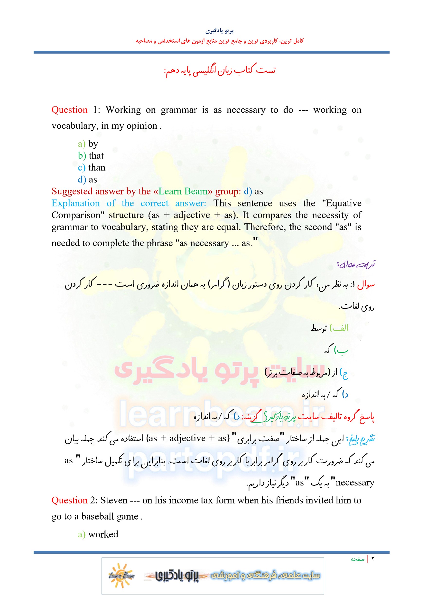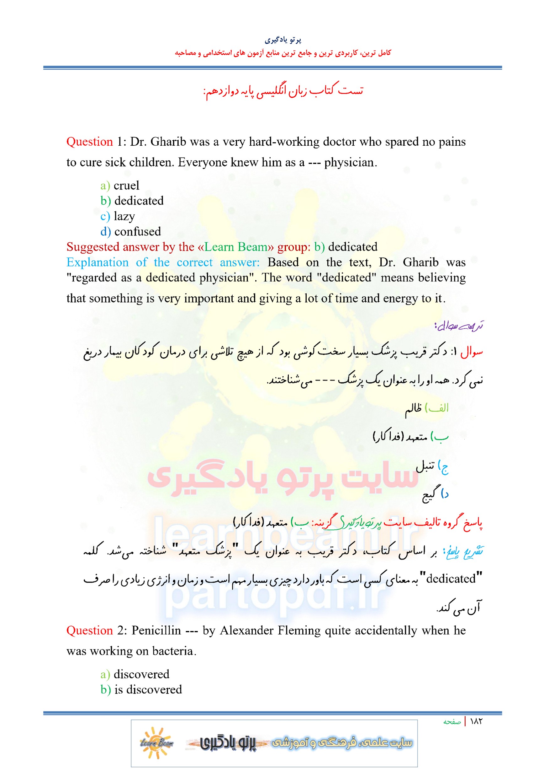 مجموعه سوالات و تست کتب زبان انگلیسی دوره دوم متوسطه با پاسخ تشریحی و ترجمه کامل فارسی