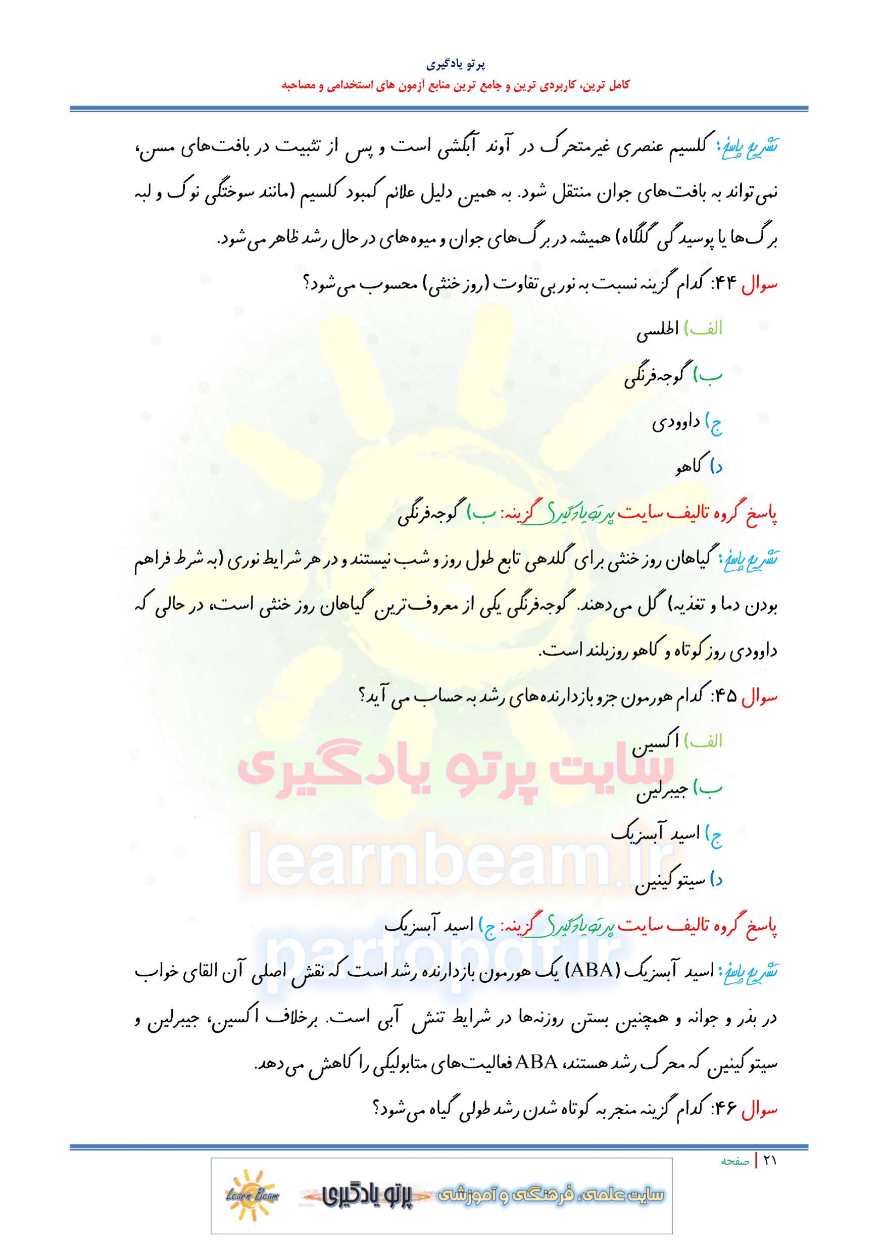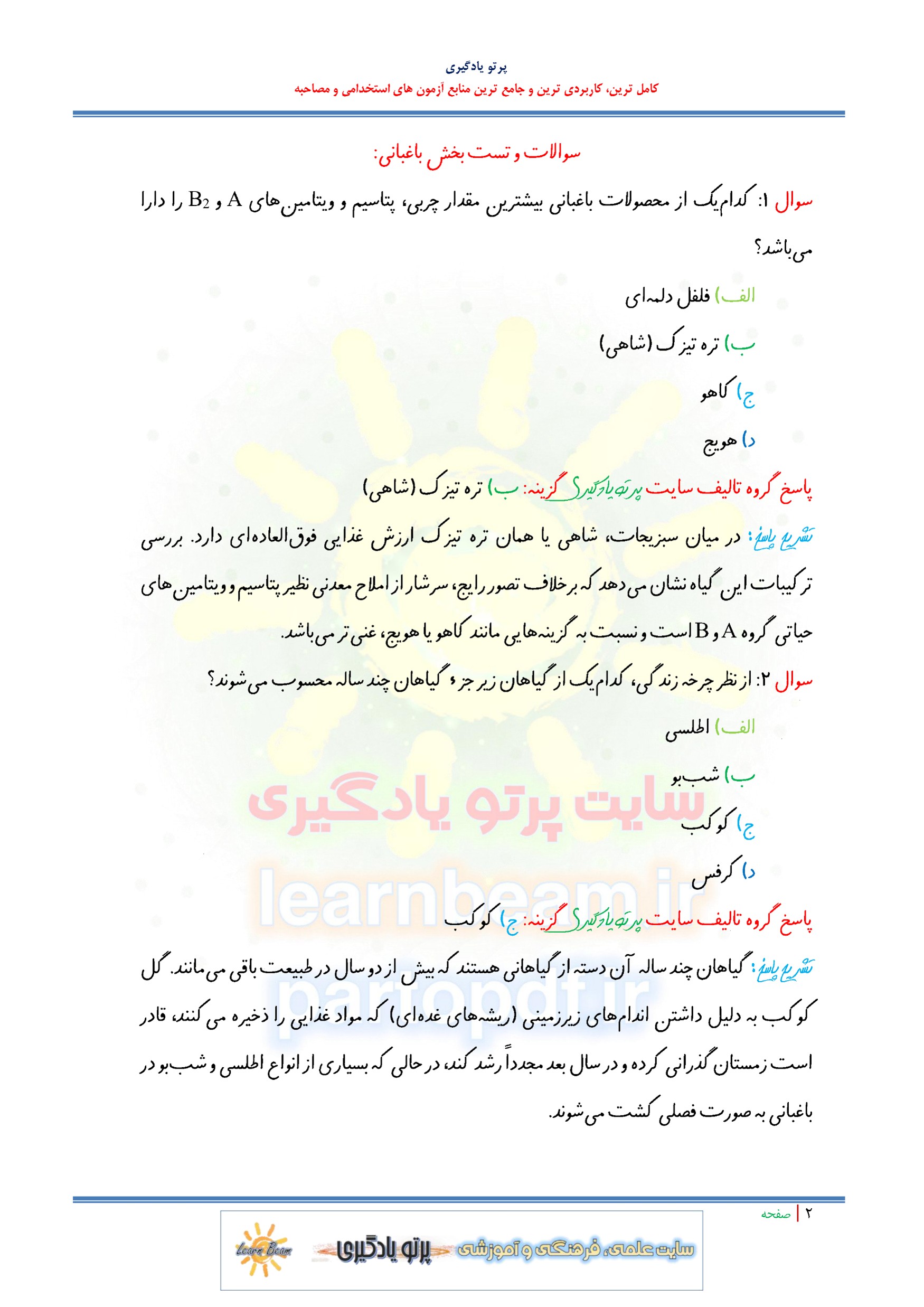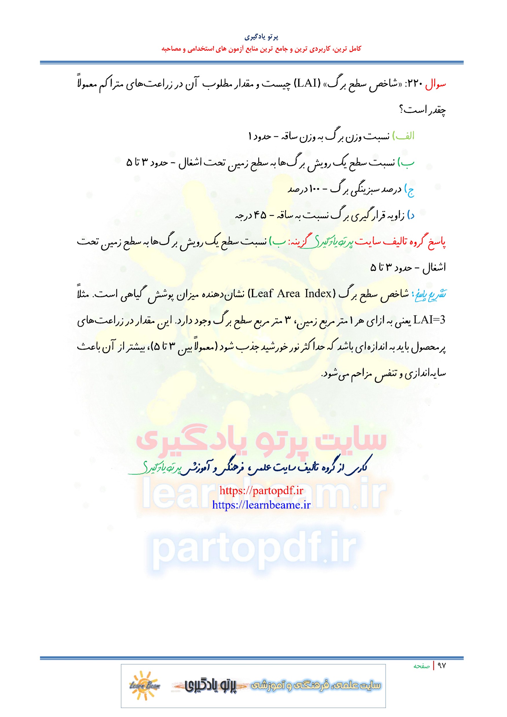 مجموعه سوالات و تست زراعت و باغبانی با پاسخ تشریحی