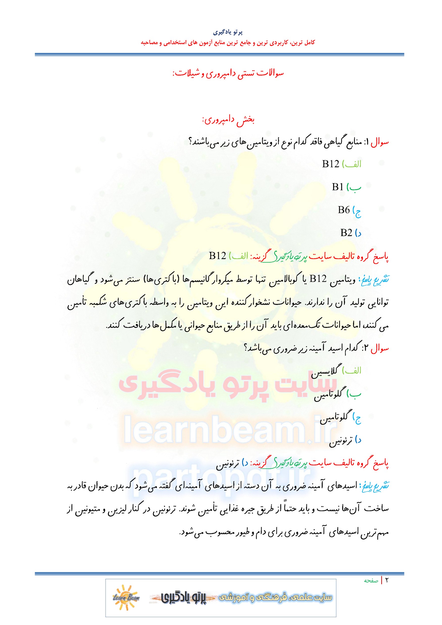 مجموعه سوالات و تست دامپروری و شیلات با پاسخ تشریحی