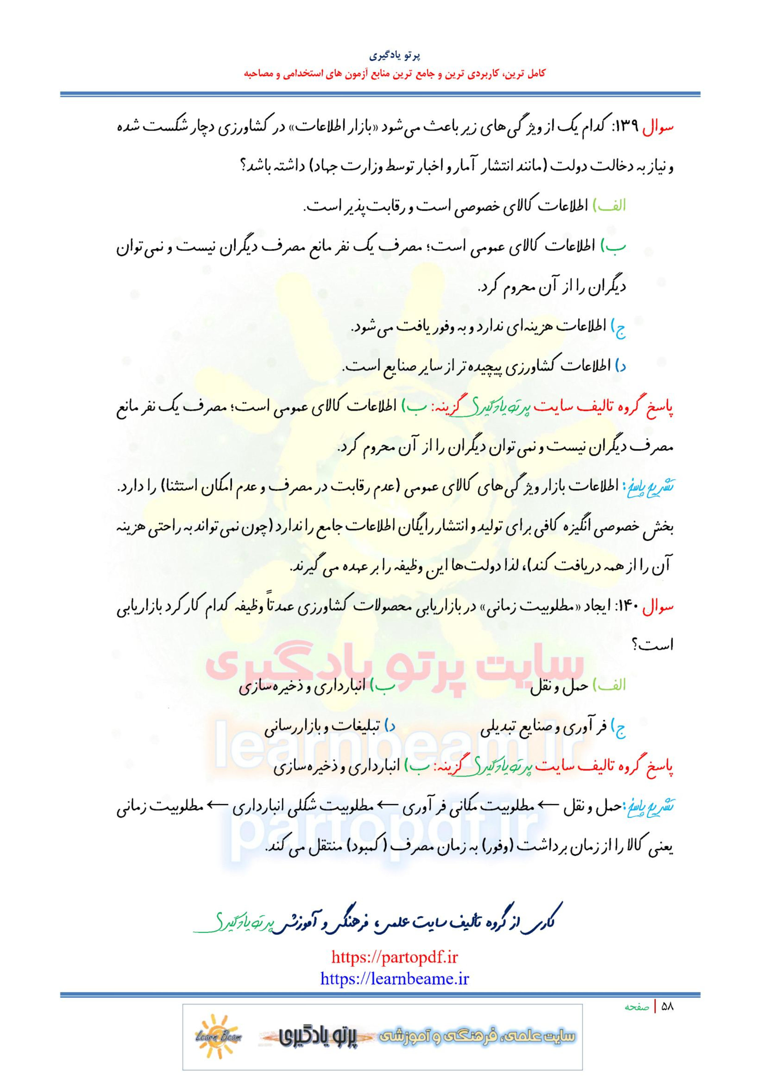 - تست بازاریابی کشاورزی (140 تست در 58 صفحه) با پاسخ تشریحی