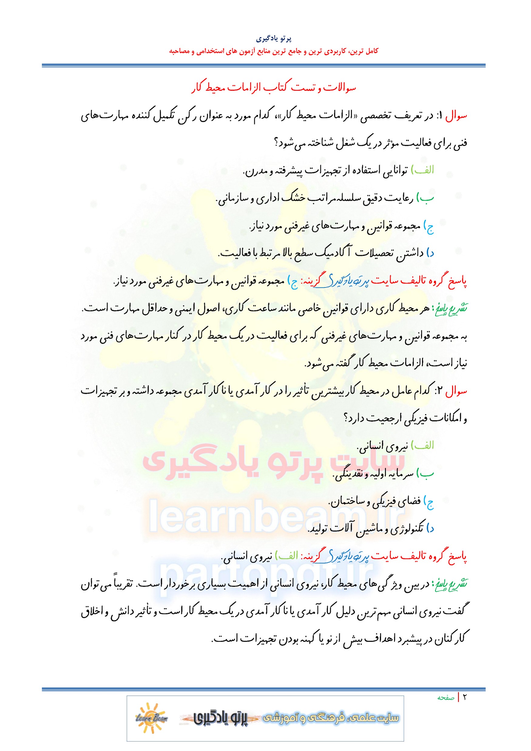 سوالات و تست کتاب الزامات محیط کار
