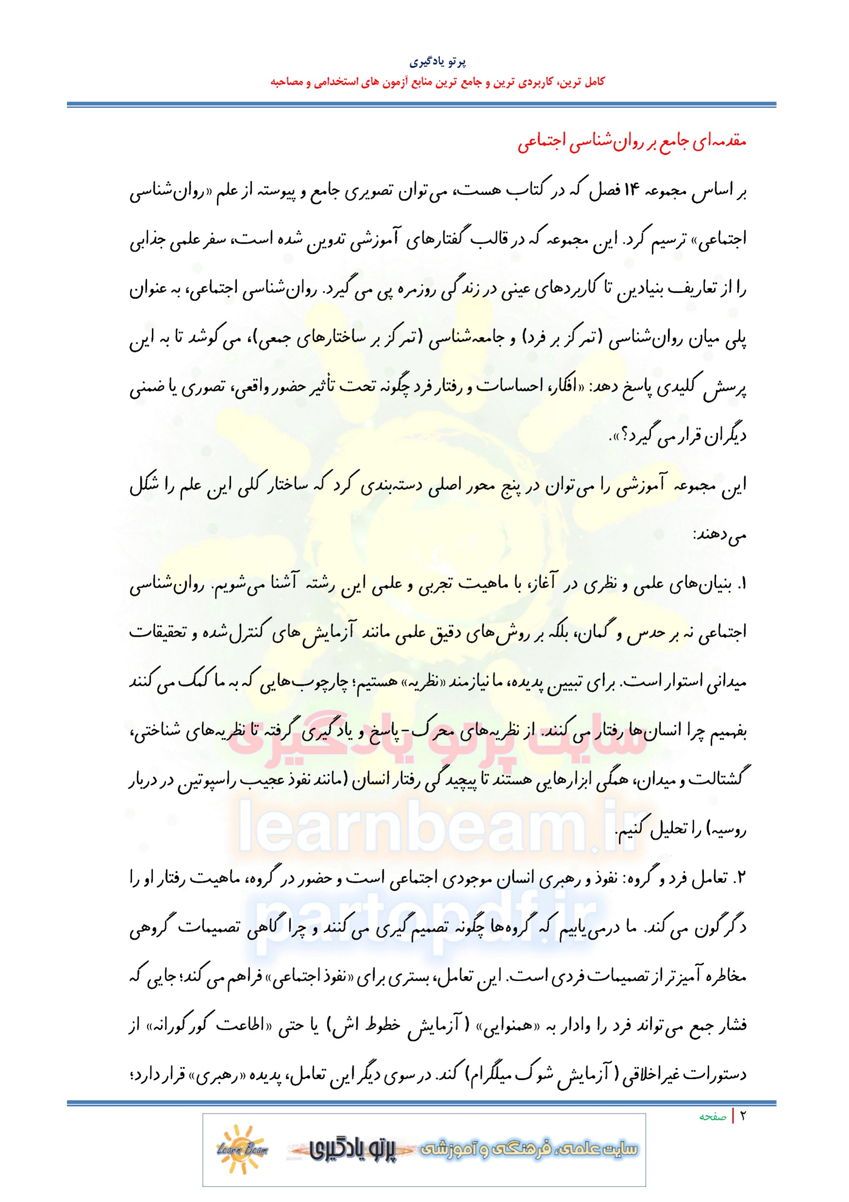جزوه خلاصه و چکیده کتاب روانشناسی اجتماعی در 78 صفحه در قالب فایل pdf. جزوه خلاصه کتاب روانشناسی اجتماعی / نکات طلایی کتاب روانشناسی اجتماعی / چکیده کتاب روانشناسی اجتماعی مجموعه ای کامل برای مطالعه و موفقیت در آزمون های استخدامی است. جزوه خلاصه و چکیده از نکات کلیدی و طلایی کتاب روانشناسی اجتماعی در قالب فایل پی دی اف می تواند مناسب ترین انتخاب برای داوطلبین عزیز در جهت تحکیم اطلاعات ذهنی و جمع بندی مطالب باشد. جزوه خلاصه کتاب روانشناسی اجتماعی انسجام ذهنی و آمادگی ذهنی فراگیران برای آزمون استخدامی آموزش و پرورش را در پی دارد. این منبع متناسب با سرفصل های اعلامی دفترچه آزمون استخدامی تدوین و تالیف گردیده است.