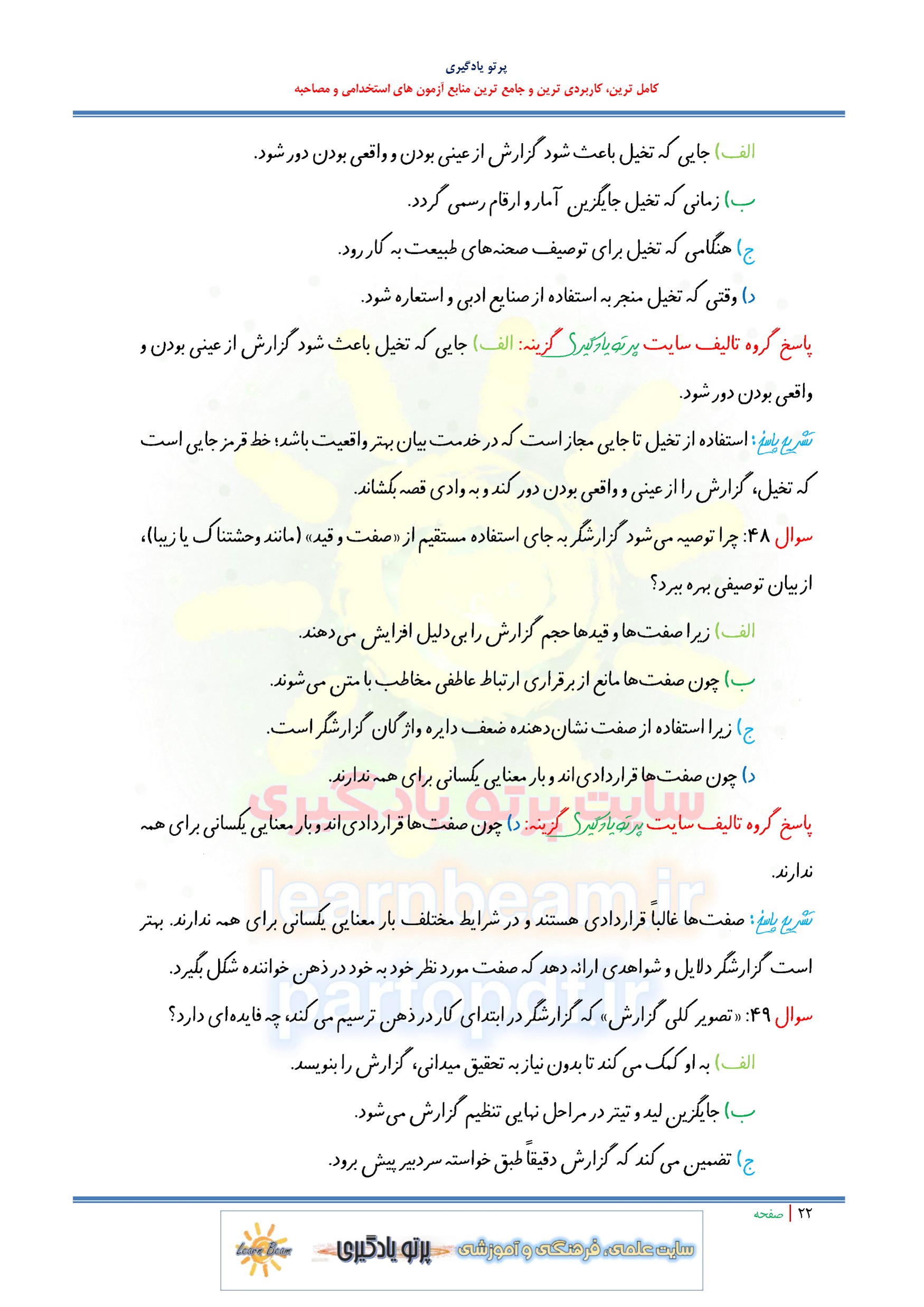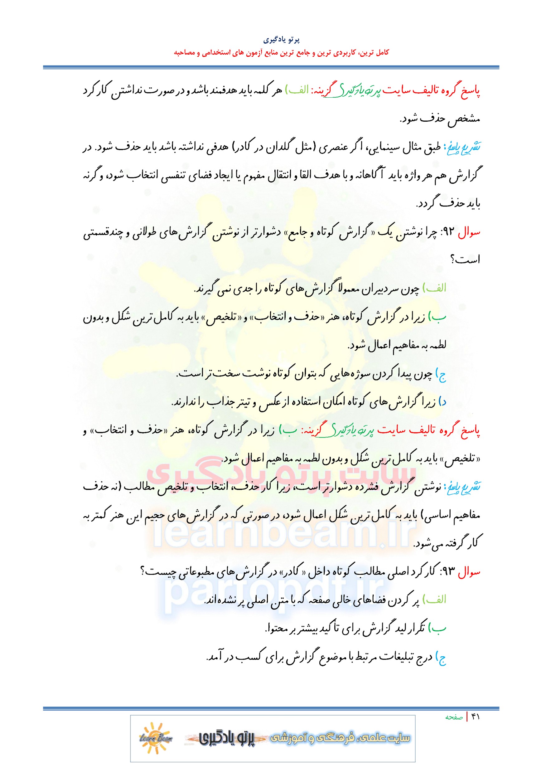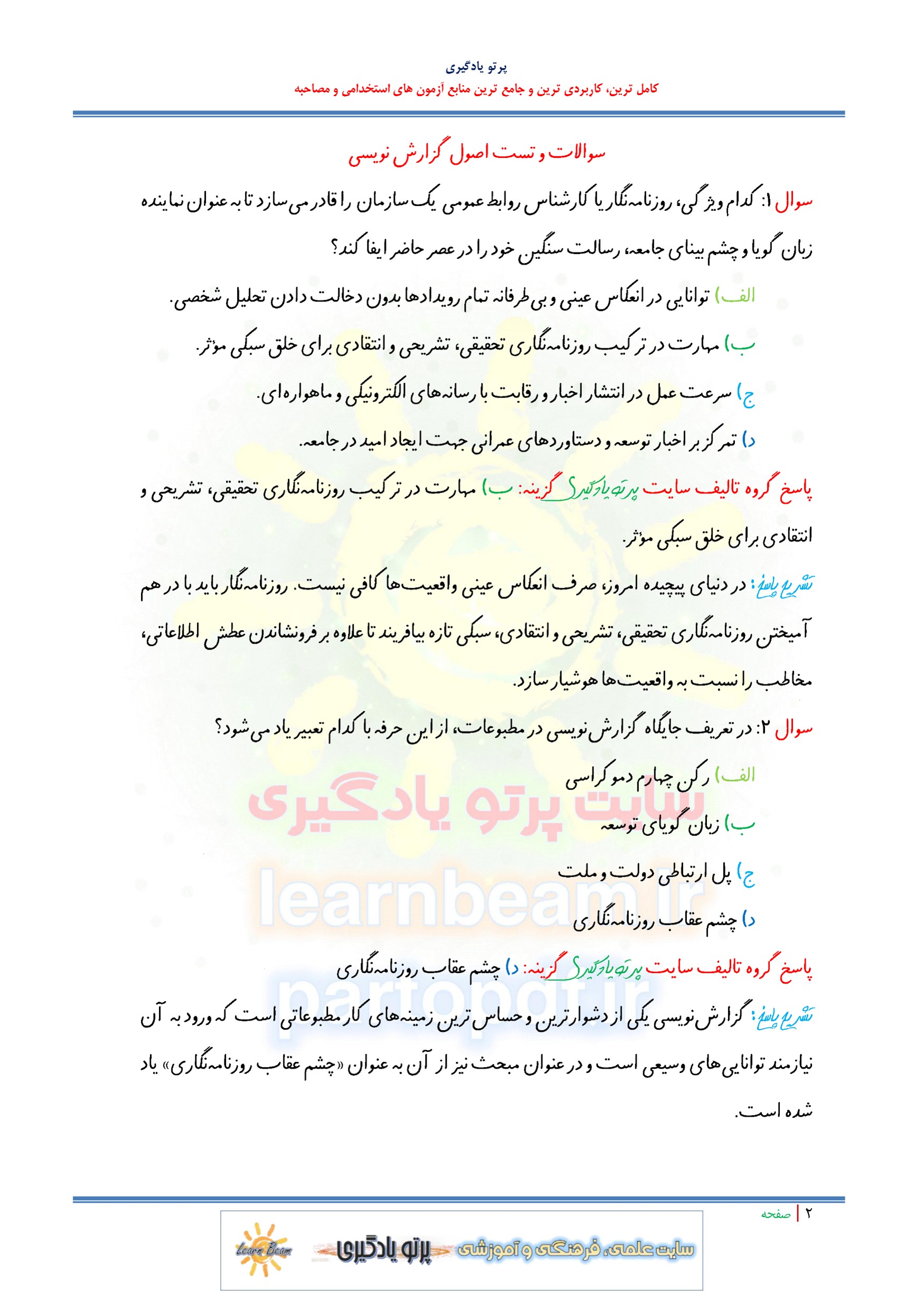 سوالات و تست اصول گزارش نویسی