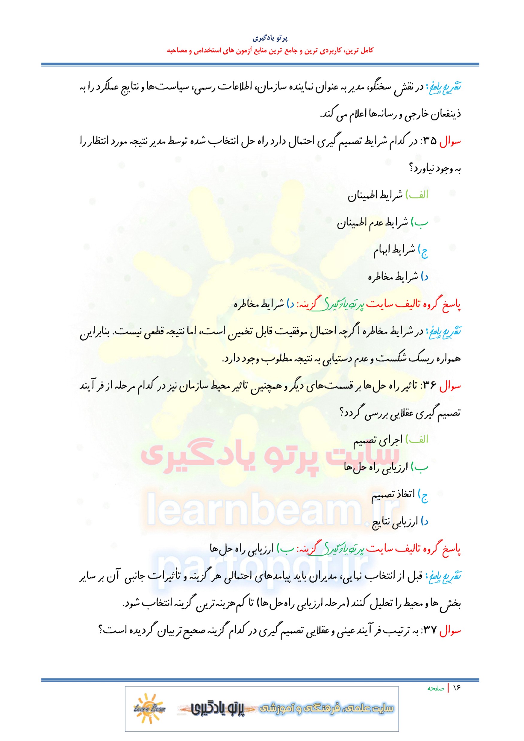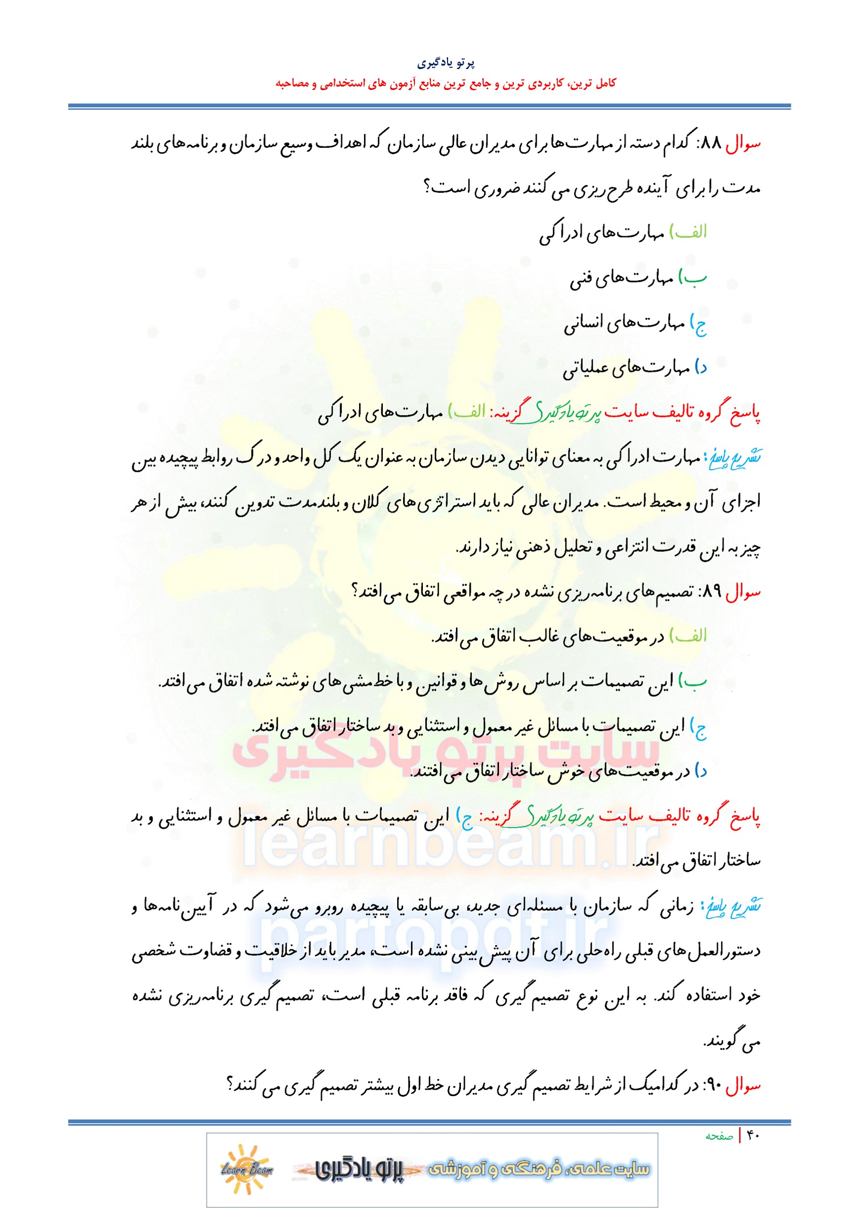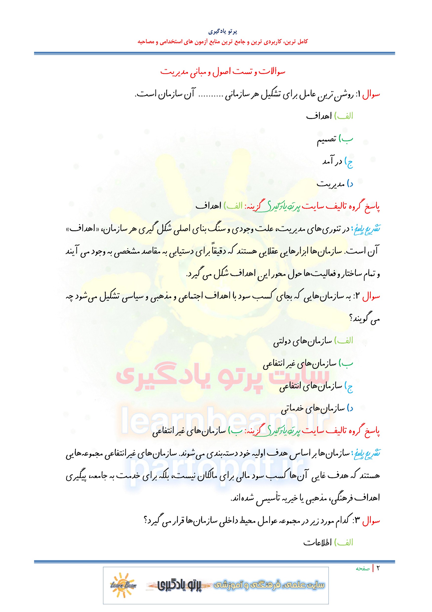 مجموعه سوالات و تست کتاب اصول و مبانی مدیریت با پاسخ تشریحی