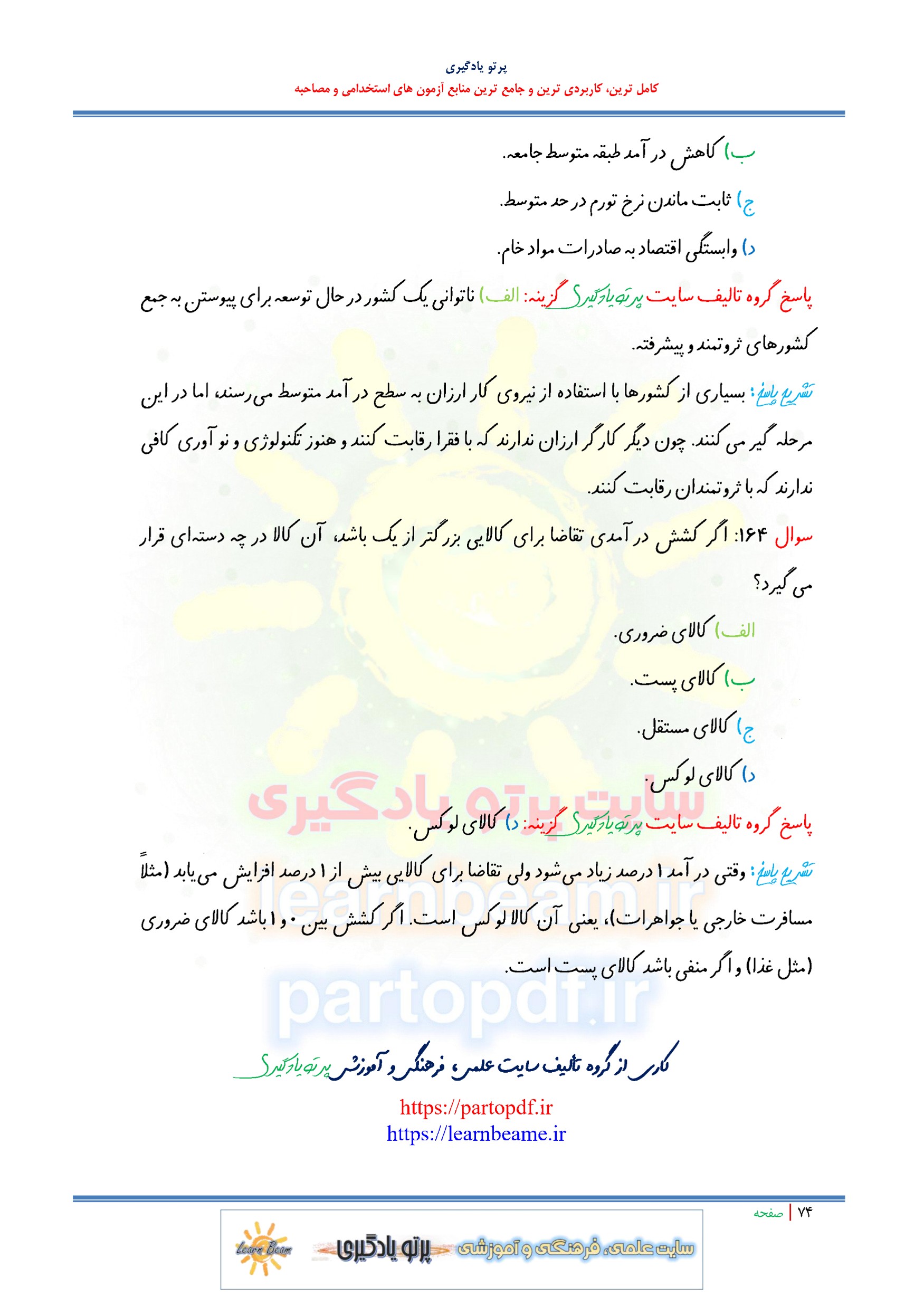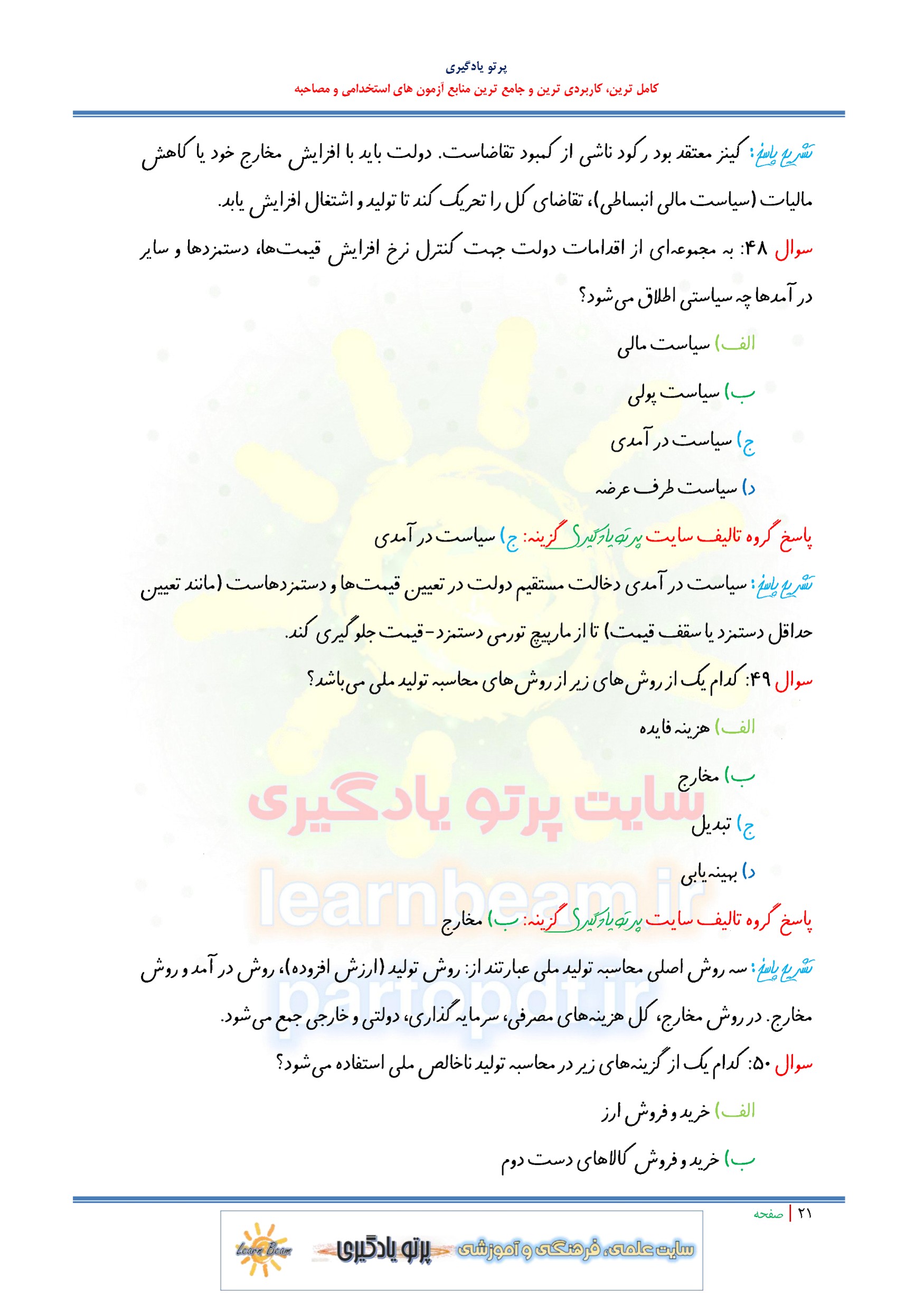 مجموعه سوالات و تست کتاب کلیات اقتصاد با پاسخ تشریحی