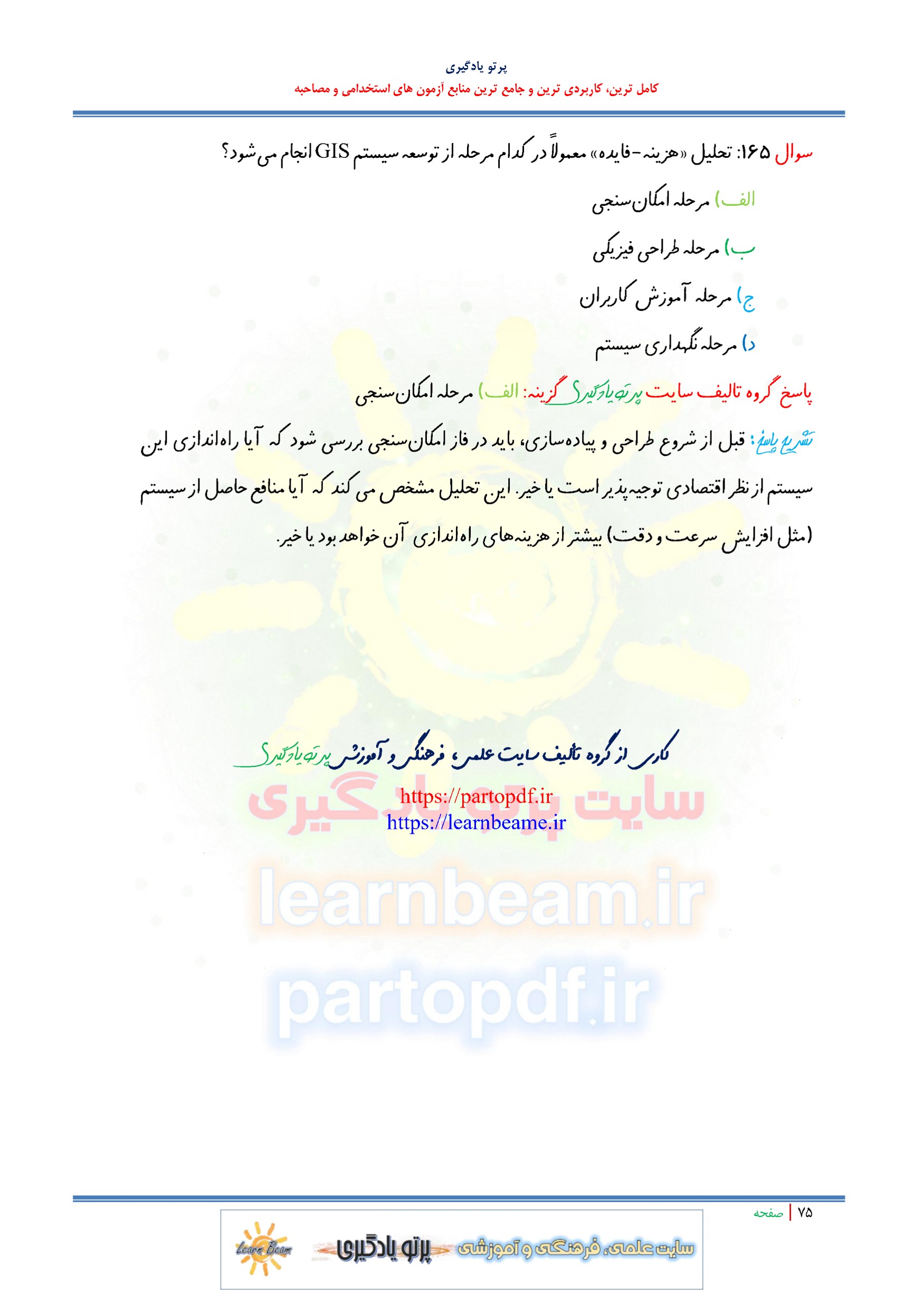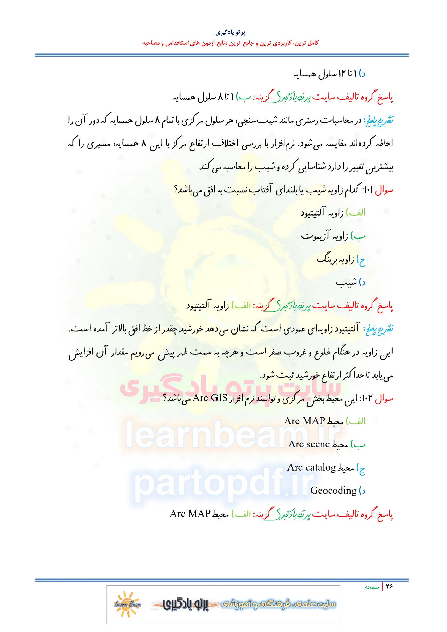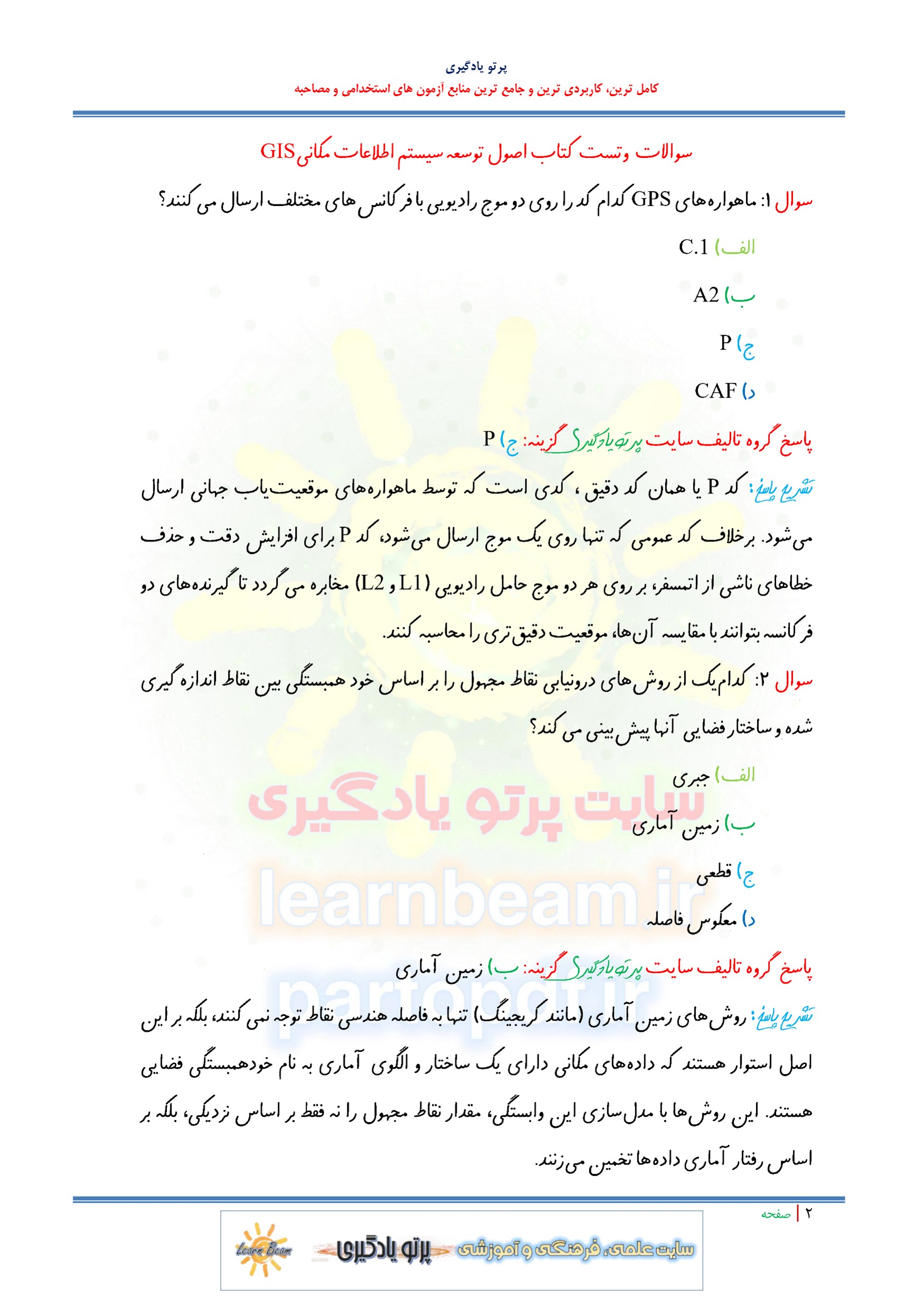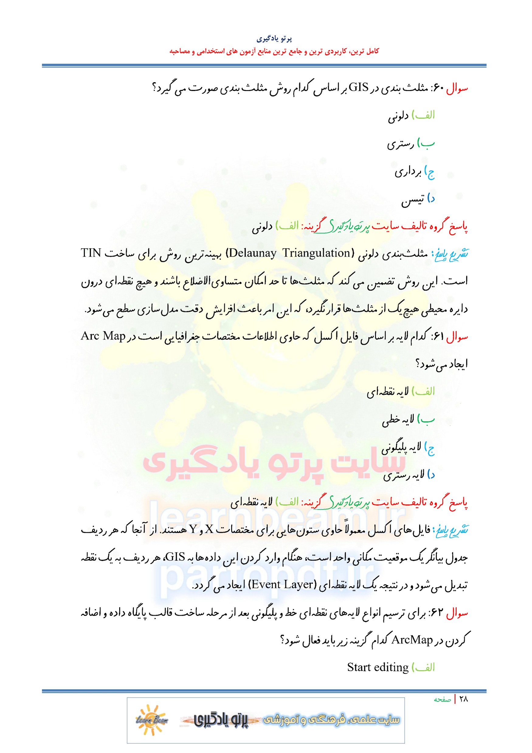 مجموعه سوالات و تست کتاب اصول توسعه سیستم اطلاعات مکانی GIS با پاسخ تشریحی