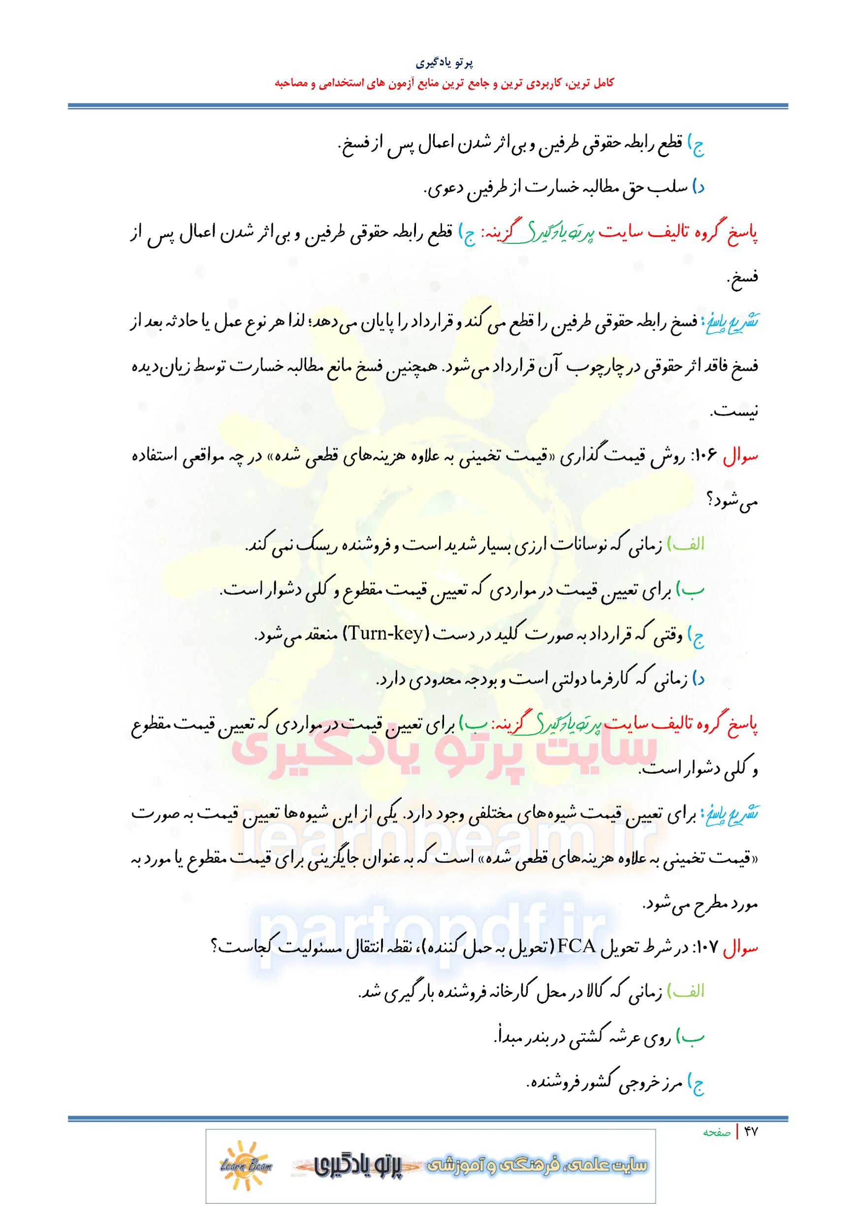 سوالات و تست اصول مکاتبات بازرگانی. سوالات تستی اصول مکاتبات بازرگانی شامل 155 سوال تستی در 70 صفحه با پاسخنامه در قالب فایل pdf. بهترین منبع برای آزمون های استخدامی می باشد. مجموعه سوالات تستی اصول مکاتبات بازرگانی مطالب خوانده شده داوطلبین آزمون استخدامی را نظم بخشیده و منسجم می سازد. این مجموعه مرور سریع داوطلب را سبب می شود و آگاهی های وی را نظم بخشیده و یک آمادگی و شبیه سازی را برای جلسه آزمون به همراه دارد. مطالعه این منبع برای همه داوطلبین شرکت کننده در آزمون های استخدامی پیشنهاد می شود.